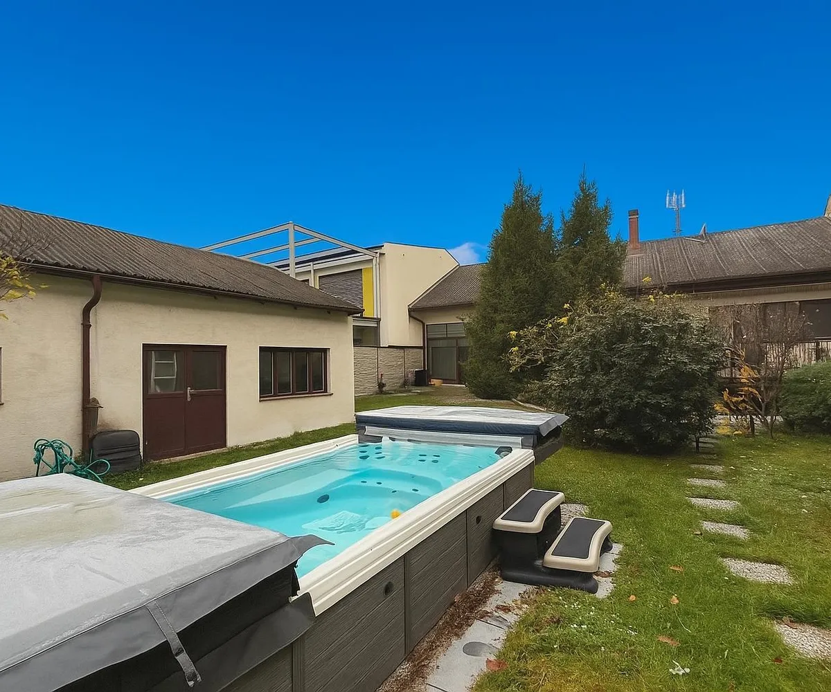 Auf einem großzügigen, gepflegten Grundstück befindet sich dieses charmante und optimal aufgeteilte Einfamilienhaus . Ein moderner Swimmingpool mit integrierter Whirlpool-Funktion sowie eine Infrarotkabine sorgen für entspannte Stunden im Freien. Ergänzend bietet ein weiteres Gebäude am Grundstück eine Garage mit viel Stauraum – ideal für zusätzliche Nutzungsmöglichkeiten.