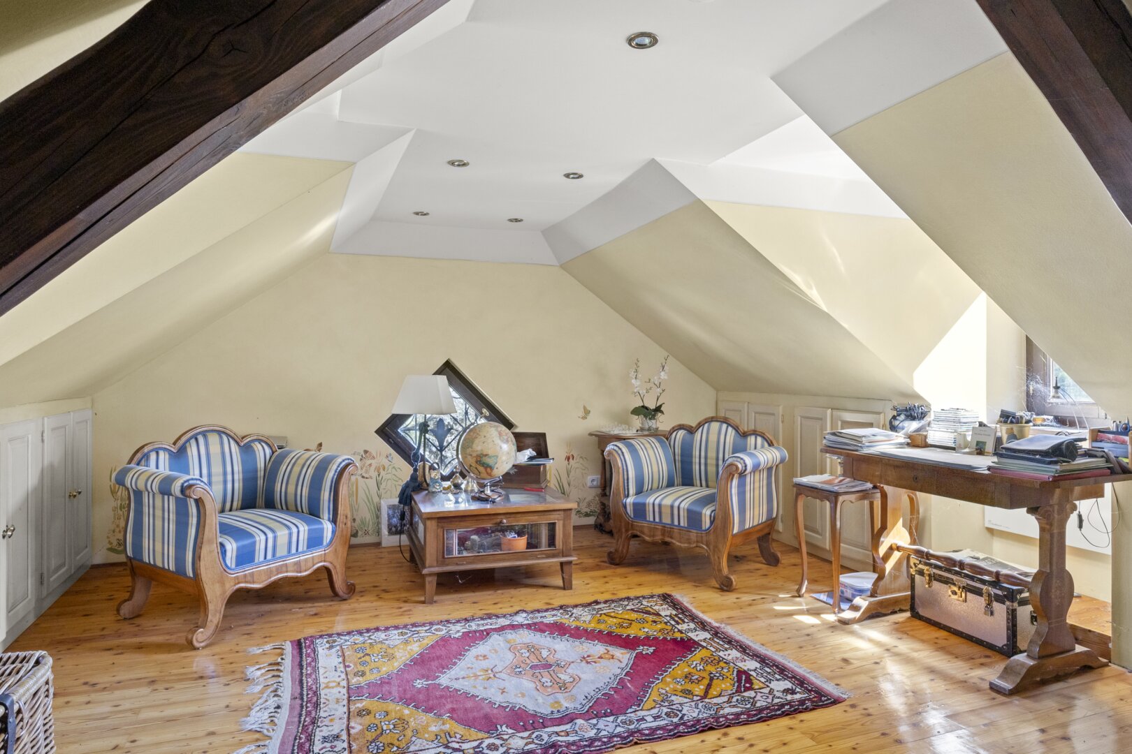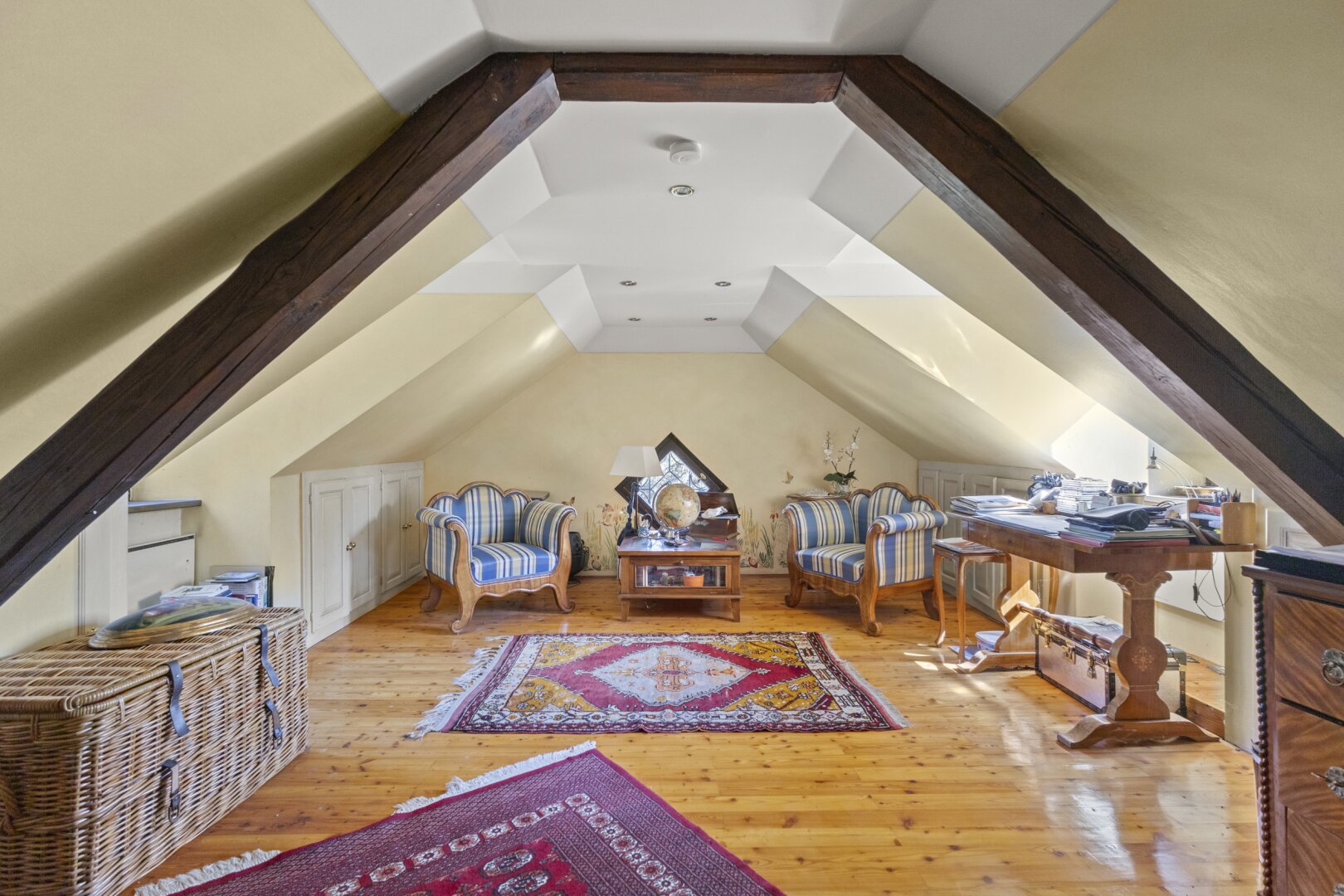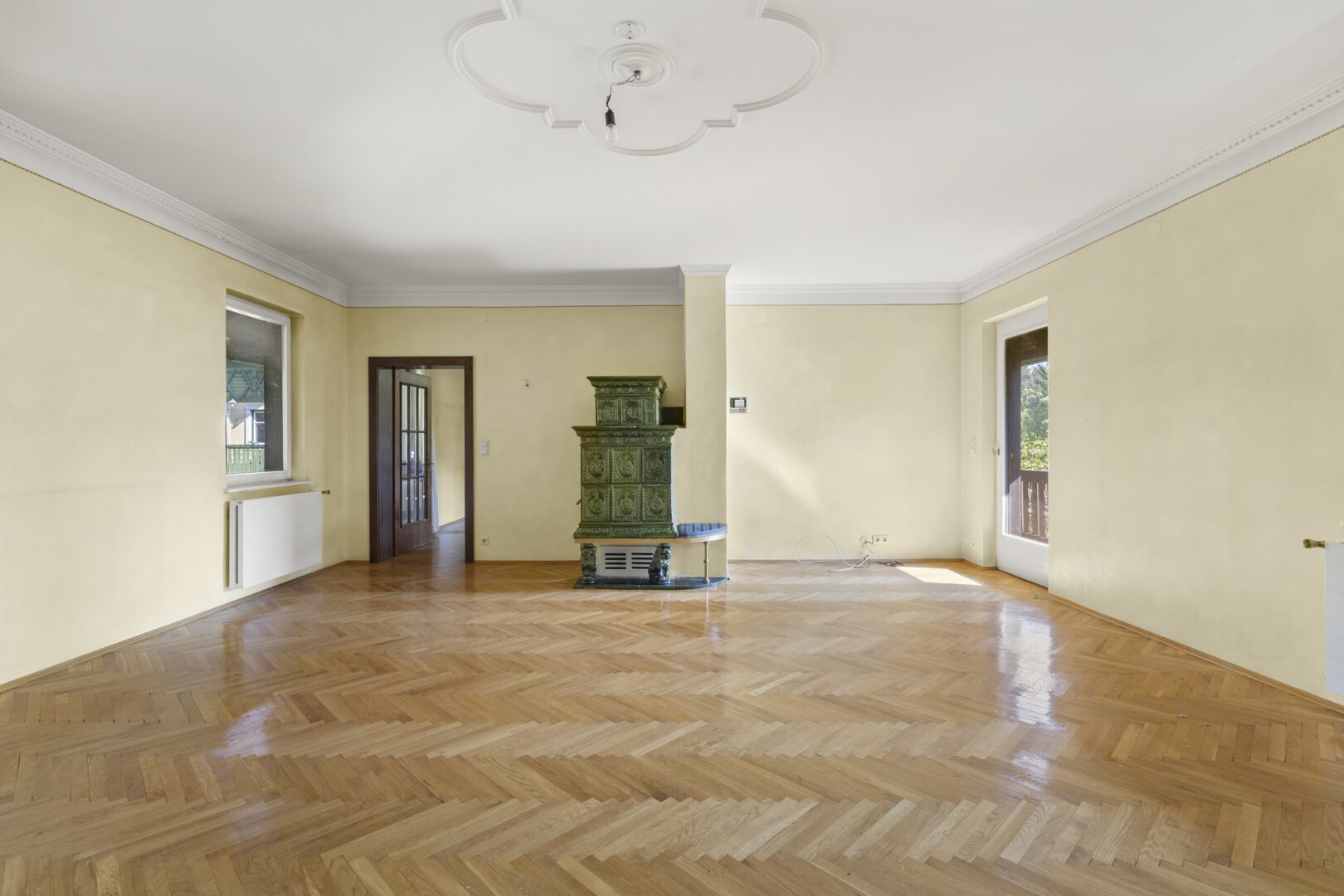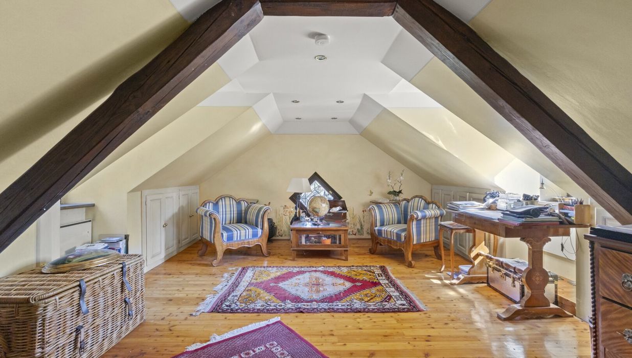 Historische Details wurden liebevoll erhalten und geben dem Haus seinen besonderen Charakter. Im großzügigen Salon mit offenem Kamin lassen sich gemütliche Abende verbringen, während das Lesezimmer mit Kachelofen eine ruhige Atmosphäre schafft. Die Räume sind hell, gut geschnitten und bieten zahlreiche Gestaltungsmöglichkeiten – ideal für Menschen, die das Besondere suchen und Wert auf Atmosphäre legen. Dieses Haus verbindet Geschichte und Stil mit einem Wohngefühl, das jeden Tag ein bisschen besonders macht.