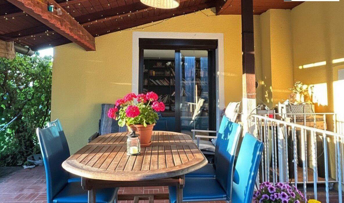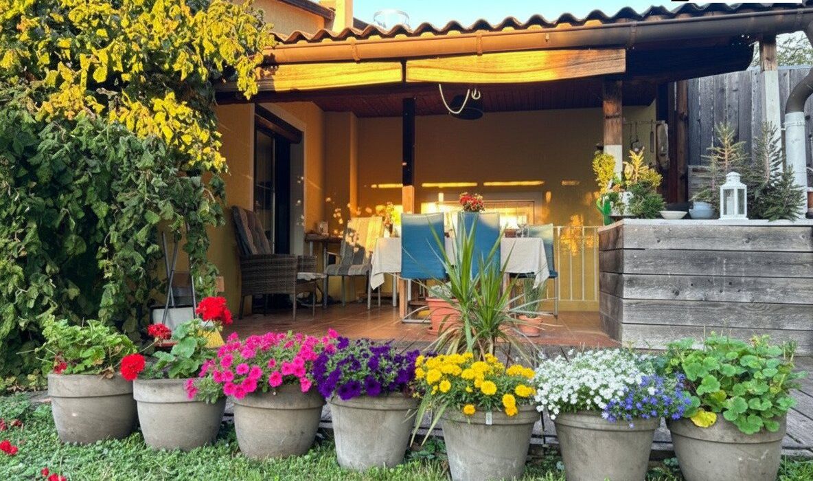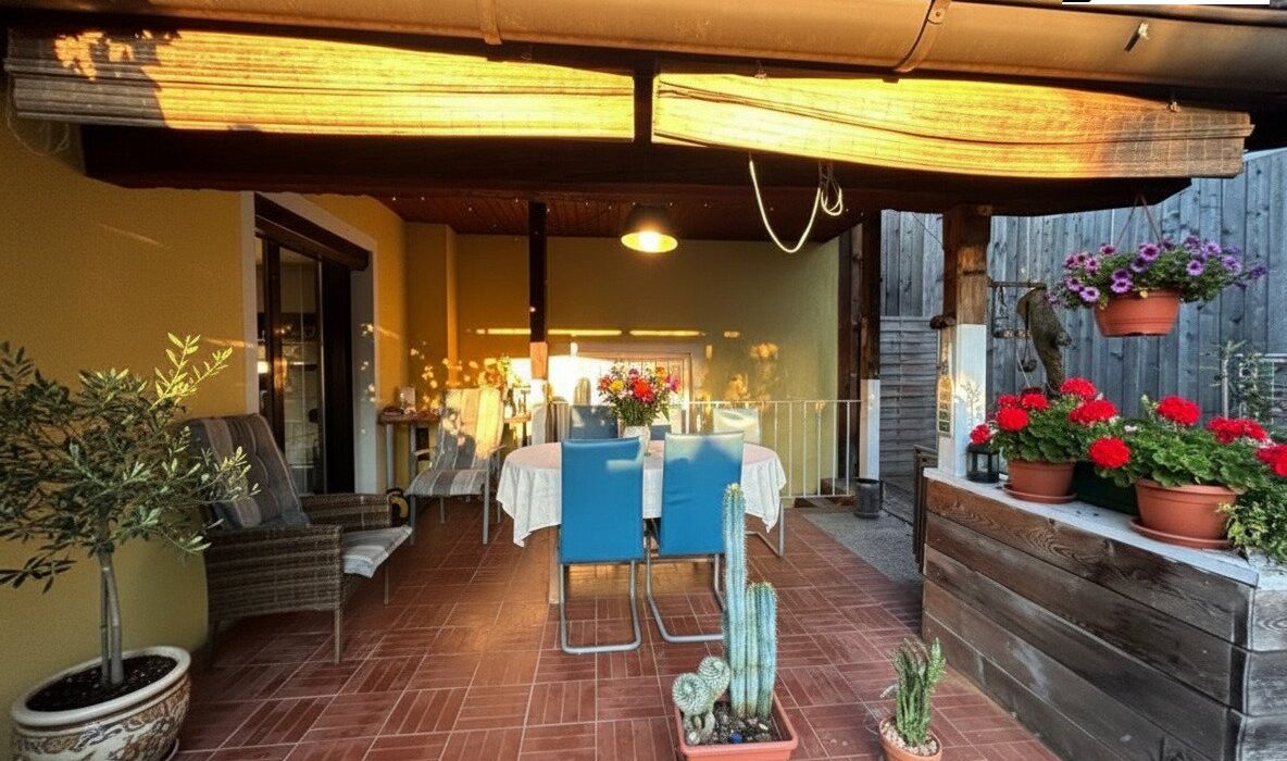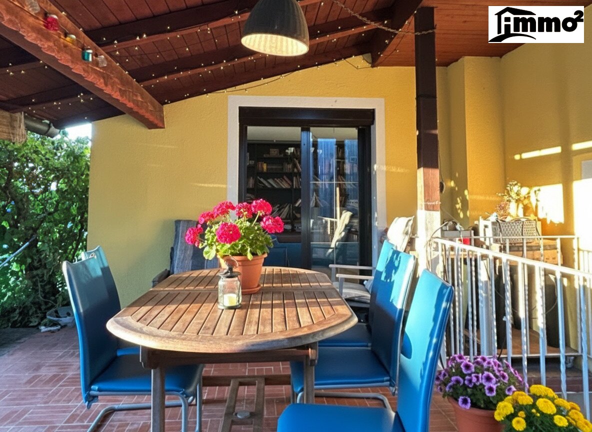 Die vorhandene Terrasse lädt dazu ein, den Tag gemütlich im Freien ausklingen zu lassen und den Blick in den Garten zu genießen.