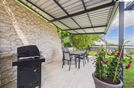 Dieses einzigartige Anwesen überzeugt durch zeitlose Eleganz, eine durchdachte Raumaufteilung und exklusive Ausstattung. Die lichtdurchfluteten Räume und der offene Grundriss schaffen ein harmonisches Wohngefühl. Großzügige Glasfronten sorgen für eine beeindruckende Verbindung zwischen Innen- und Außenbereich und lassen die Natur in Ihr Zuhause einziehen. Der weitläufige Garten bietet zahlreiche Möglichkeiten zur Gestaltung – ob Pool, Outdoor-Lounge oder ein Spielbereich für Kinder.