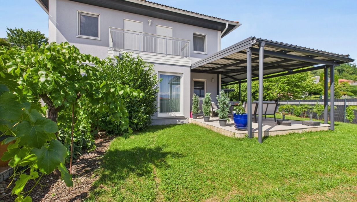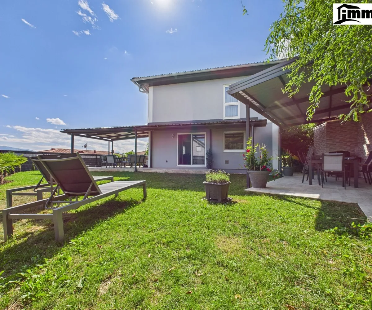 Willkommen in einem Ort, an dem die Sonne besonders oft scheint und die Lebensqualität ebenso hoch ist wie der Freizeitwert: Dieses moderne Einfamilienhaus in Emmersdorf, einer der exklusivsten Lagen von Klagenfurt am Wörthersee, bietet alles, was das Herz begehrt. Die herrlich sonnige Lage mit Panoramablick auf die umliegende Berglandschaft macht diese Immobilie zu einem echten Wohlfühlort – perfekt für anspruchsvolle Familien oder Paare mit Sinn für Qualität.