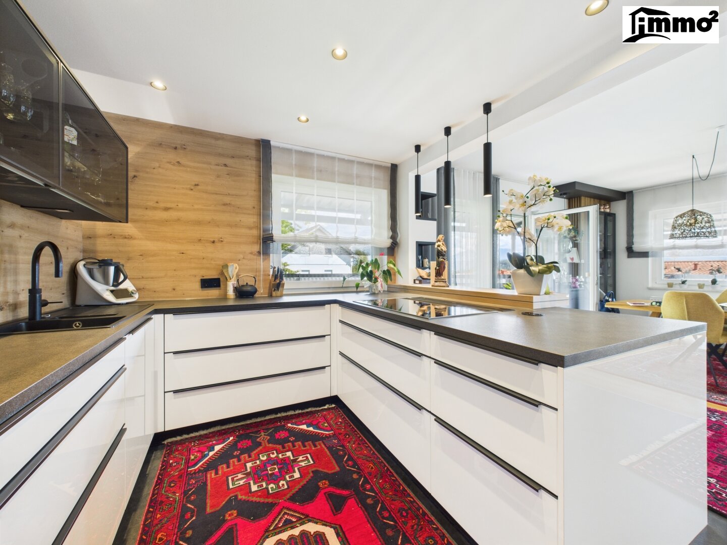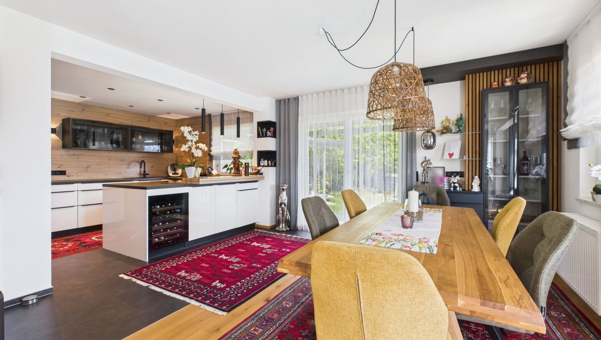 Das Haus überzeugt mit einem durchdachten Grundriss und einer edlen Ausstattung. Der offene Wohn-Essbereich bildet das Herzstück des Hauses und bietet durch