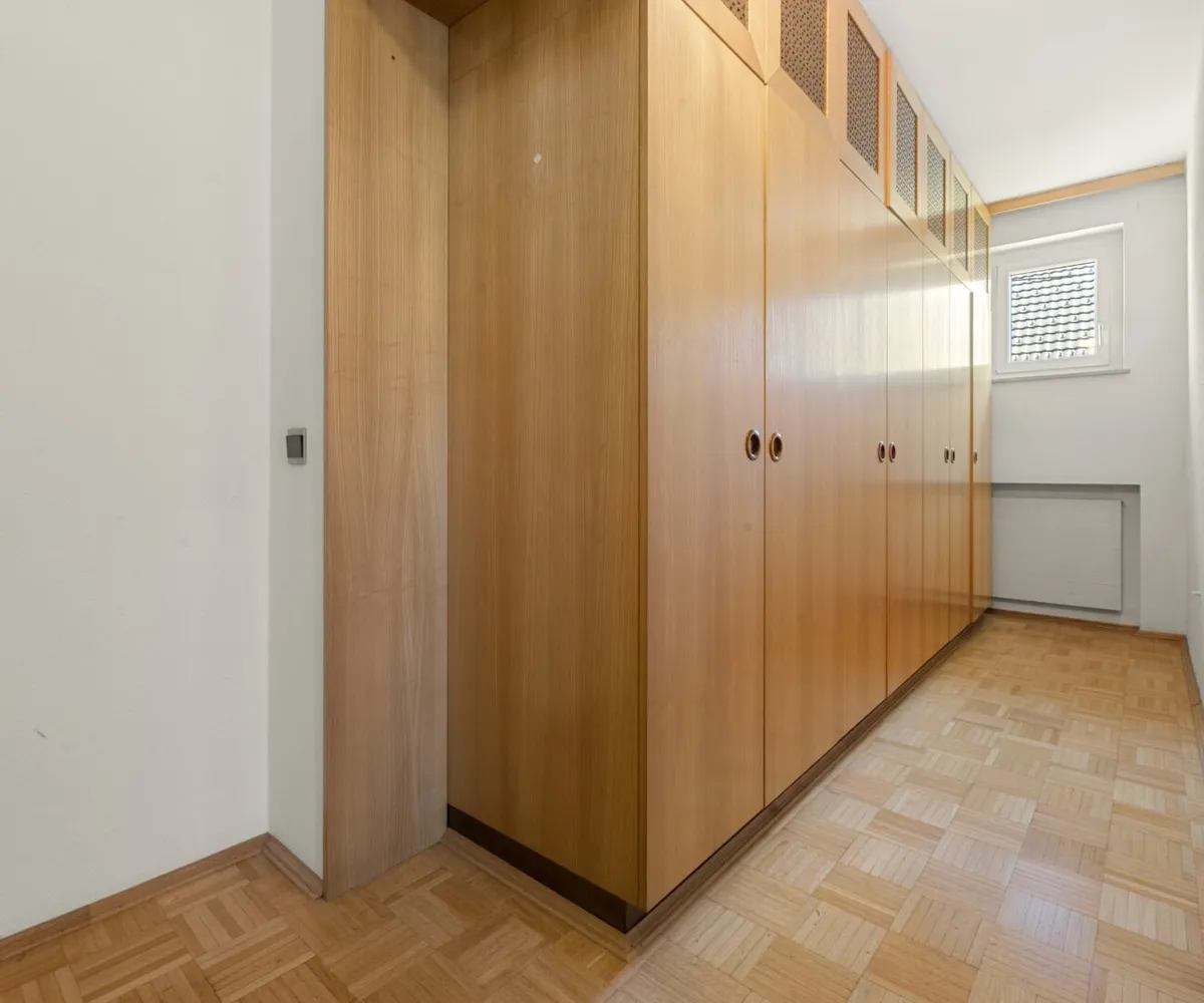 ERDGESCHOSS Wohnung : ca. 160,00m² bestehend aus Windfang (2,10m²), Diele (7,40m²), Vorraum/Stiegenhaus (7,10m²), VR zum WC (1,65m²), WC (1,60m²), VR zur Garderobe (1,65m²), Garerobe (5,20m²), VR zu den Schlafzimmern (7,30m²), Büro/Zimmer Ost (11,20m²), Bad (7,80m²), Schlafzimmer Ost (18,30m²), Schlafzimmer Süd (12,80m²), Schlafzimmer West (11,80m²) mit Ausgang zur Terrasse, 1 XL-Wohn-/Esszimmer (50,30m²) mit Ausgang zur Terrasse, neue tolle Küche (10,00m²), Speis (0,50m²), begehbare Speis (4,20m²).