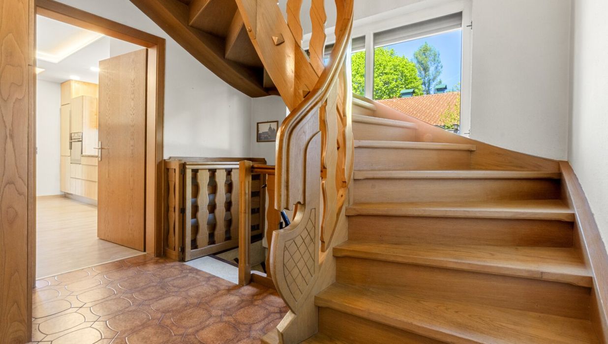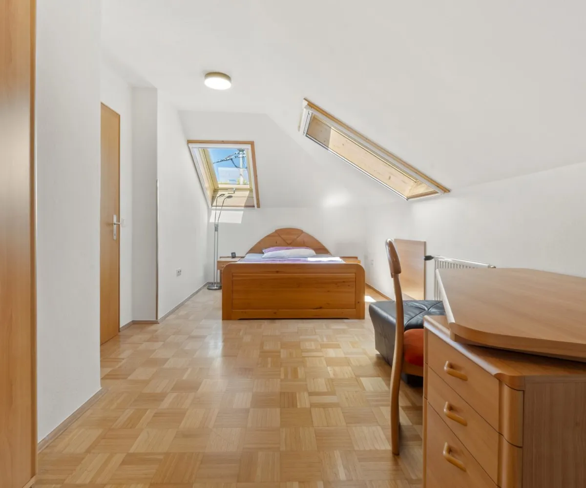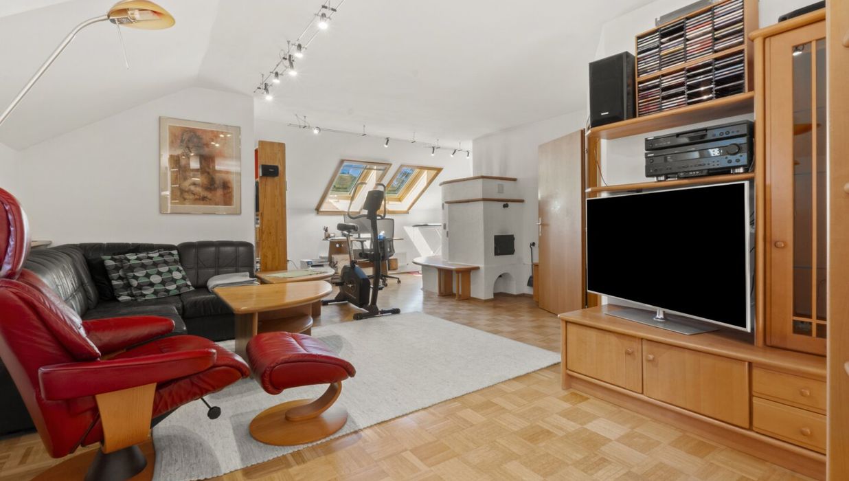 Ausstattung & Highlights: Neuwertige Designereinbauküche mit Bosch-Geräten, schöner gemauerter Kachelofen aus Meisterhand in der Dachgeschosswohnung, neues XXL-Carport für ca. 4 PKWs, 2 Gargenplätze (66,00m²) im Keller, traumhaftes, sonniges und ruhiges Grundstück mit Blick ins Grüne.