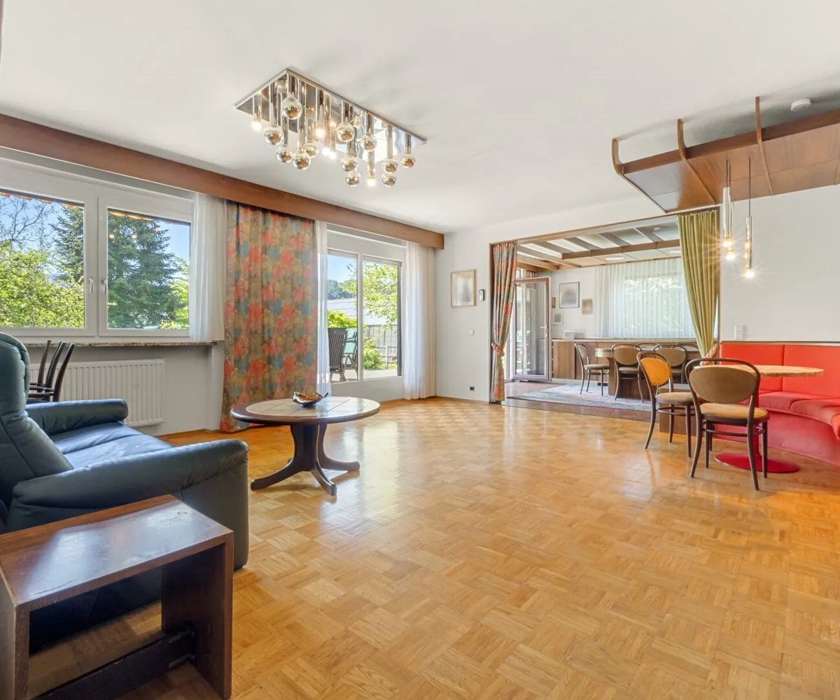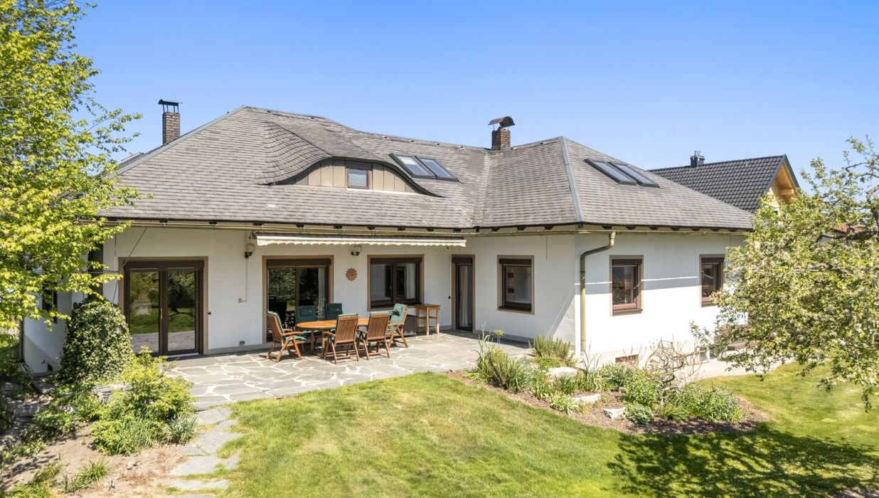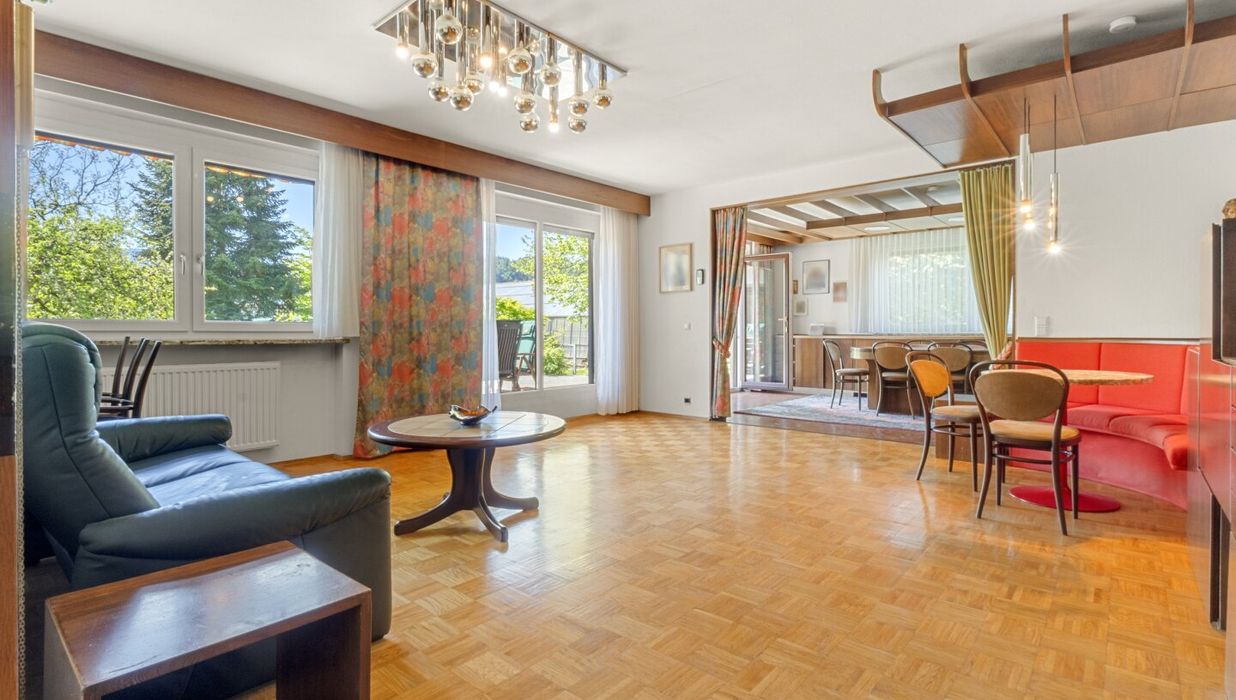 Großer, gepflegter Bungalow (Zweifamilienwohnhaus mit ausgebautem Dachgeschoss) also mit 2 Wohnungen mit ca. 270,00m² Nutzfläche mit XL-Süd-/Westterrasse in sonniger und ruhiger Superlage in Viktring, mit folgender Raumaufteilung.