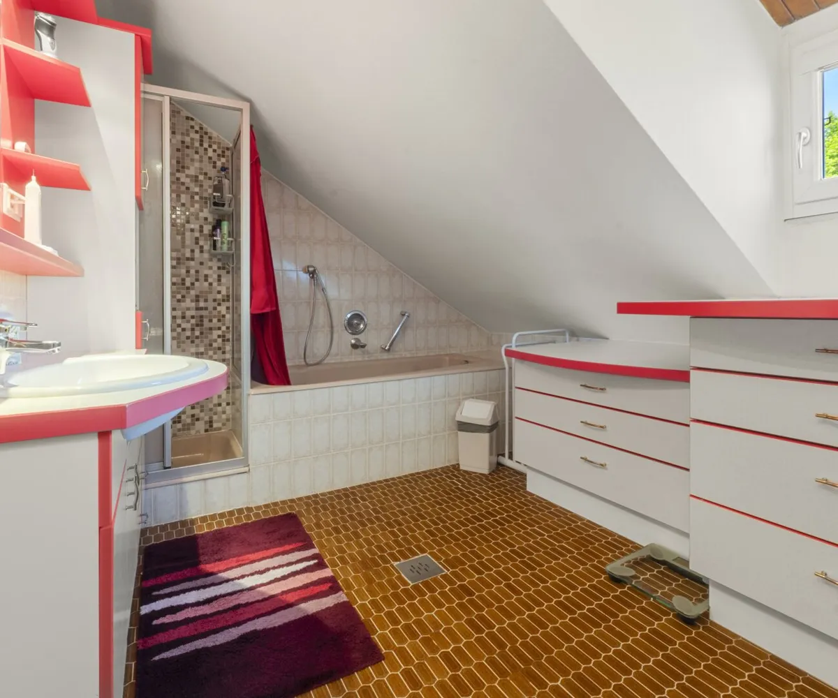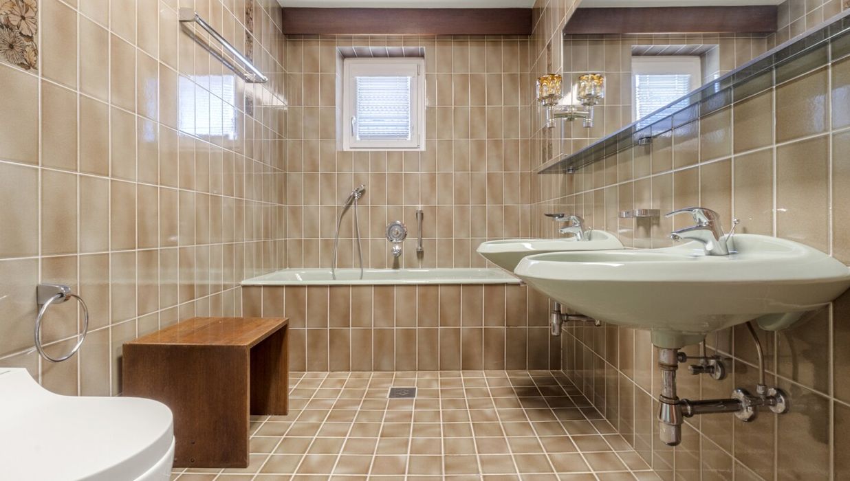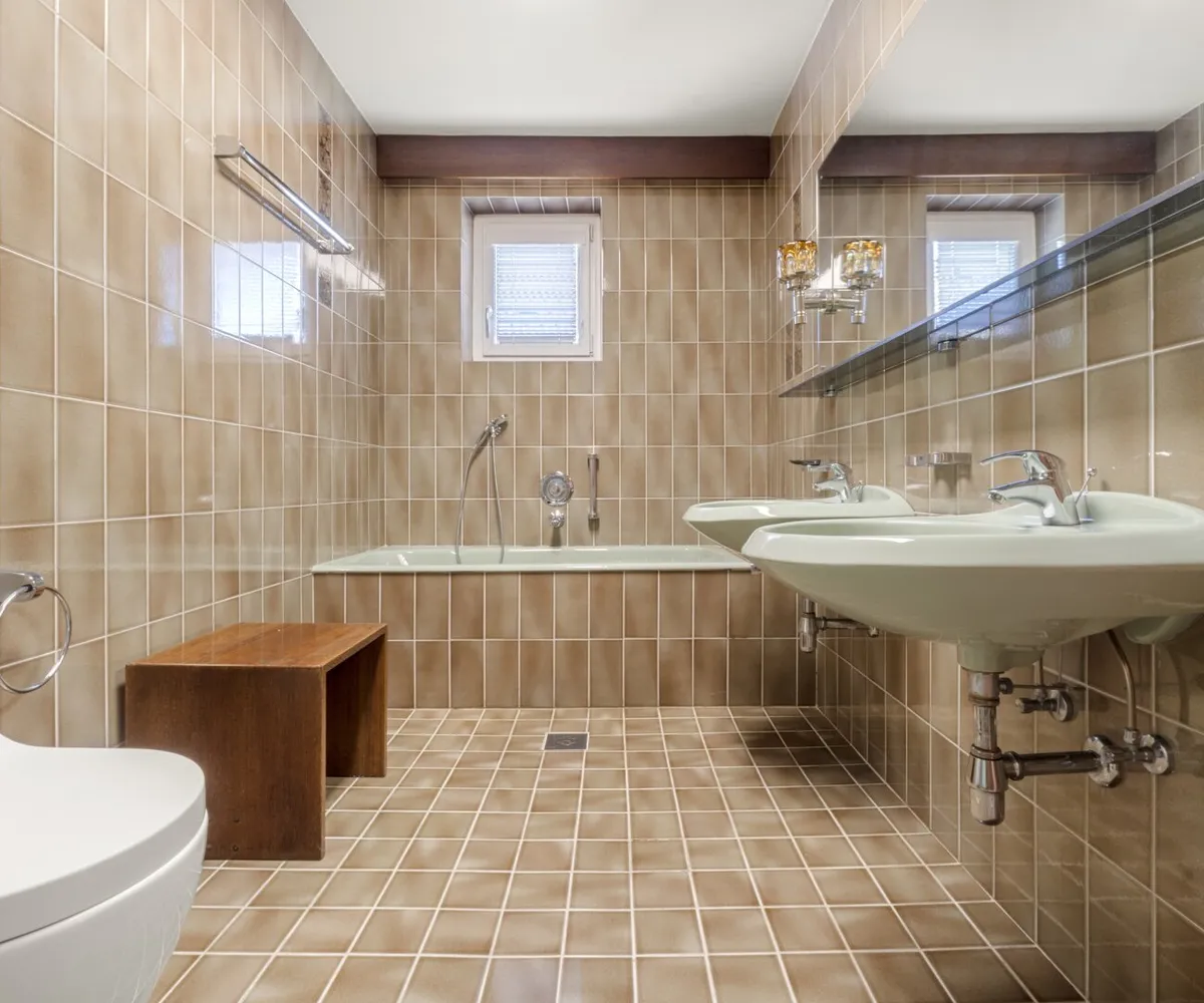Bad mit Wanne und 2 Waschebecken im Erdgeschoss
