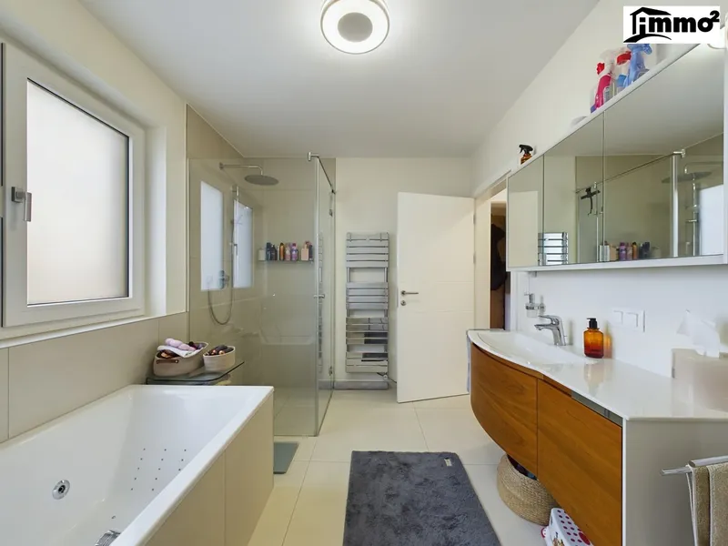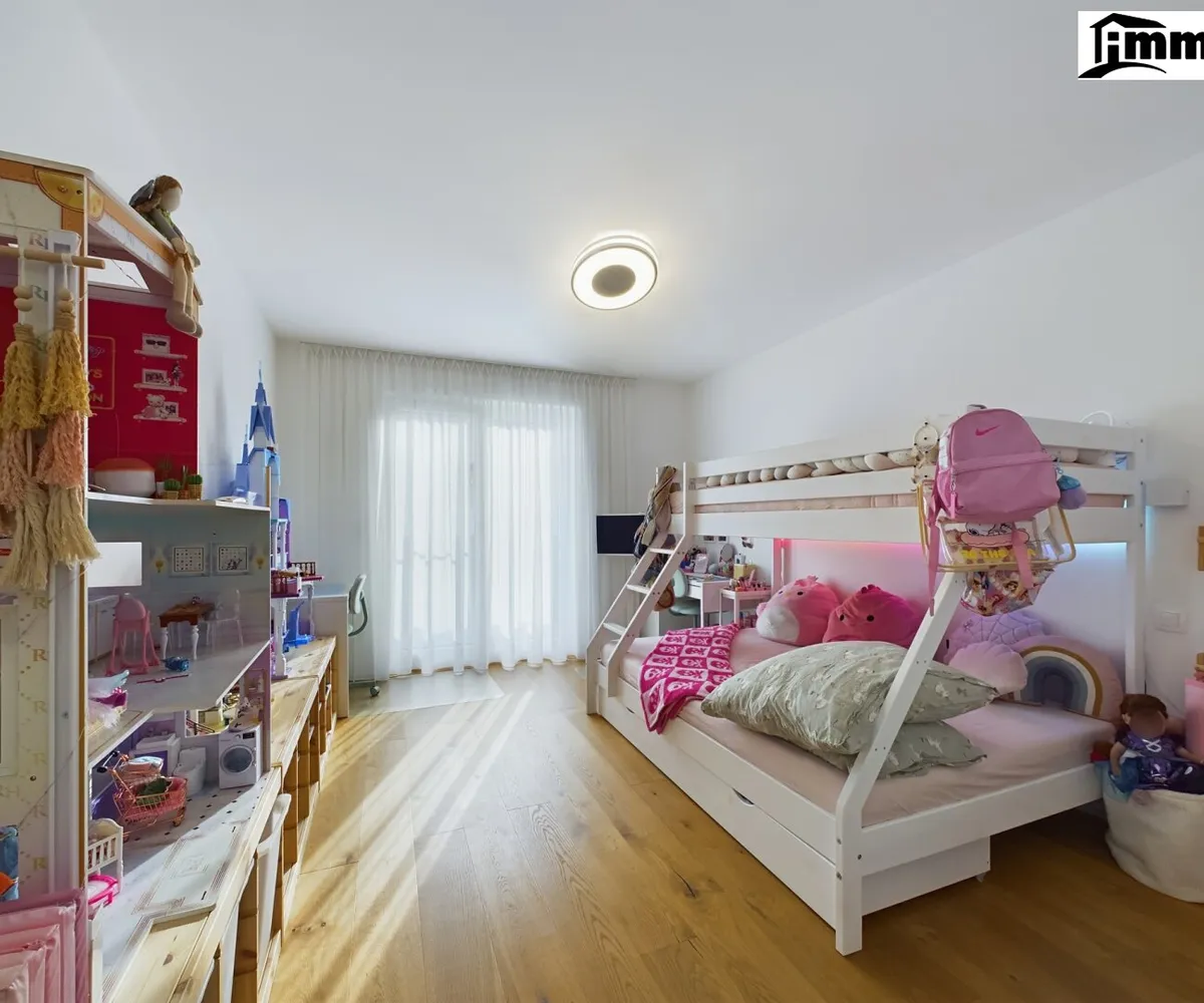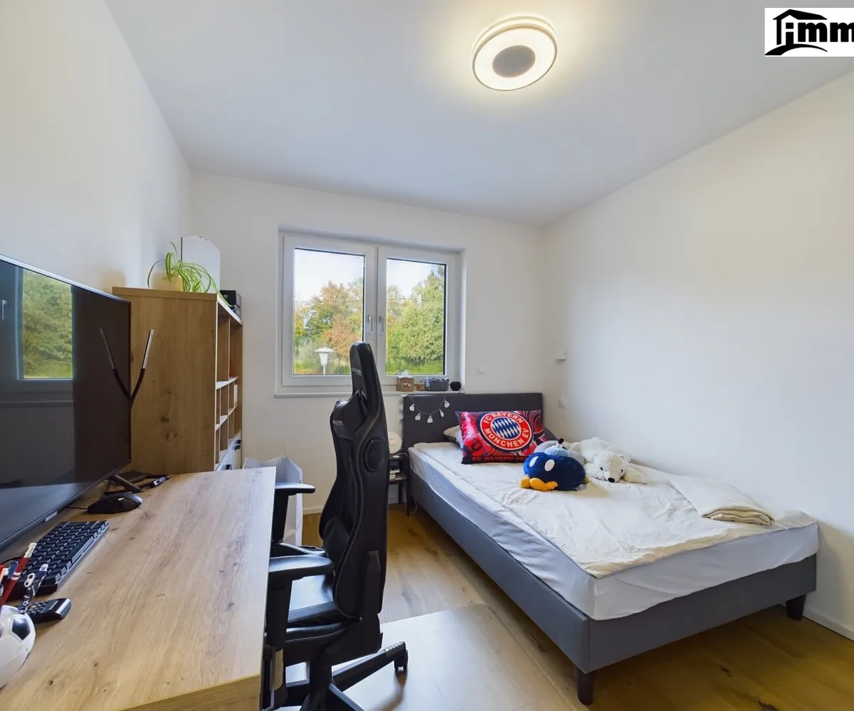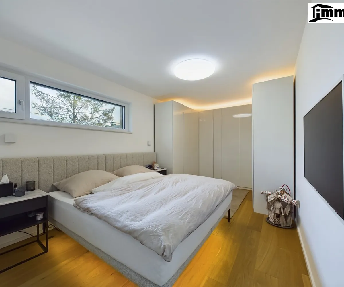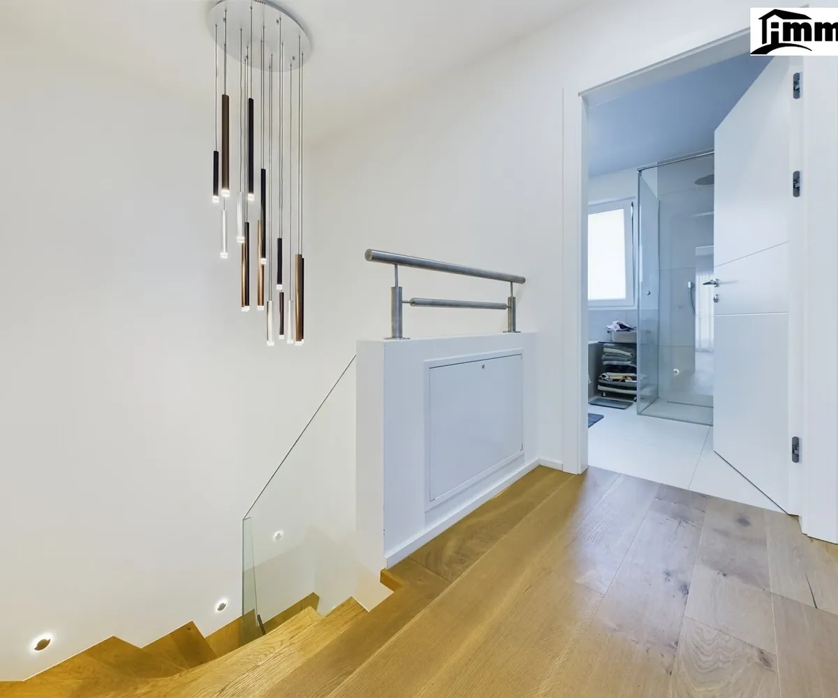 Im Obergeschoss befinden sich die Schlaf- und Kinderzimmer sowie ein geräumiges, stilvolles Badezimmer. Alle Räume sind klimatisiert und mit einem Belüftungssystem ausgestattet, das für angenehme Raumluft sorgt. Die großen Fensterflächen bieten viel Tageslicht und einen wunderbaren Blick auf die umliegende Landschaft. Hochwertige Materialien und sorgfältig geplante Details machen jedes Zimmer zu einem Rückzugsort, der zum Entspannen einlädt.