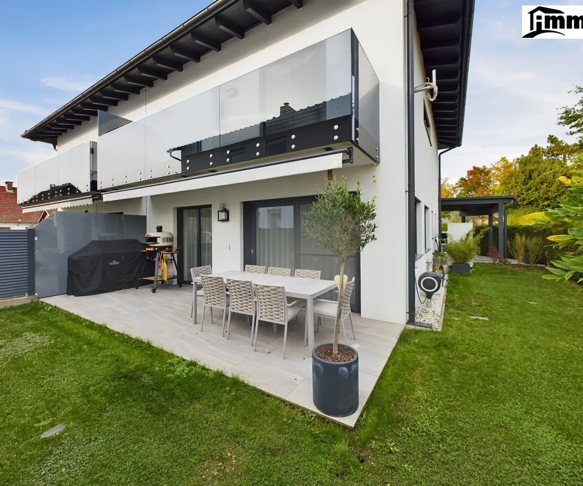 Der Garten ist mit einer automatischen Sprinkleranlage ausgestattet und lässt sich so mühelos pflegen. Die sonnige Terrasse lädt zum Verweilen und Entspannen ein – sei es beim Frühstück im Freien oder beim Grillabend mit Freunden und Familie. Das Carport bietet Platz für zwei Fahrzeuge, und die Wallbox sorgt dafür, dass ein Elektrofahrzeug bequem zu Hause geladen werden kann.