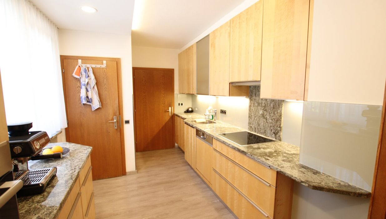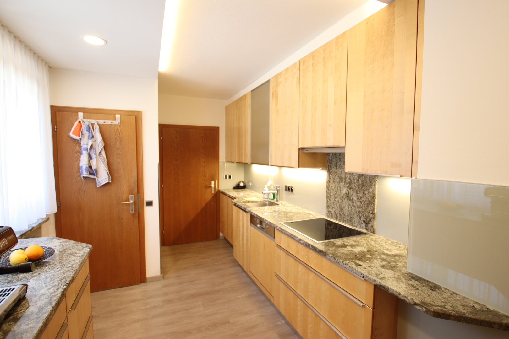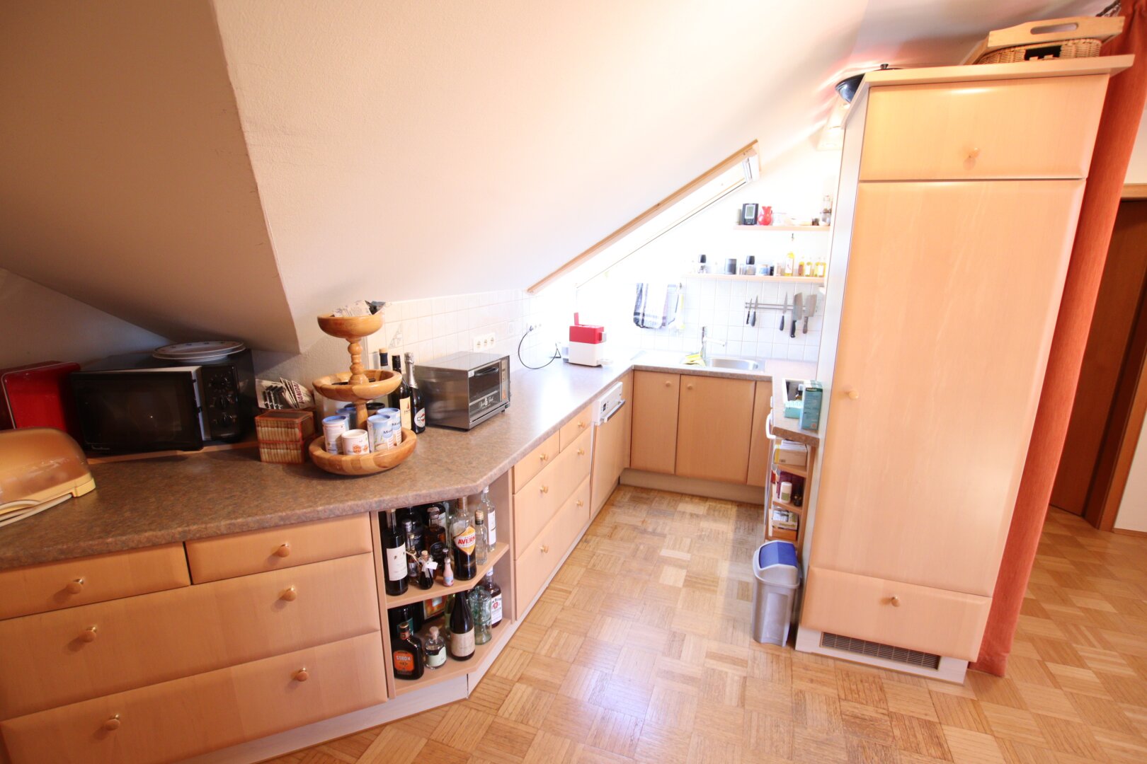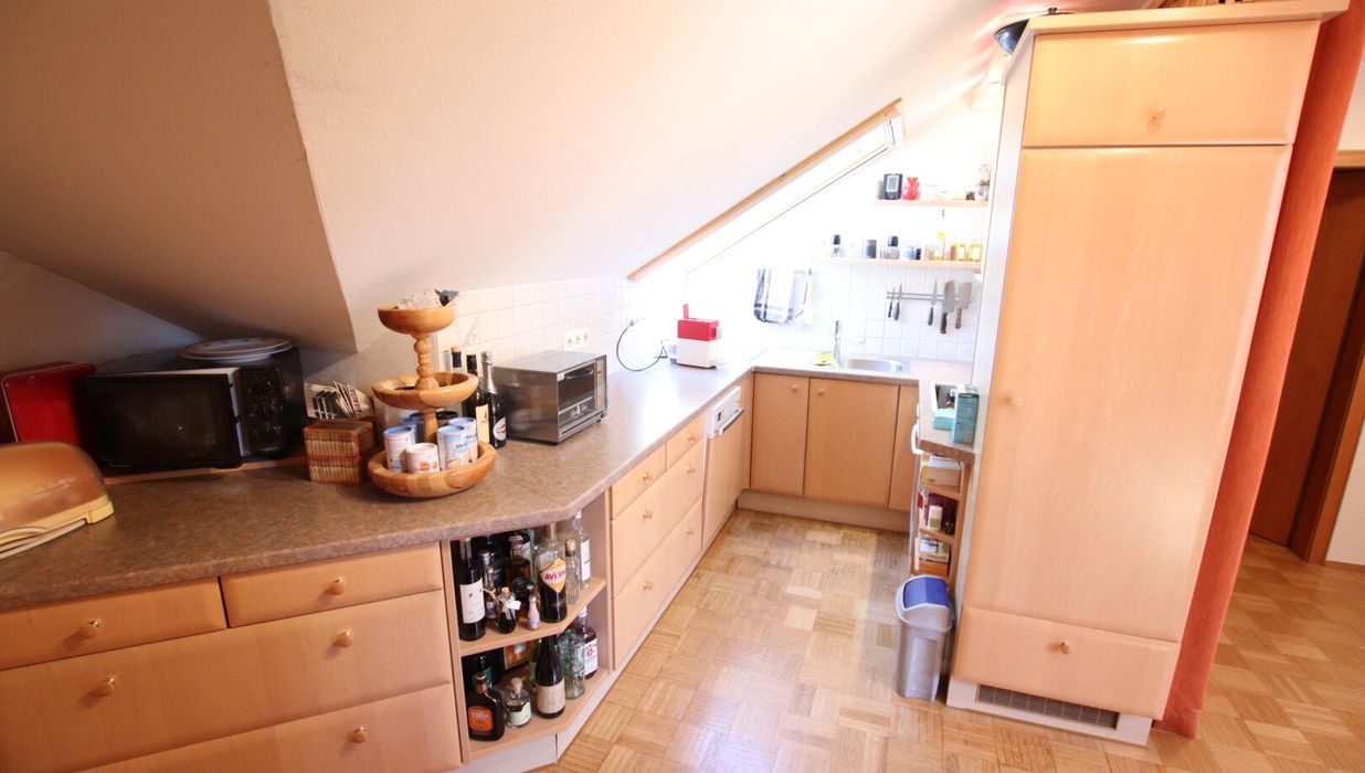 Dachgeschoss: Schöne Einbauküche mit Geräten und Einbaumöbeln.
