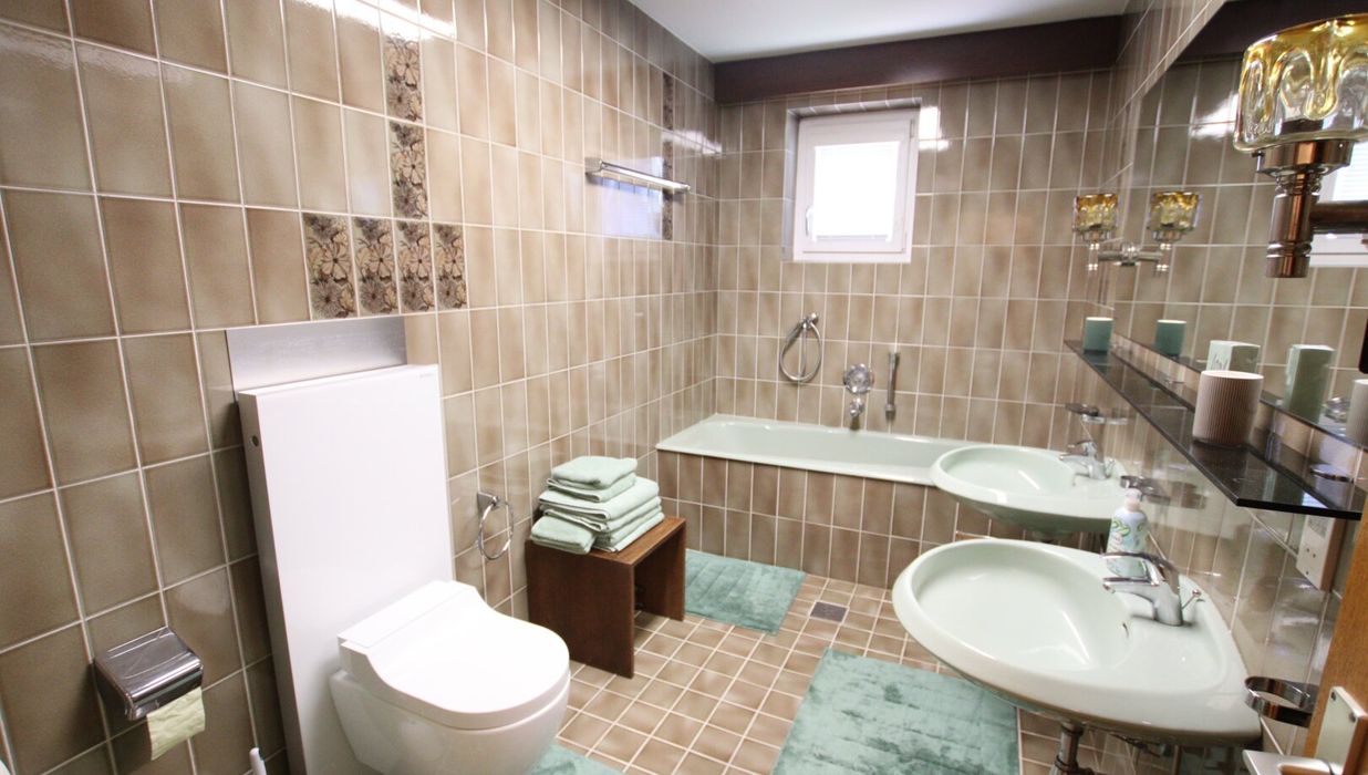 Bad mit Wanne und 2 Waschebecken im Erdgeschoss