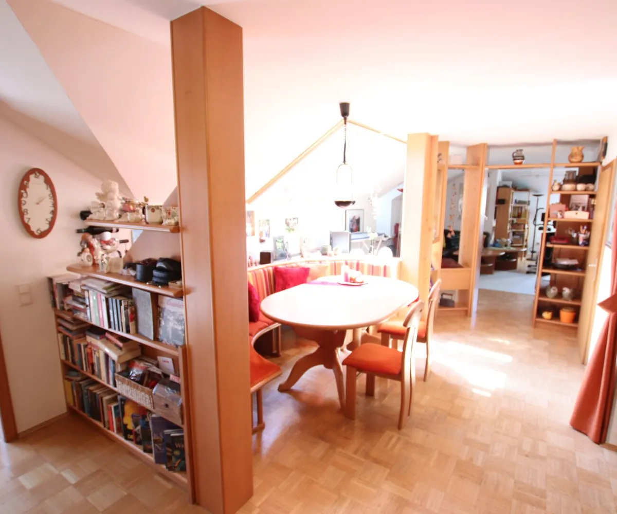Ausstattung & Highlights: Neuwertige Designereinbauküche mit Bosch-Geräten, schöner gemauerter Kachelofen aus Meisterhand in der Dachgeschosswohnung, neues XXL-Carport für ca. 4 PKWs, 2 Gargenplätze (66,00m²) im Keller, traumhaftes, sonniges und ruhiges Grundstück mit Blick ins Grüne.
