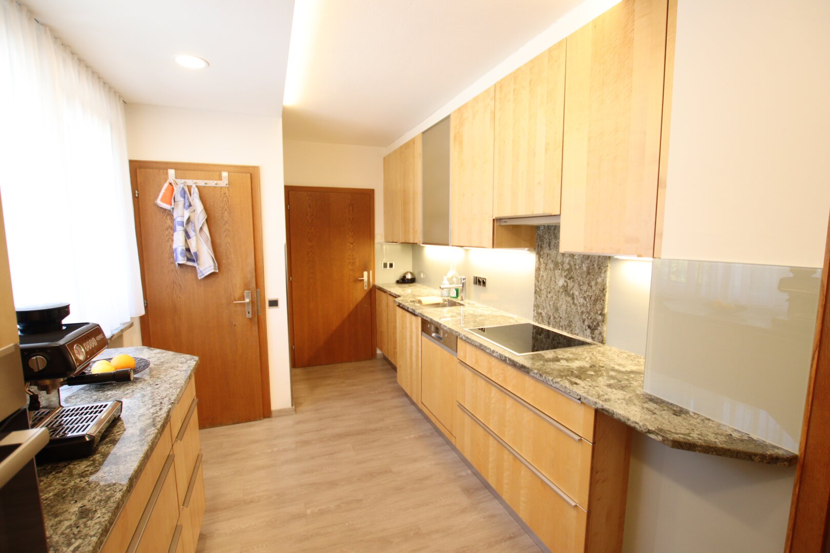 Dachgeschoss: Schöne Einbauküche mit Geräten und Einbaumöbeln.