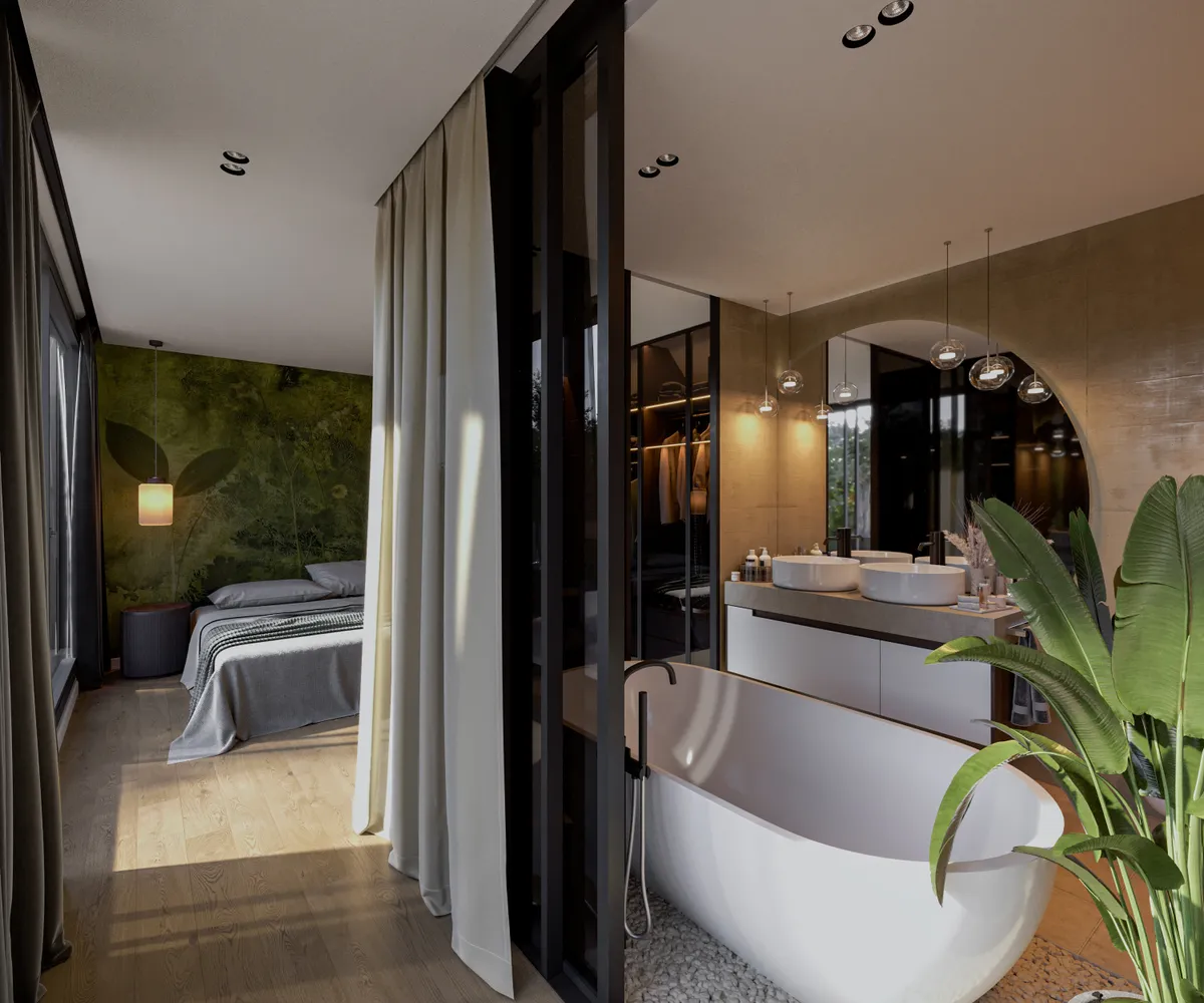 Ein einzigartiger Rückzugsort, der Naturerlebnis, stilvolle Architektur und luxuriöses Wohnen in vollendeter Form vereint.Die unterschiedliche Ausrichtung der Einheiten unterstreicht dieses Konzept zusätzlich.