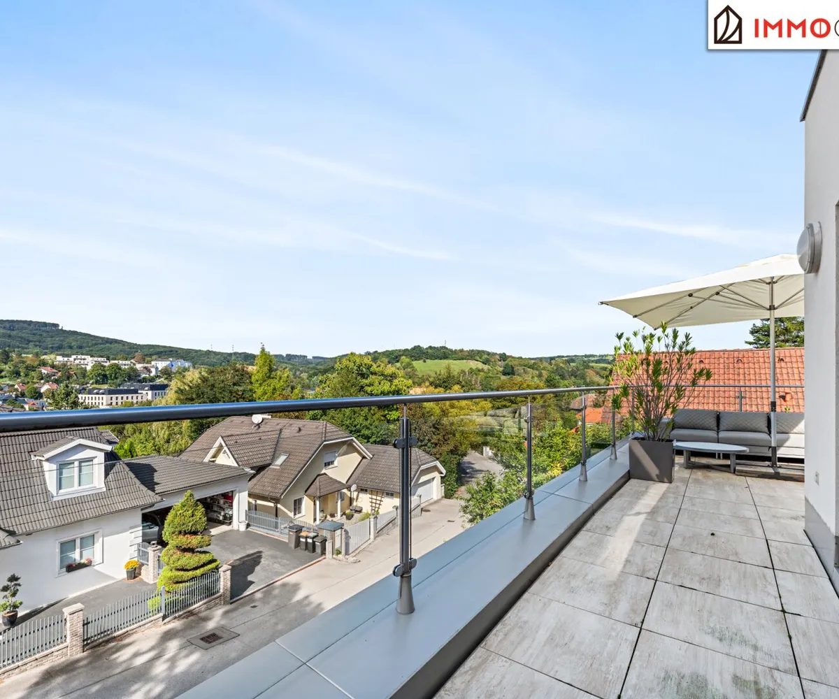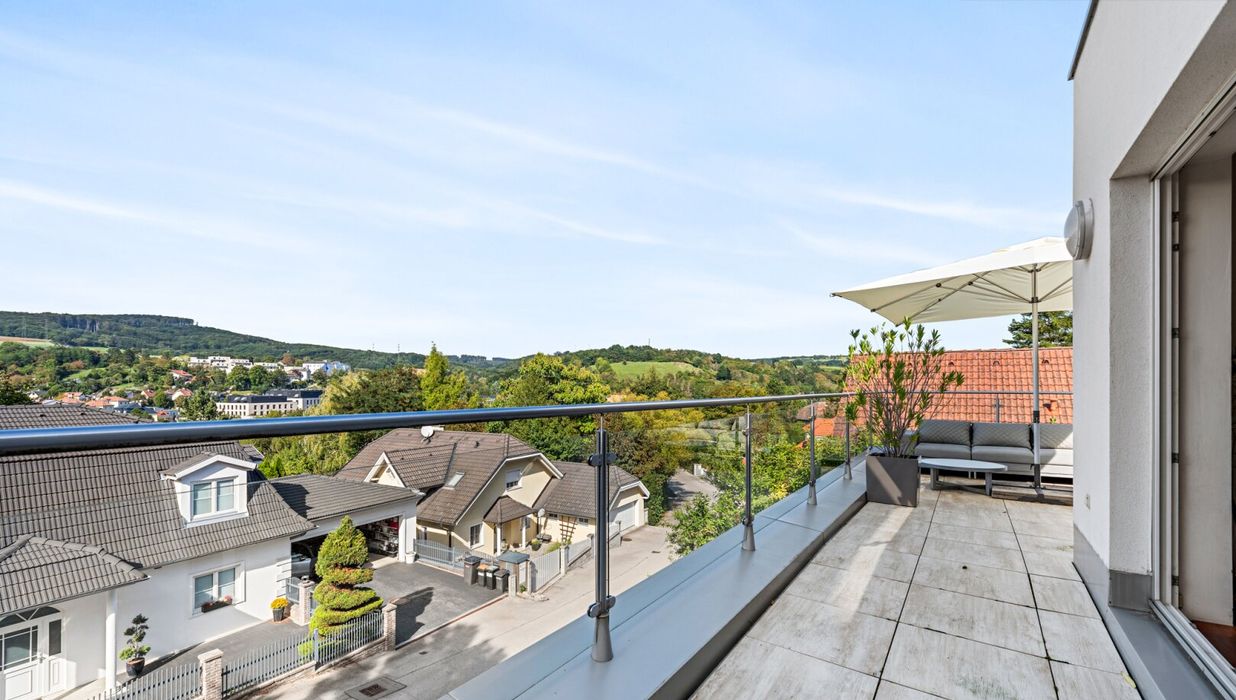 Stellen Sie sich vor, Sie beginnen Ihren Tag mit einem Blick aus bodentiefen Fenstern über das sanft geschwungene Kierlingtal. Sie spüren die Ruhe und Kraft der Natur, während Sie sich auf einen neuen Tag in einem Zuhause freuen, das Ihnen und Ihrer Familie auf drei Ebenen und rund 280 m² Wohnnutzfläche ein Höchstmaß an Komfort, Privatsphäre und Lebensqualität bietet. Dieses Juwel ist mehr als nur eine Immobilie - es ist eine Einladung, anzukommen und für immer zu bleiben.