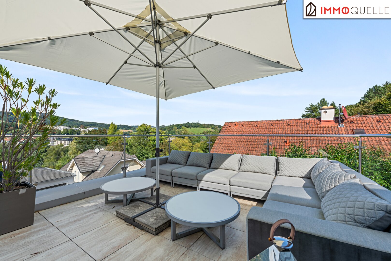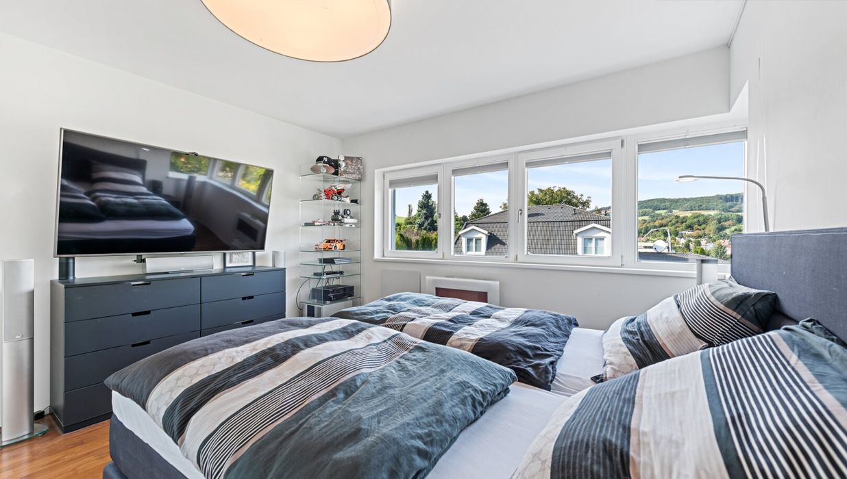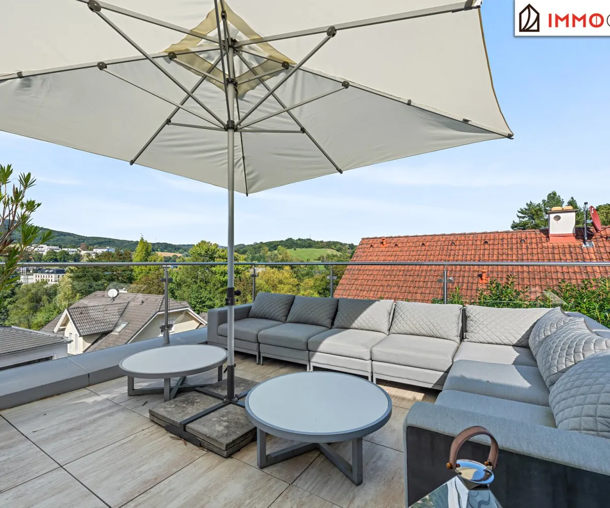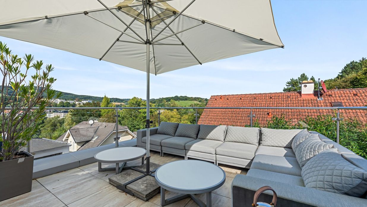 A special potential lies dormant on the roof: the almost 90 m² flat roof is already prepared for the expansion into a spectacular roof terrace. Floor anchoring, electricity, water and light connections are already in place and are just waiting to turn this place into a breathtaking sky lounge with a 360-degree view.