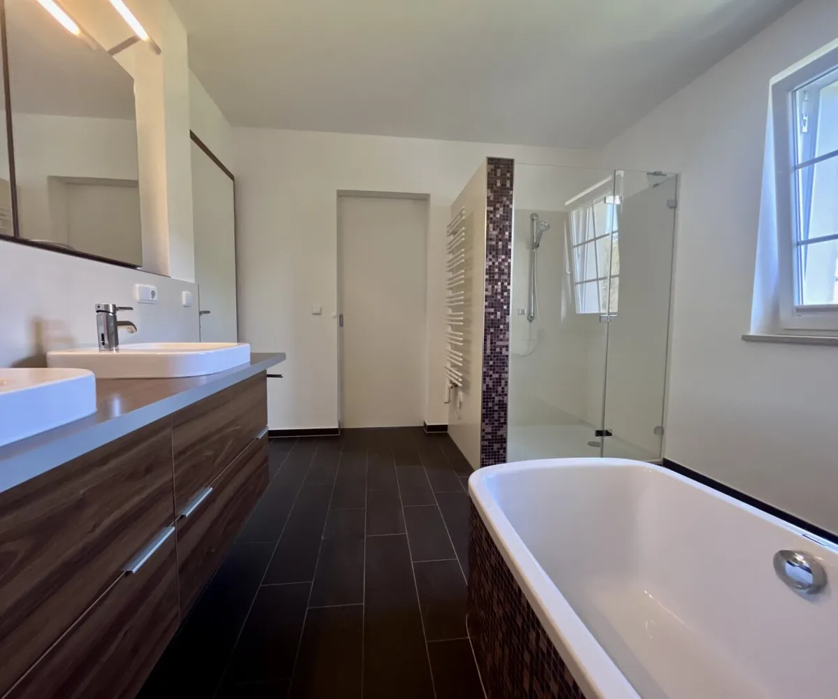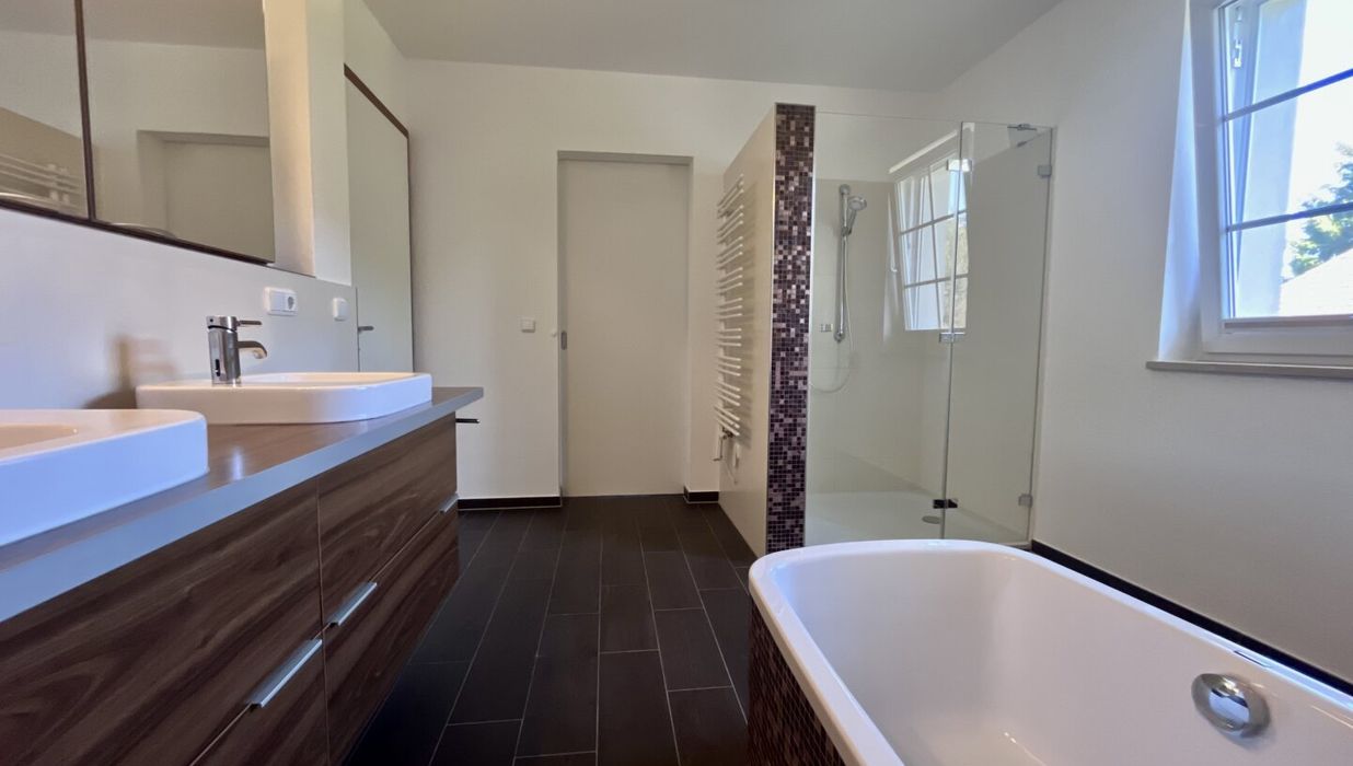 Beheizt wird das Haus über eine energieeffiziente Tiefenwärmenpumpe in Kombination mit komfortabler Fußbodenheizung und Einzelraumsteuerung in allen Räumen.