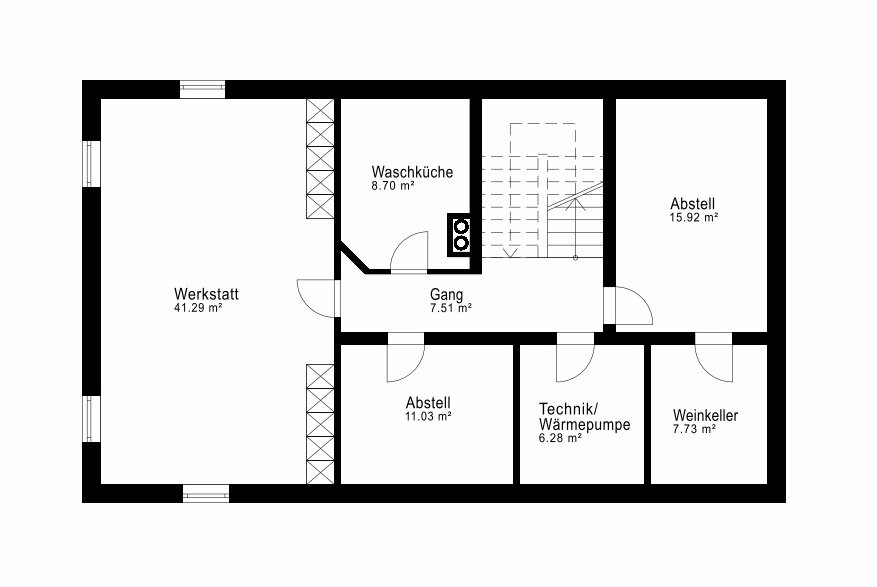 Neben Lager- und Abstellräumen stehen eine Waschküche mit Wäscheschacht und eine geräumige Werkstatt zur Verfügung.