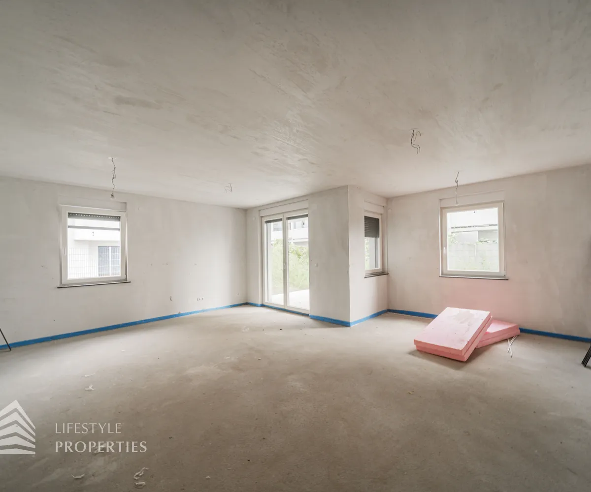 Zum Verkauf gelangt ein modernes Reihenhaus mit einer Wohnfläche von 132 m². Dieses stilvolle Haus bietet nicht nur ausreichend Platz für eine Familie, sondern auch zahlreiche Annehmlichkeiten wie einen eigenen Garten, eine geräumige Dachterrasse und einen Stellplatz für Ihr Auto. Das Haus wird belagsfertig verkauft und wird mittels Luftwärmepumpe beheitzt. Auf Wunsch kann das Objekt fertiggestellt werden.