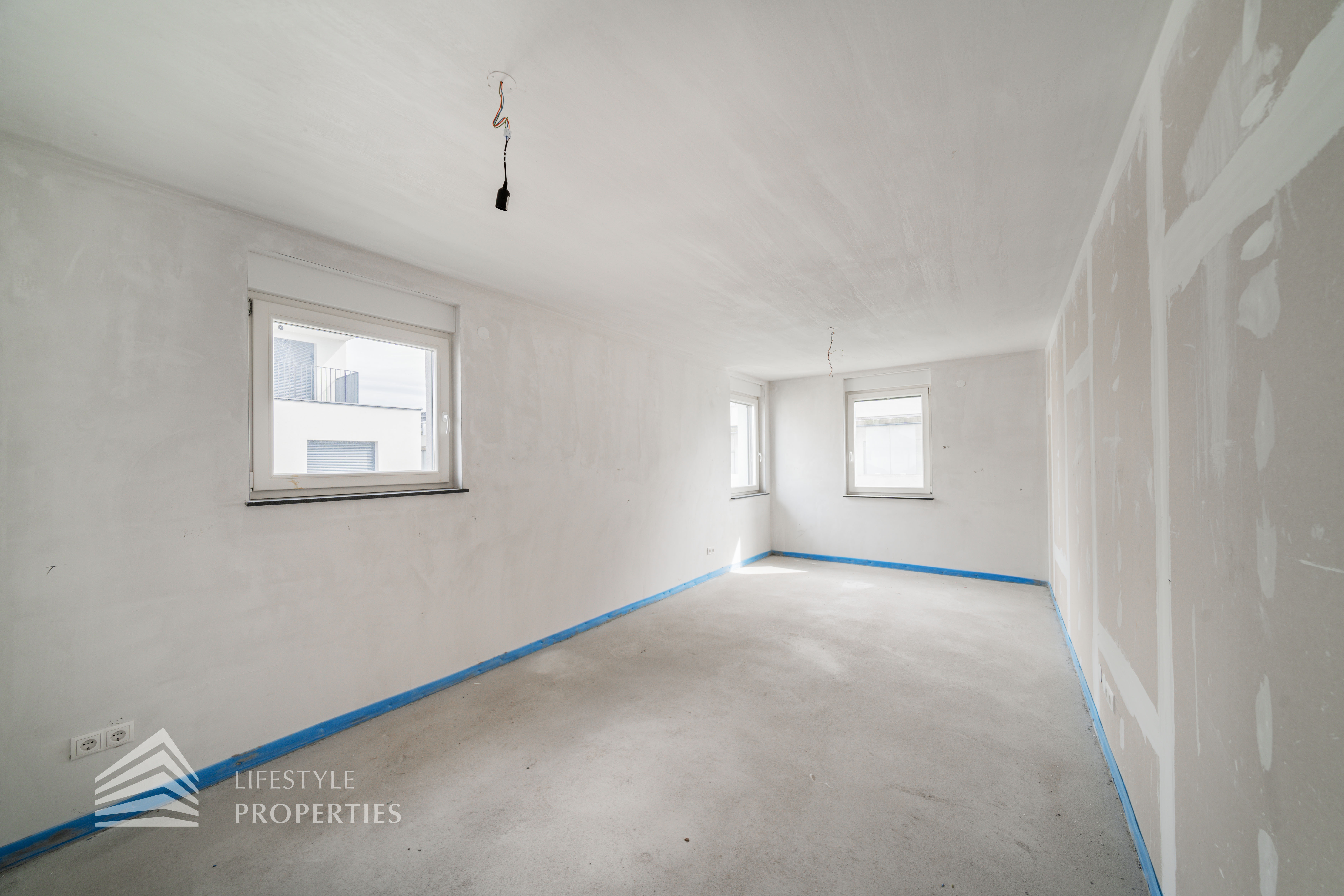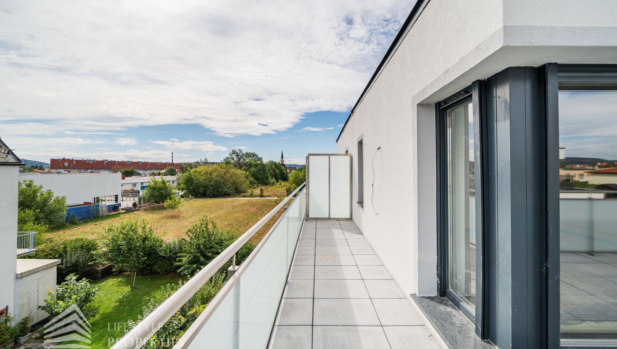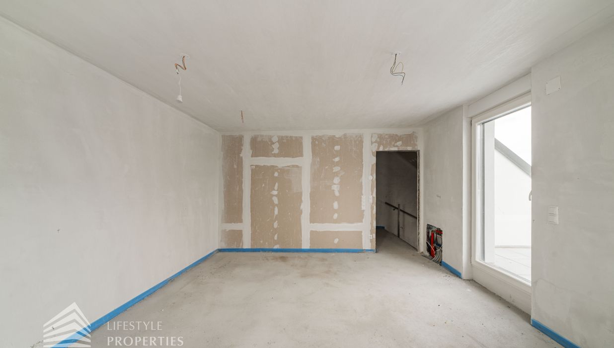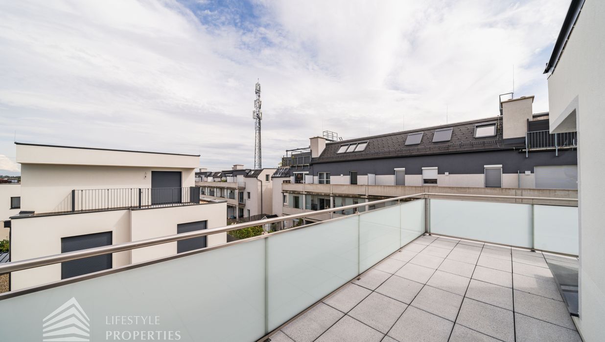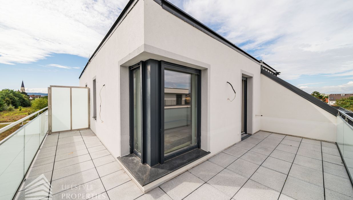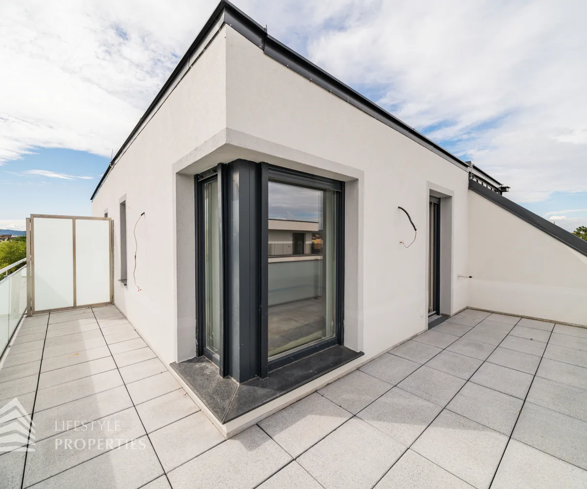 Das Dachgeschoss präsentiert sich als wahres Juwel des Hauses. Hier befindet sich das großzügige Master-Schlafzimmer, das absolute Privatsphäre und Raum für ein gemütliches Schlafzimmerensemble bietet. Ein weiteres Badezimmer mit WC ist auf dieser Ebene vorhanden und ermöglicht zusätzlichen Komfort. Das Highlight des Hauses ist zweifellos die großartige Dachterrasse mit ca.19 m², welche Sie direkt vom Schlafzimmer aus erreichen. Diese Terrasse bietet einen atemberaubenden Ausblick und lädt dazu ein, die Umgebung zu genießen, frische Luft zu schnappen und Momente der Ruhe zu erleben.