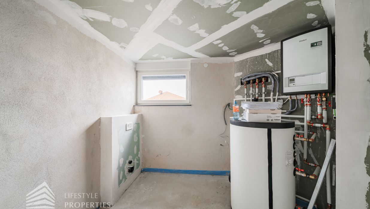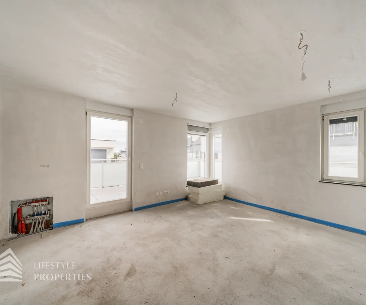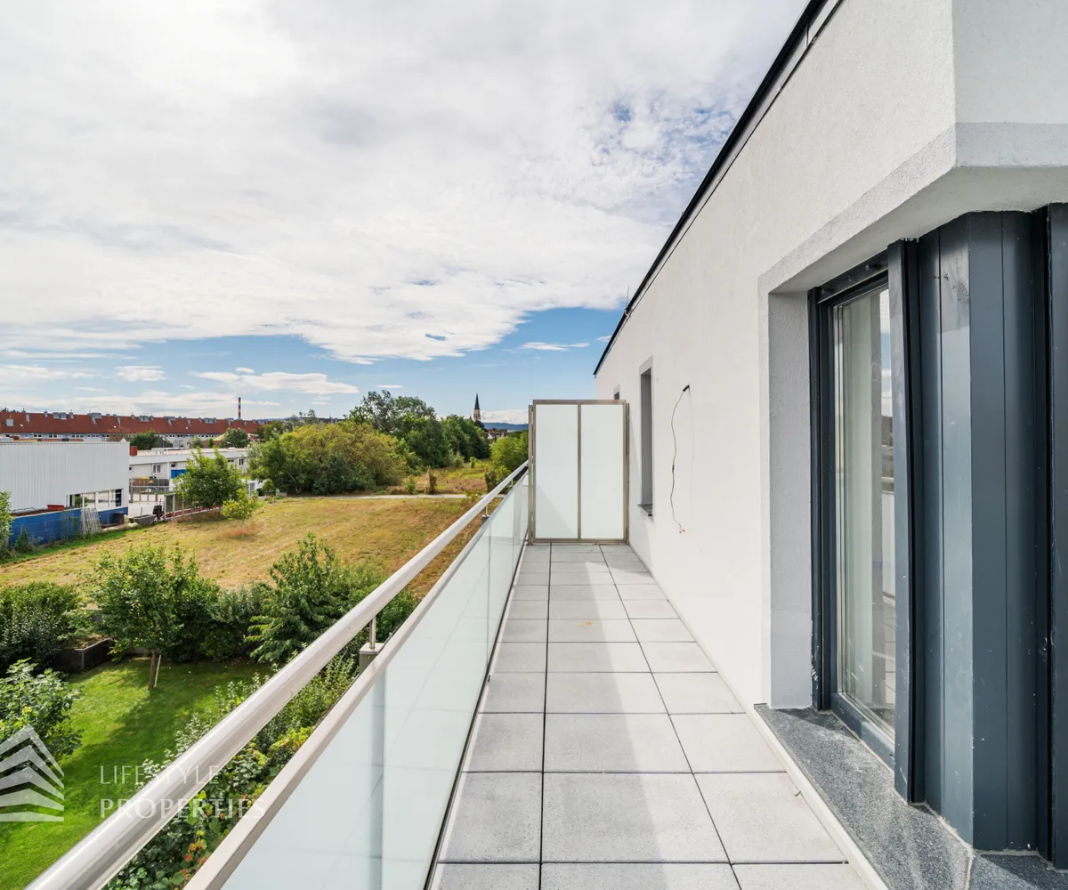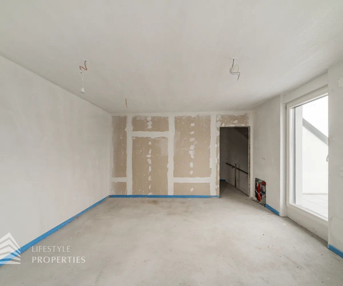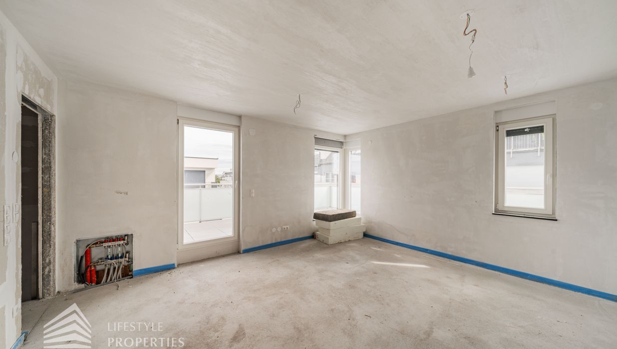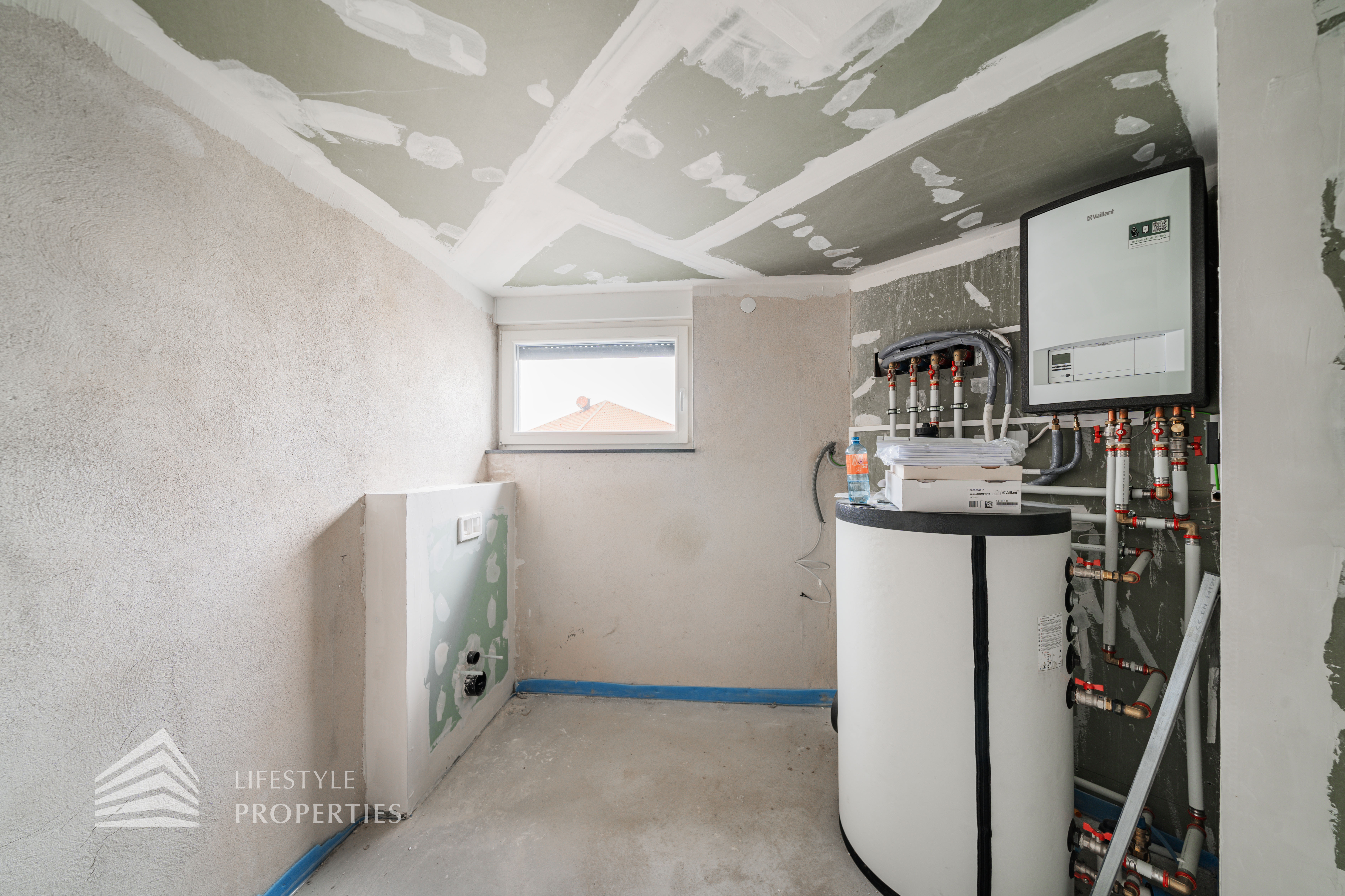 Das Dachgeschoss präsentiert sich als wahres Juwel des Hauses. Hier befindet sich das großzügige Master-Schlafzimmer, das absolute Privatsphäre und Raum für ein gemütliches Schlafzimmerensemble bietet. Ein weiteres Badezimmer mit WC ist auf dieser Ebene vorhanden und ermöglicht zusätzlichen Komfort. Das Highlight des Hauses ist zweifellos die großartige Dachterrasse mit ca.19 m², welche Sie direkt vom Schlafzimmer aus erreichen. Diese Terrasse bietet einen atemberaubenden Ausblick und lädt dazu ein, die Umgebung zu genießen, frische Luft zu schnappen und Momente der Ruhe zu erleben.