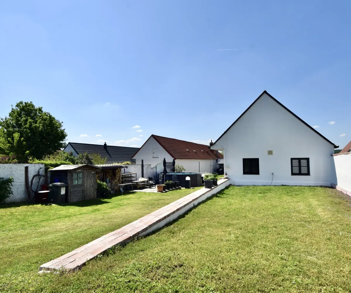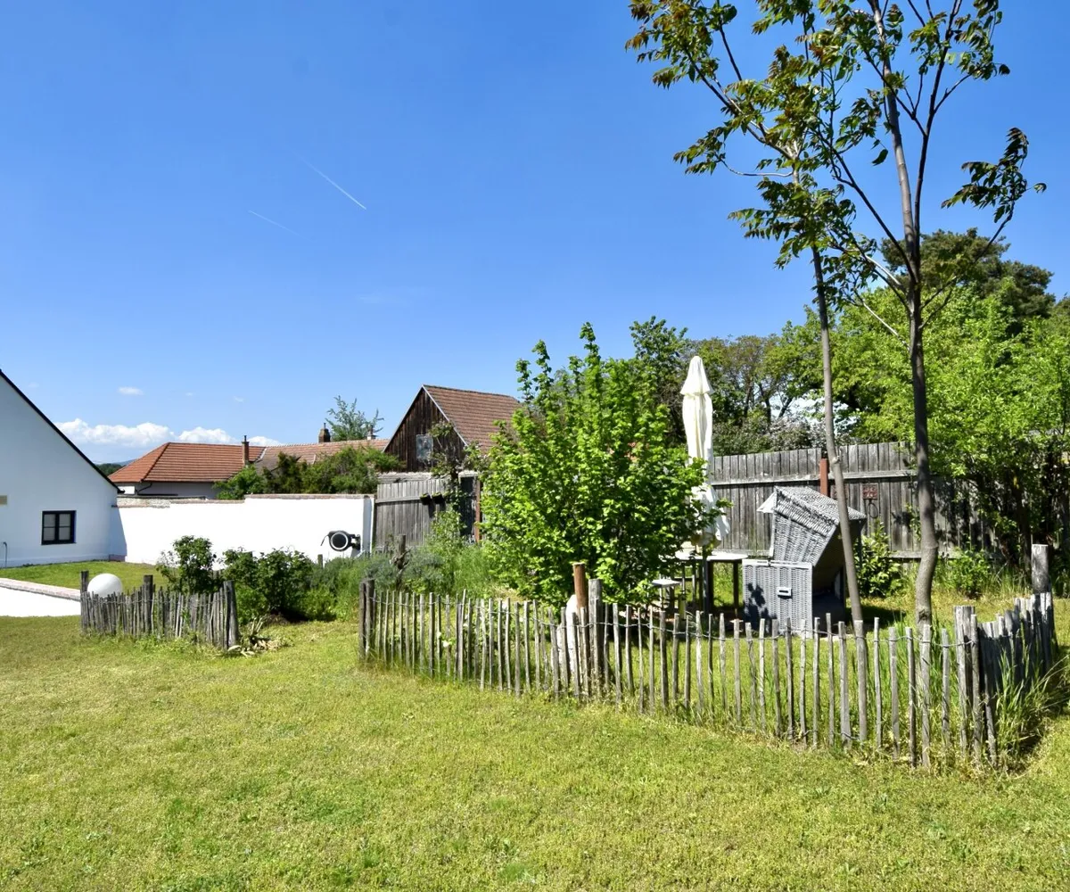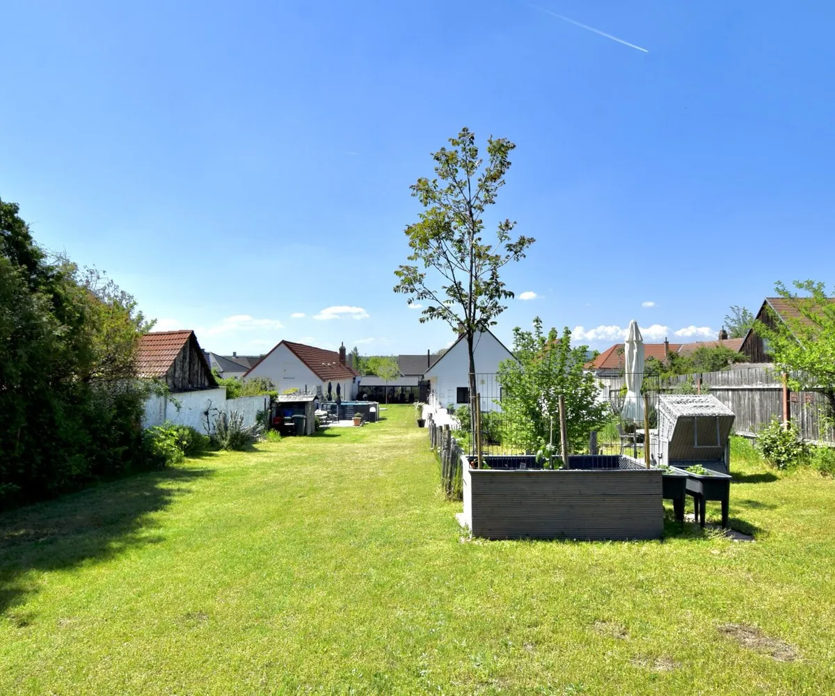 Mehrere Rückzugsorte, sonnige Sitzplätze und die schattige Gartenterrasse ermöglichen das Leben im Freien – sei es für entspannte Nachmittage, Gartenfeste oder einfach zum Durchatmen.