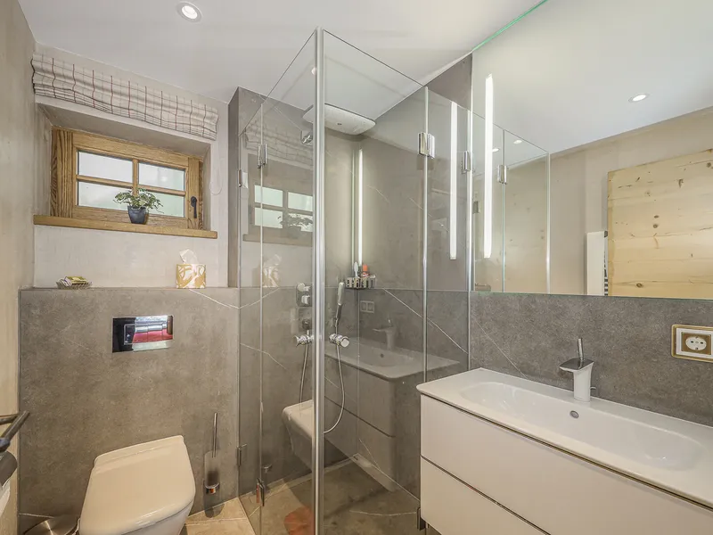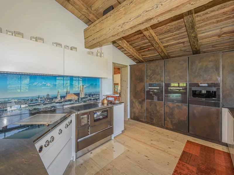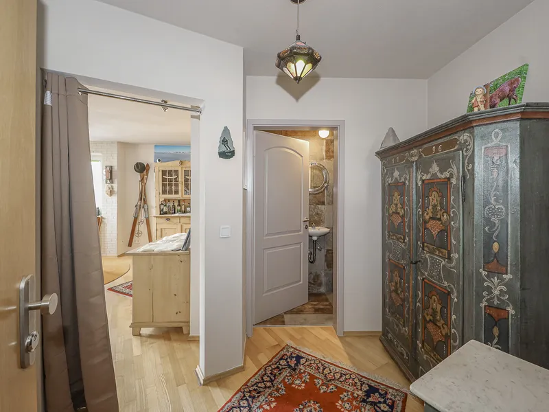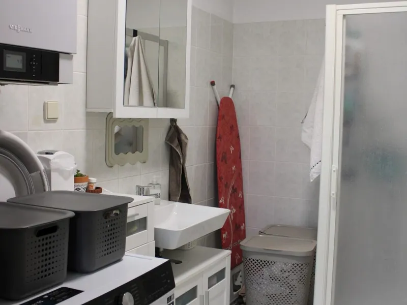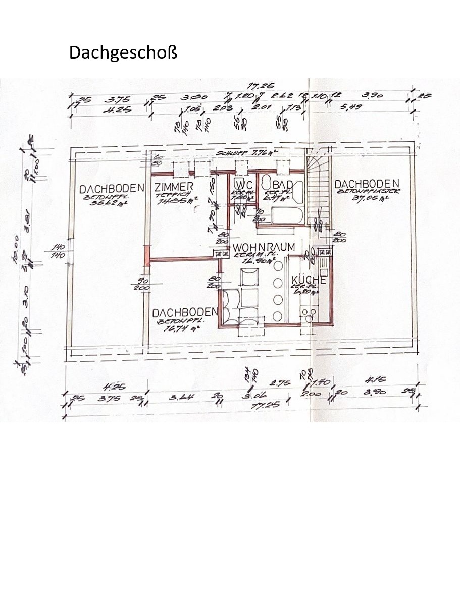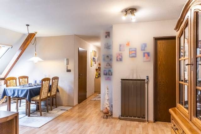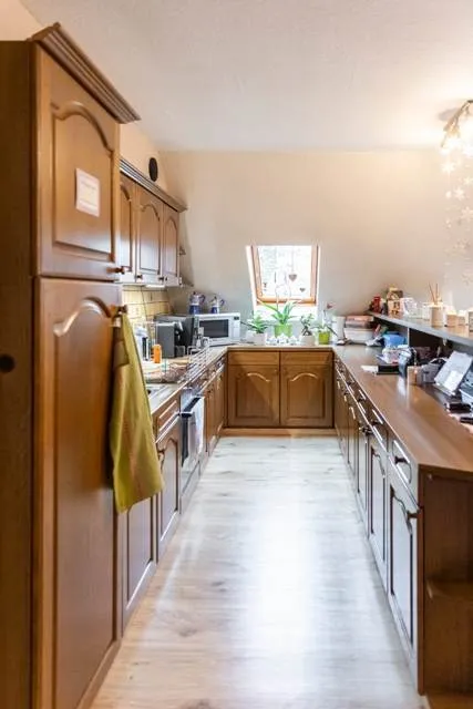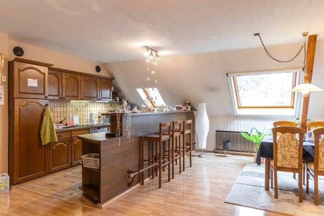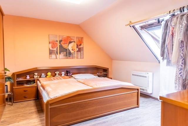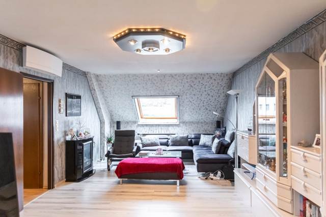 Im klimatisierten Dachgeschoss (BJ ca. 1980) erwartet euch eine weitere, kompakte Wohneinheit bestehend aus Vorzimmer, große Küche, Wohnzimmer, 2 Schlafzimmer, Bad und WC getrennt.