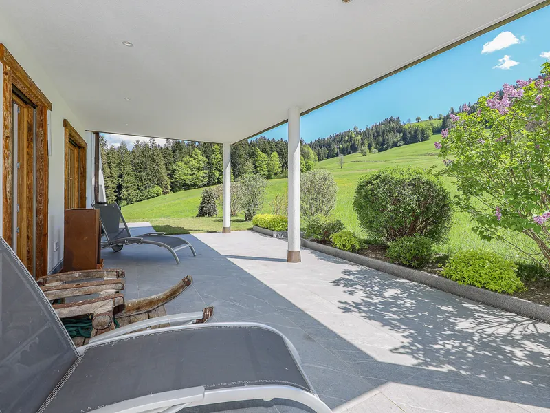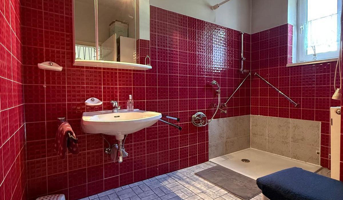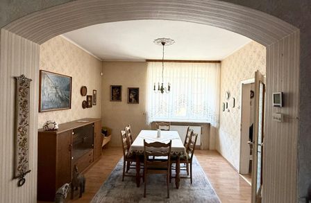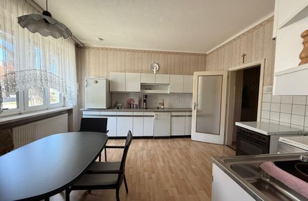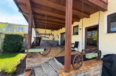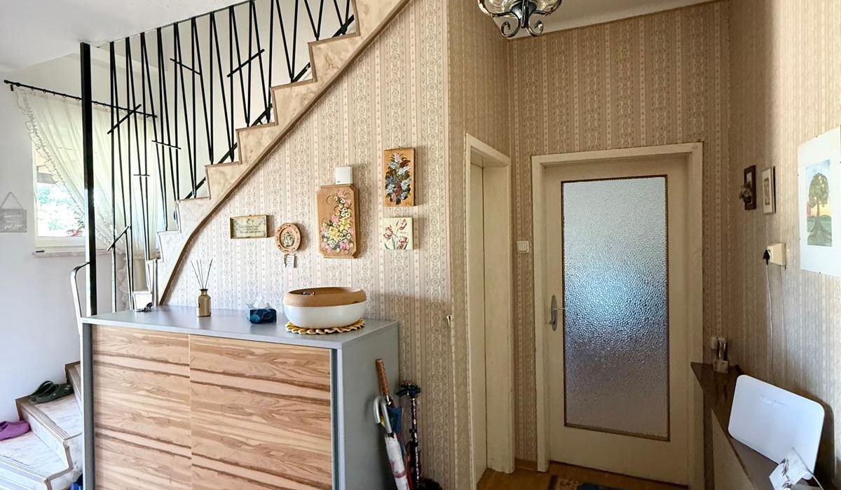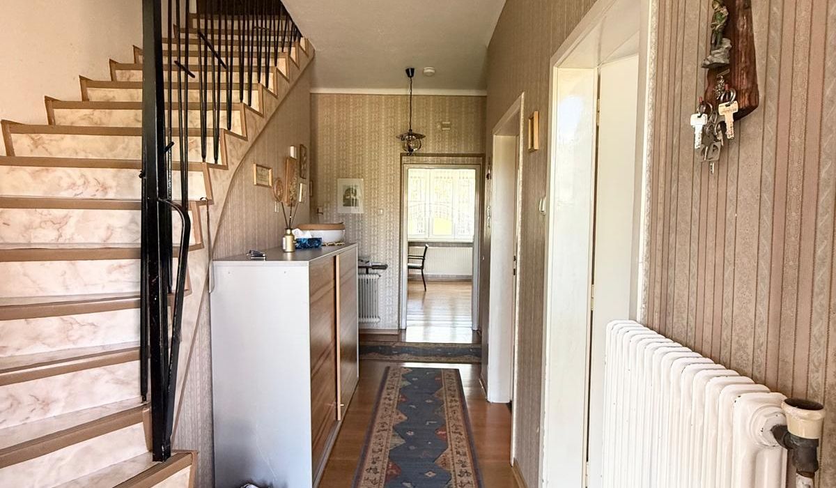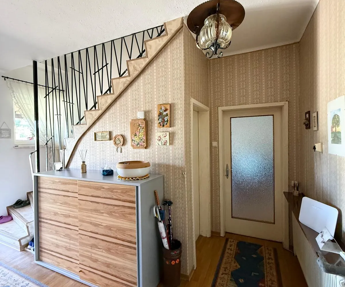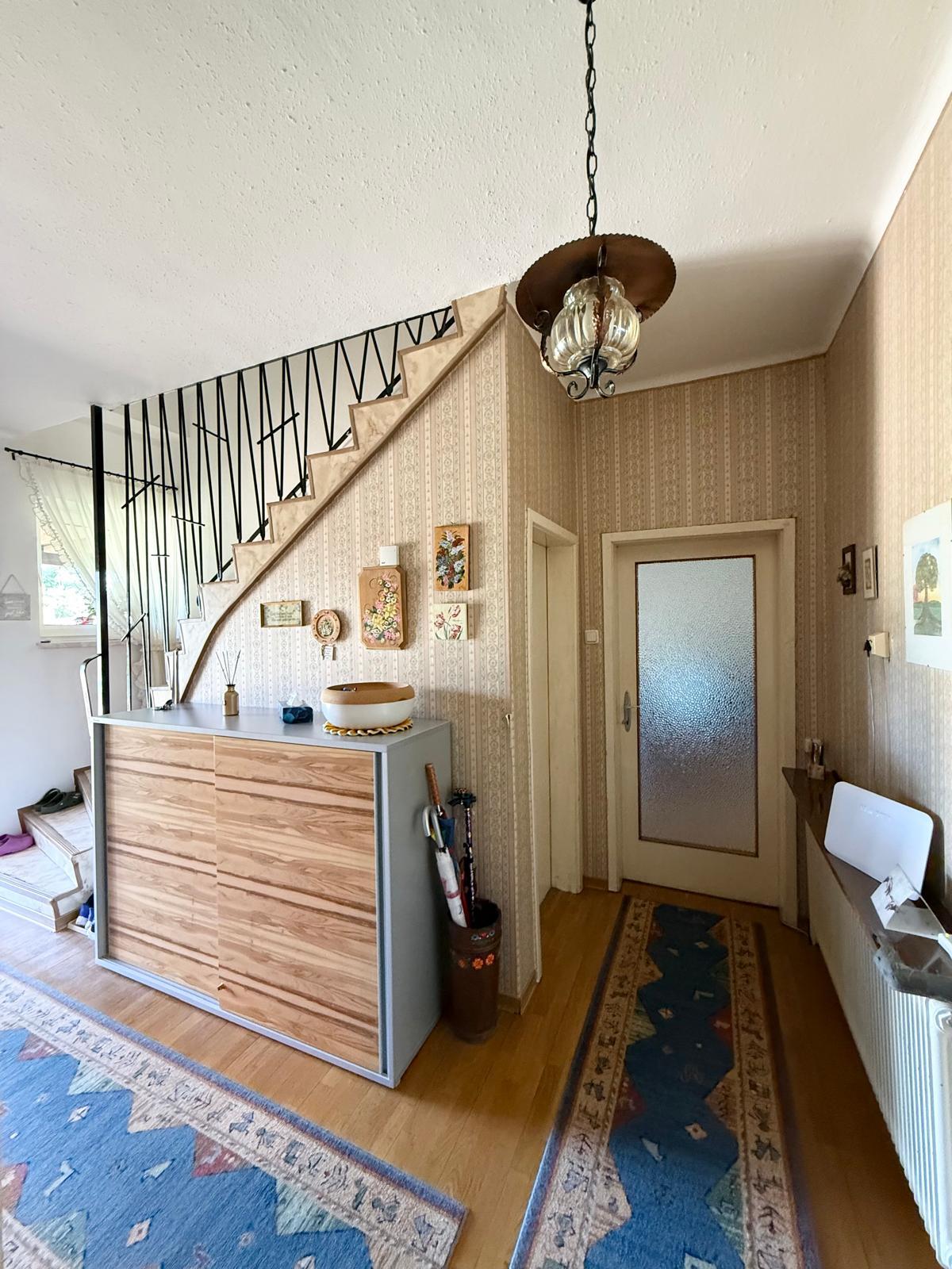 Über die überdachte Terrasse, einem herrlichen Platz zum entspannen, ausgestattet mit einer Grillstelle und einem Essbereich, betritt man das Erdgeschoss des Hauses (BJ ca.1960). Hier erwartet Euch folgende Aufteilung: