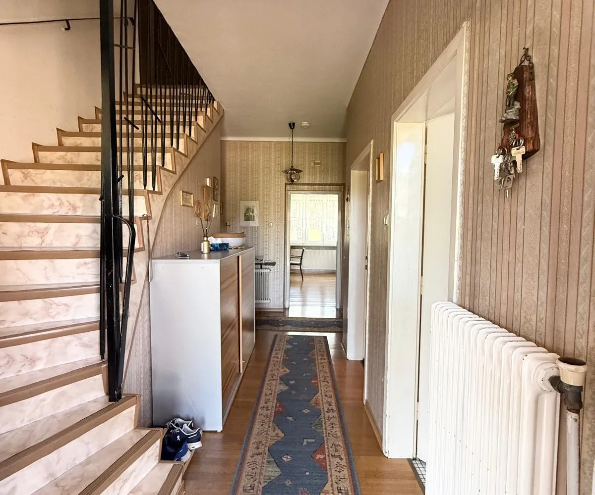 Diese Wohnidylle breitet sich über 200qm Wohnfläche und ca.100qm Keller und Garage aus. Die Grundstücksgröße von ca. 407qm und die Terrasse des Hauses bieten eine harmonische Einheit für ein entspanntes und zufriedenes Leben.