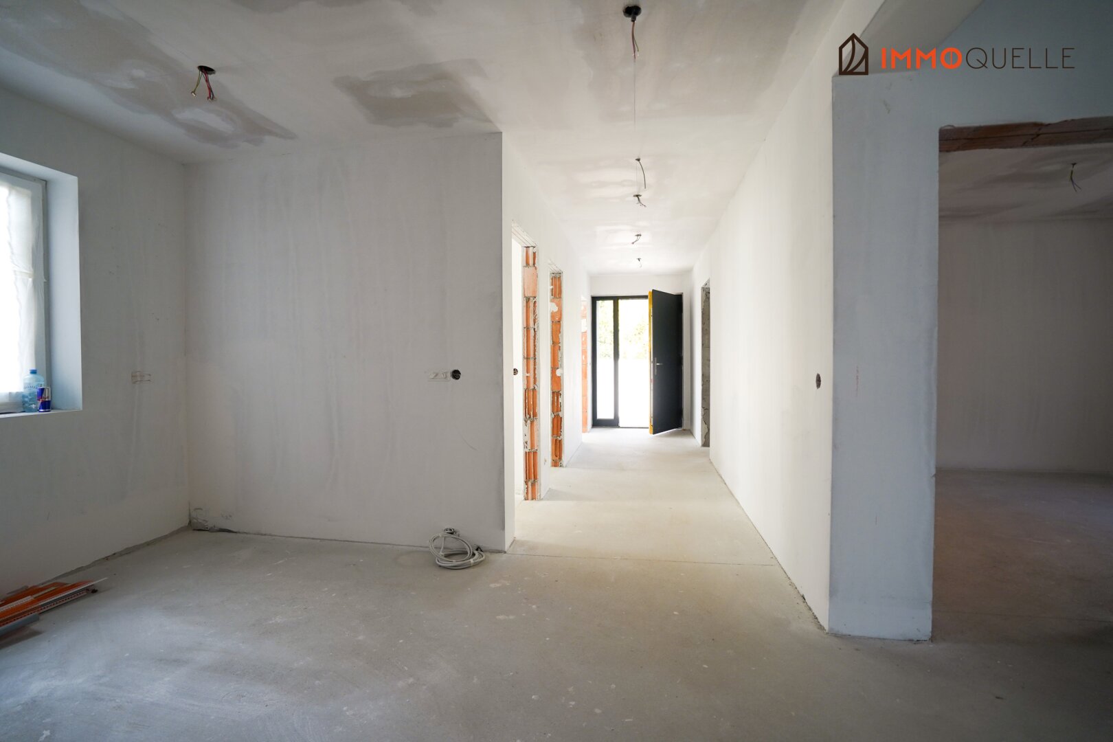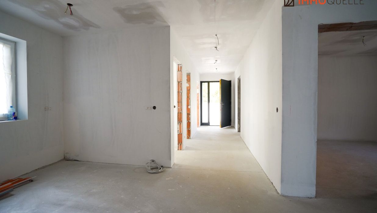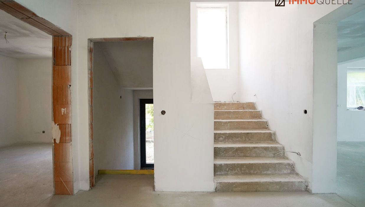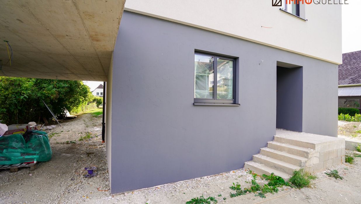 Das Haus befindet sich im belagsfertigen Zustand. Der Großteil aller Arbeiten wurde somit bereits ausgeführt. Weitere Arbeiten, wie das Glasgeländer am Balkon, die Inbetriebnahme der Luft-Wärme-Pumpe oder das Streichen der Außensäulen, werden noch vom Verkäufer finalisiert. Auch die Trennmauer zwischen den beiden Haushälften erhält abschließend eine optische Endbearbeitung.