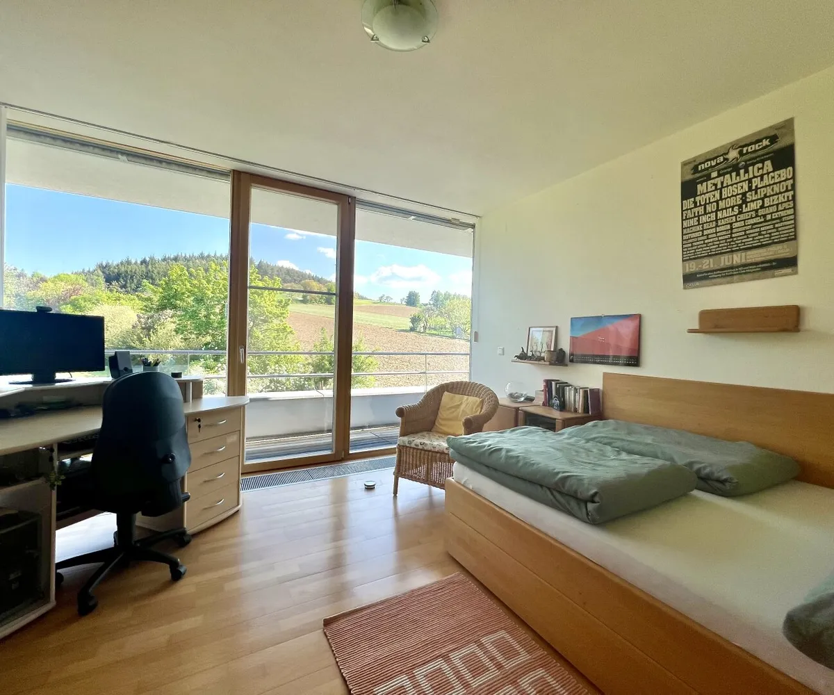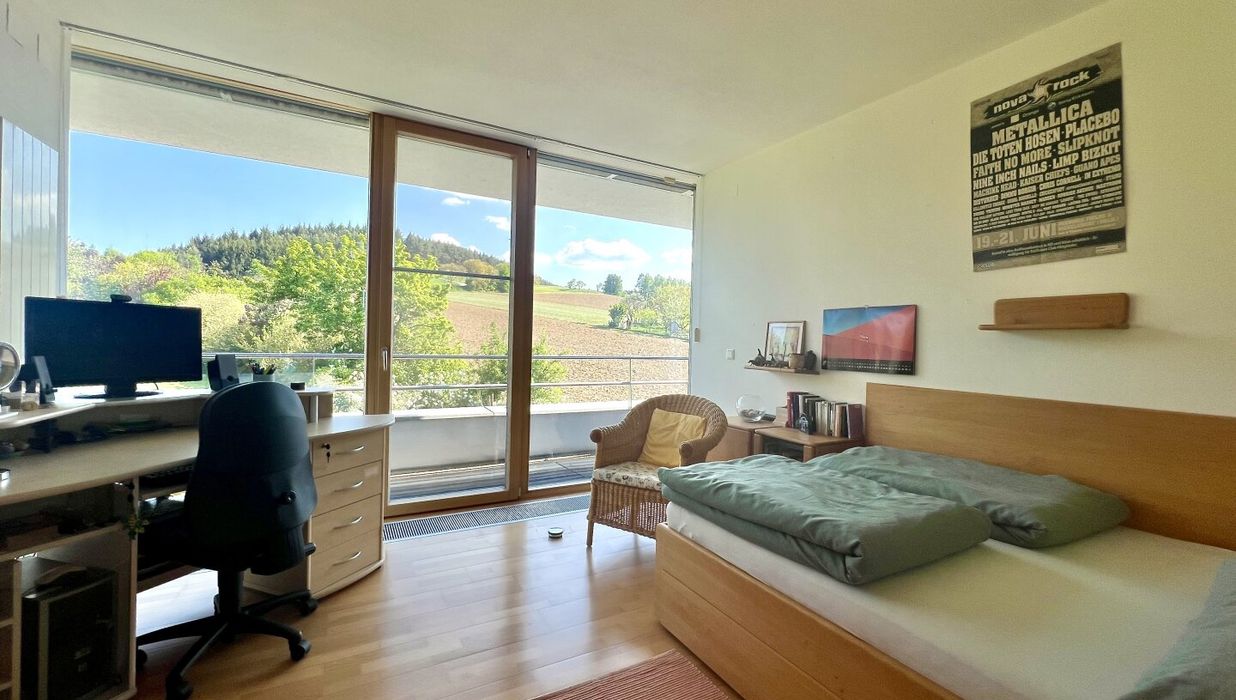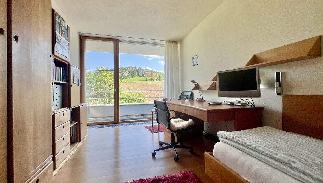 Die Immobilie liegt in einer absolut sonnigen, unverbaubaren Lage mit traumhaftem Ausblick auf die umliegende Natur – ein