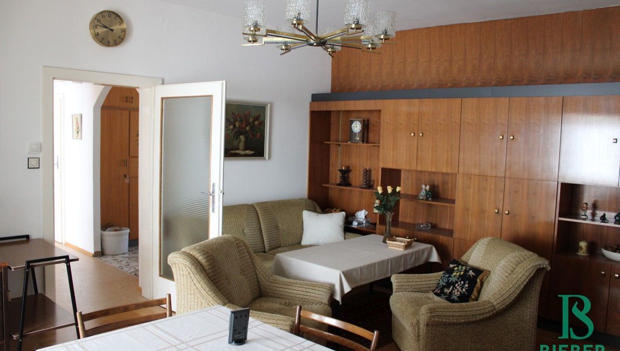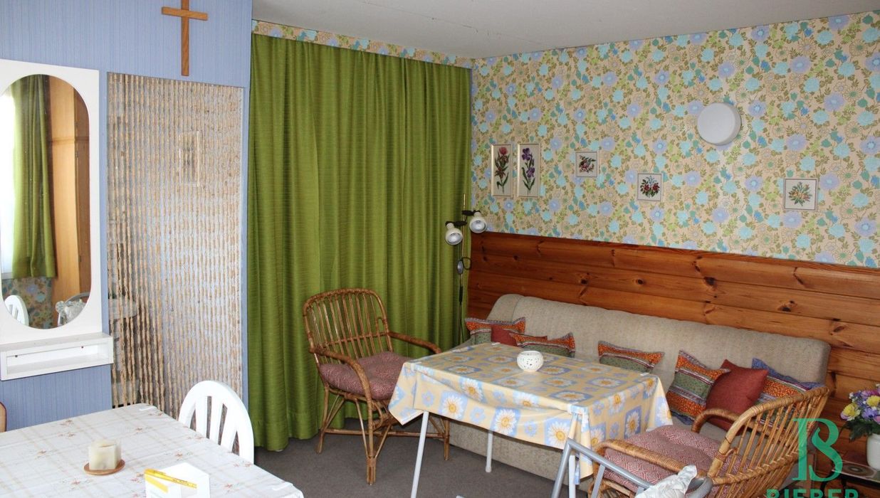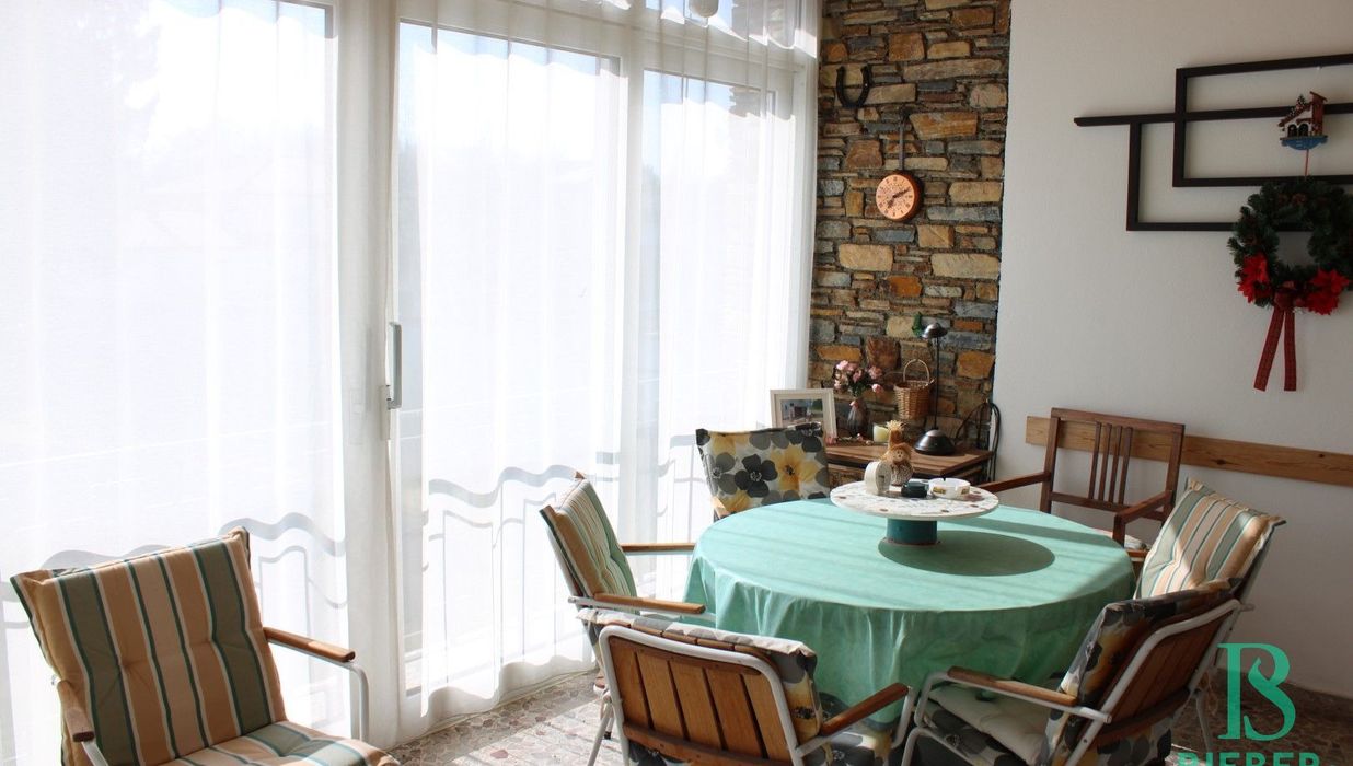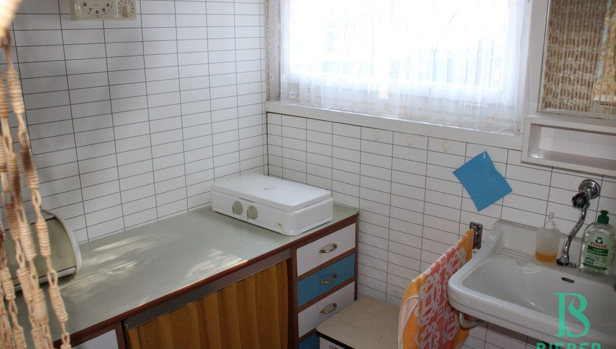 Die Ausstattung ist dem alter entsprechend aber in einem guten und gepflegten Zustand! Von Steinboden, Parkett, Fliesen und Linoleum ist alles vorhanden… und die Küche, sowie die Nassräume lassen die 60er Jahre wieder auferstehen. Nordseitig bestehen noch Verbundfenster mit Alu-Jalousien aber der Wintergarten, das Ostfenster und die Südfenster sind bereits mit 2-Fach-Isolierung und jedes Fenster mit elektrischen Außenjalousien versehen.