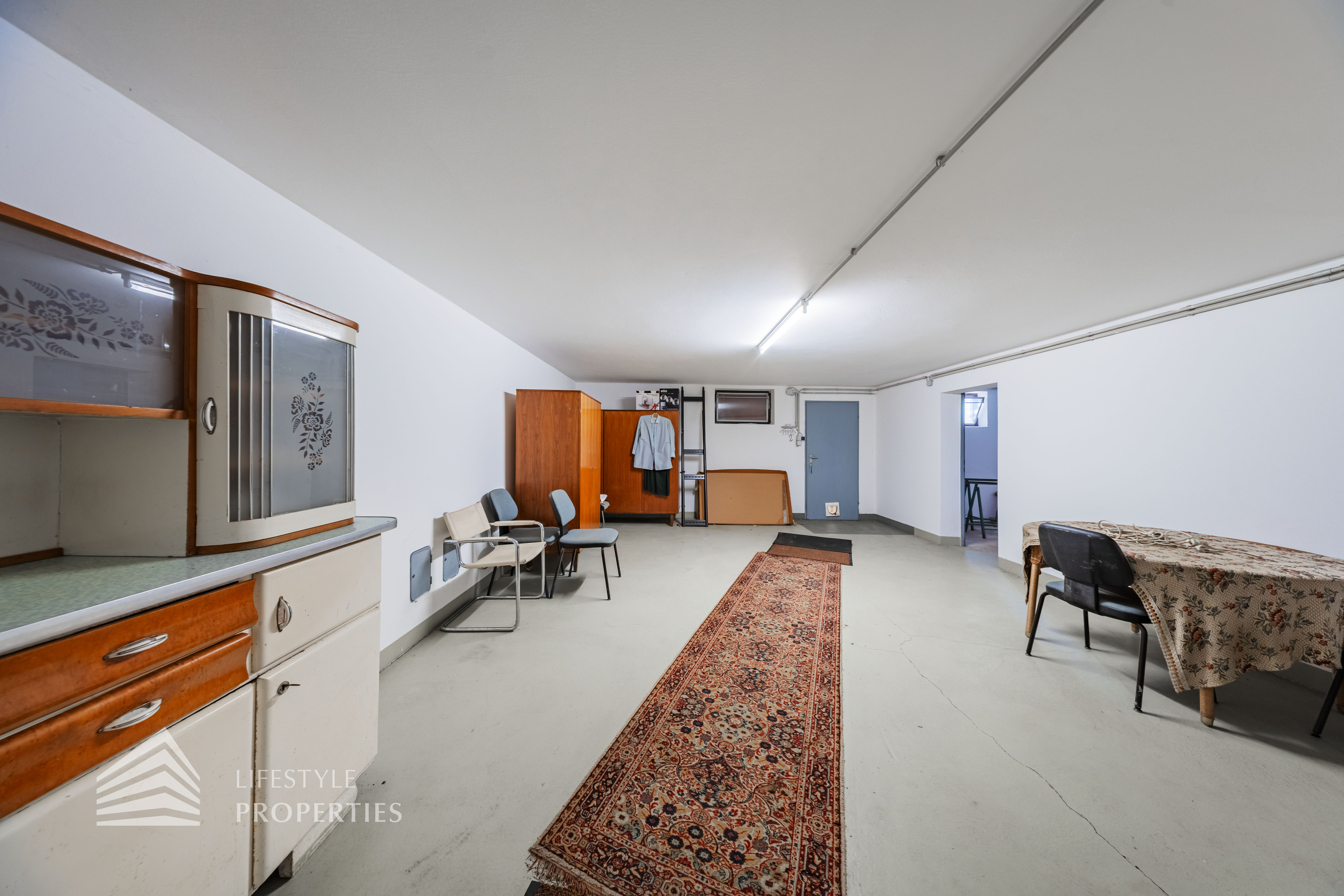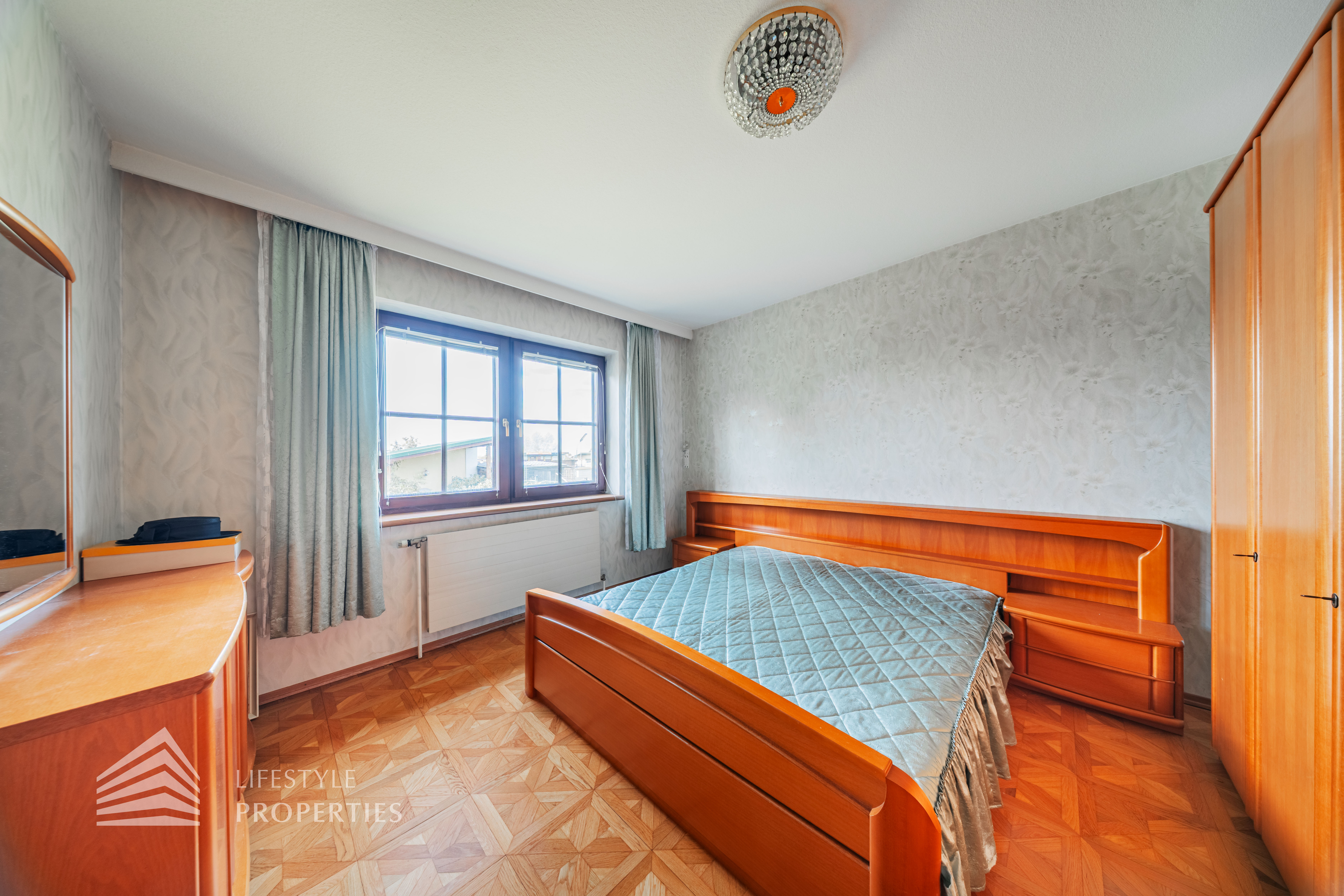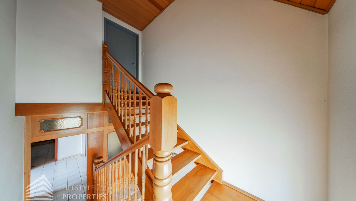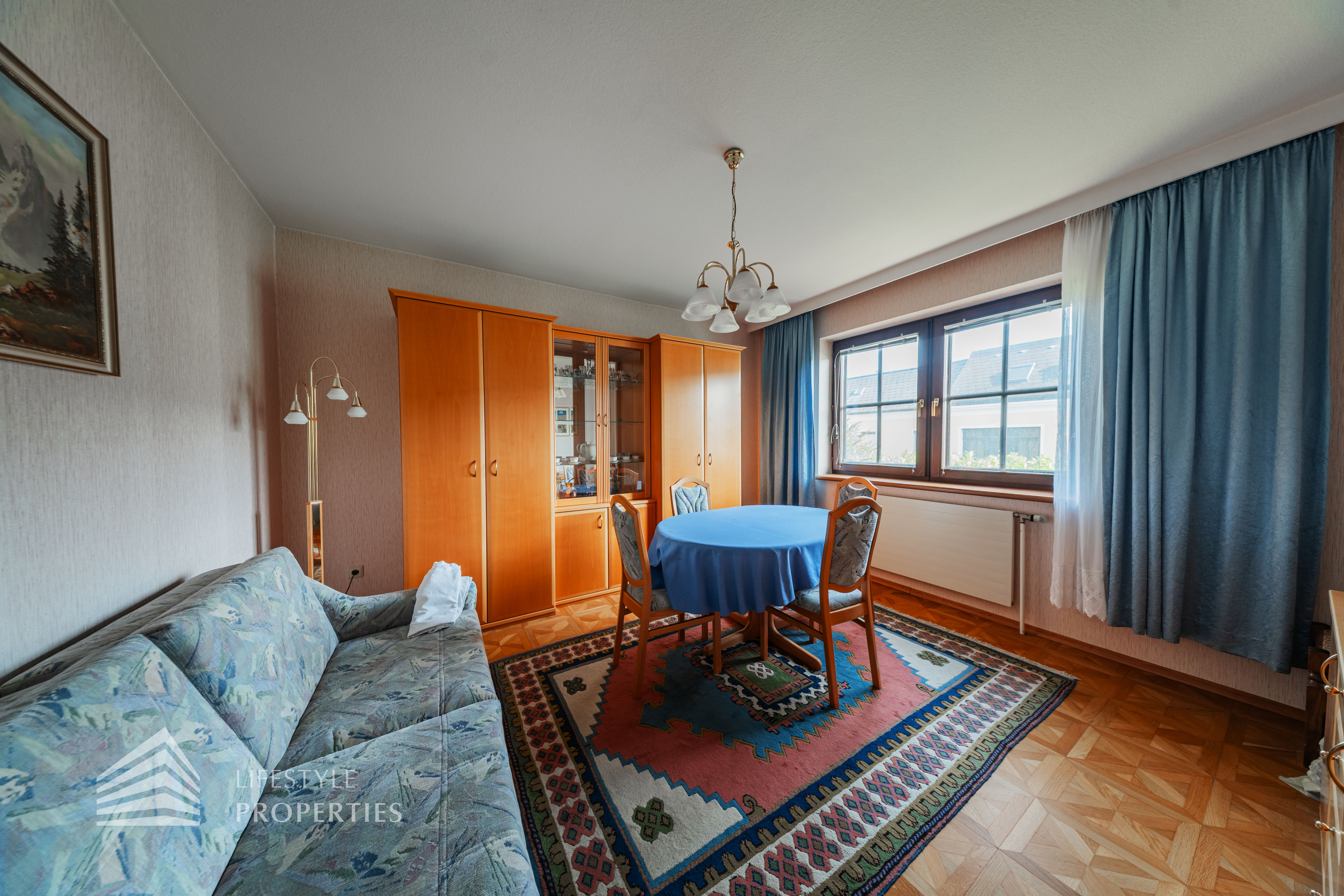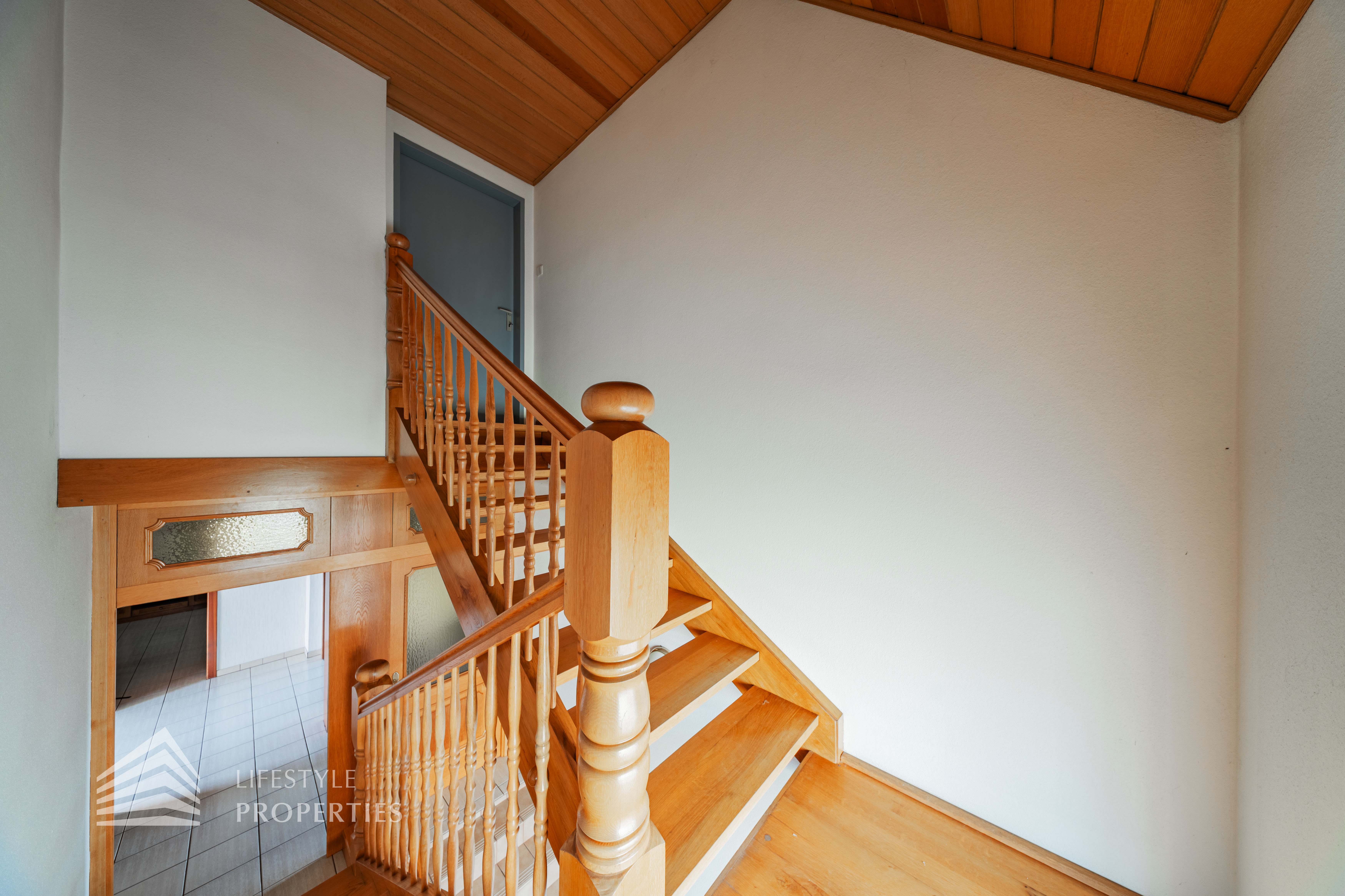 Dieses familienfreundliche Zuhause, welches im Jahre 1983 fertiggestellt wurde, bietet auf einem großzügigen Grundstück von ca. 844 m² ausreichend Platz für Wohnen, Freizeit und Erholung. Die Wohnfläche verteilt sich auf drei helle Zimmer, eine voll ausgestattete Einbauküche, ein Badezimmer, ein separates WC sowie einen praktischen Abstellraum. Das Dachgeschoss bietet zusätzliches Ausbaupotenzial – ideal für weitere Wohn- oder Arbeitsbereiche nach eigenen Vorstellungen. Das Kellergeschoss schafft zusätzlichen Stauraum, Hobby- oder Nutzflächen. Das Haus wird bis auf den Teppichen und ausgewählten Stühlen möbliert verkauft.