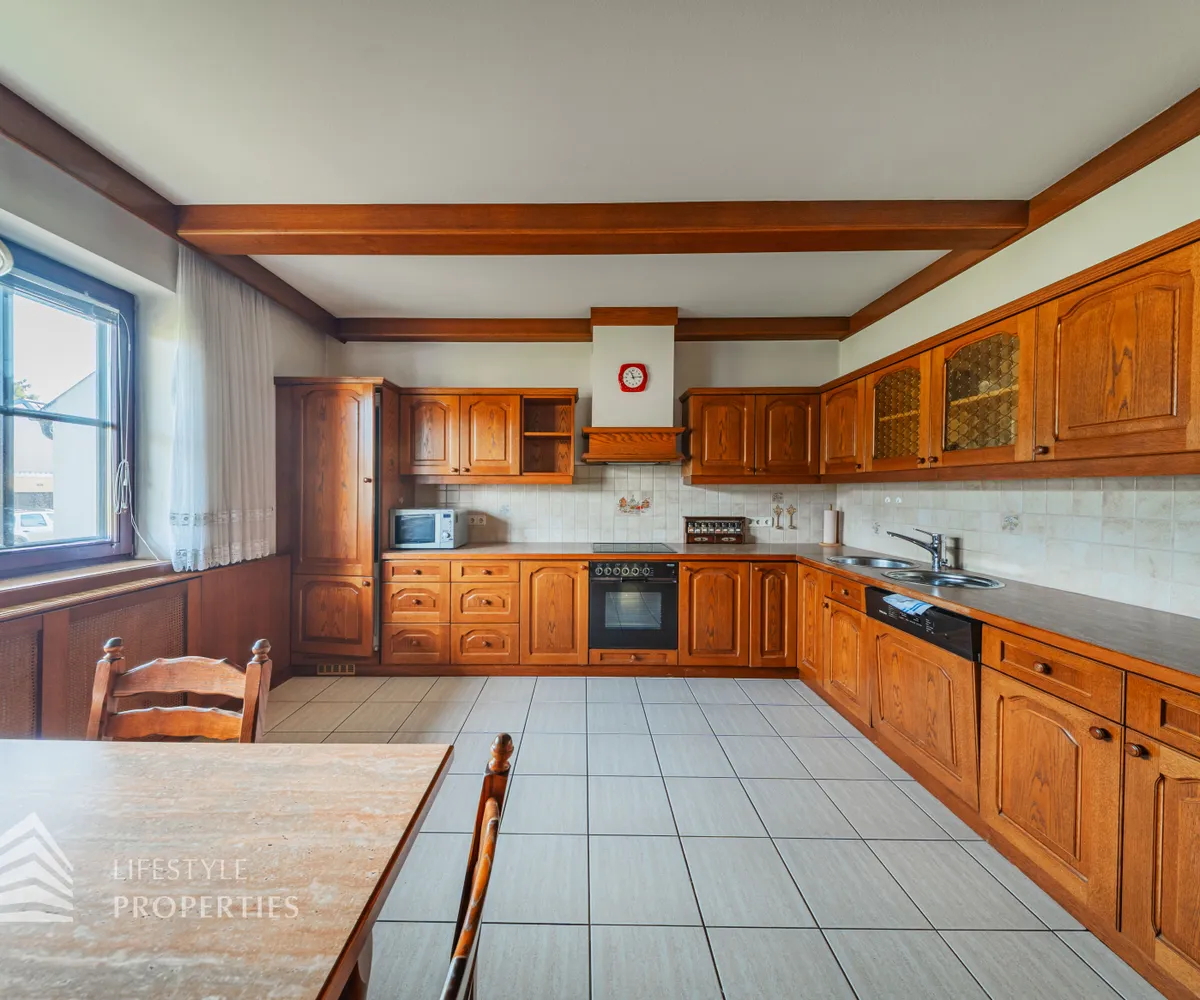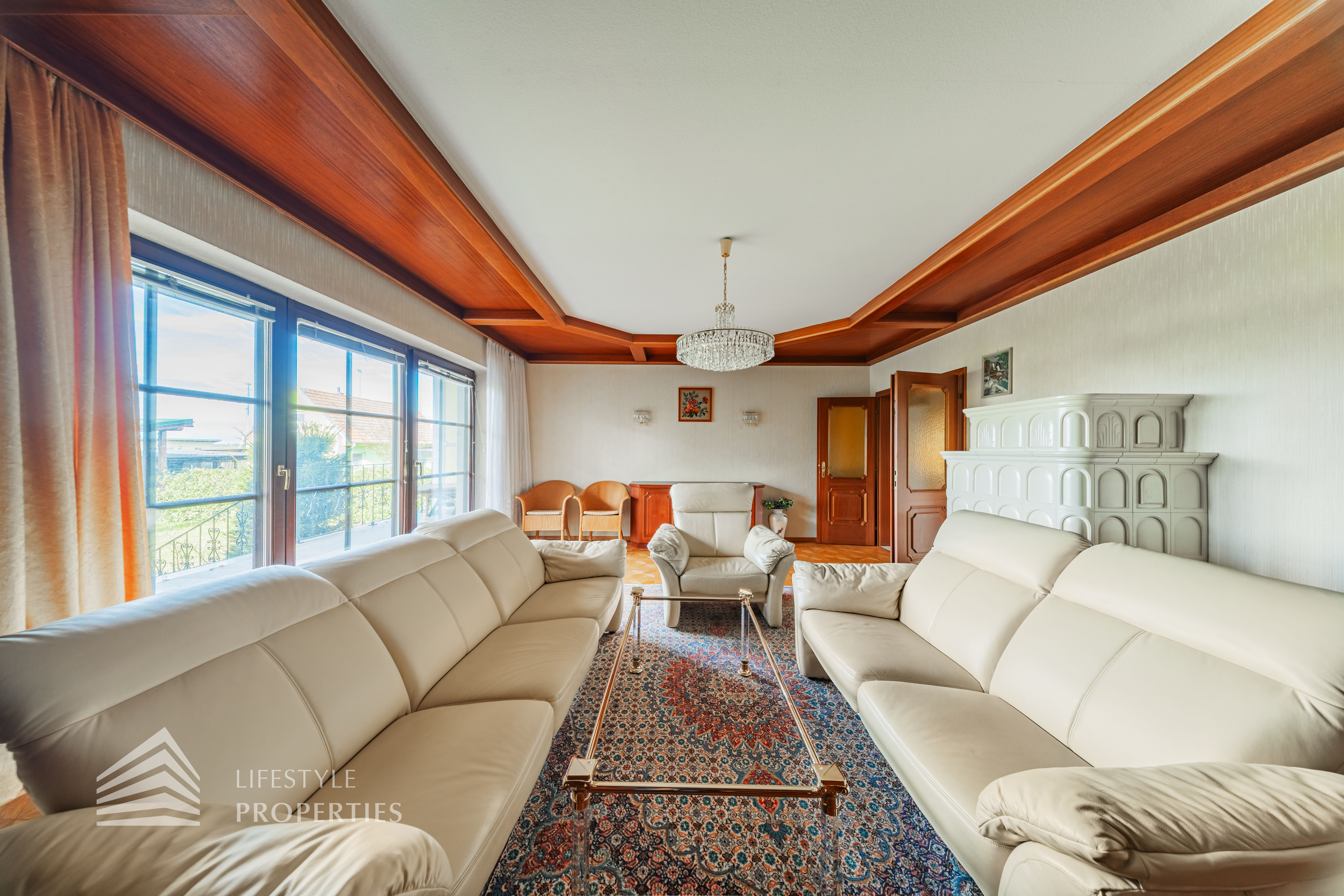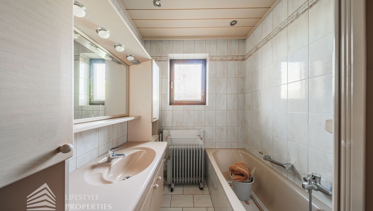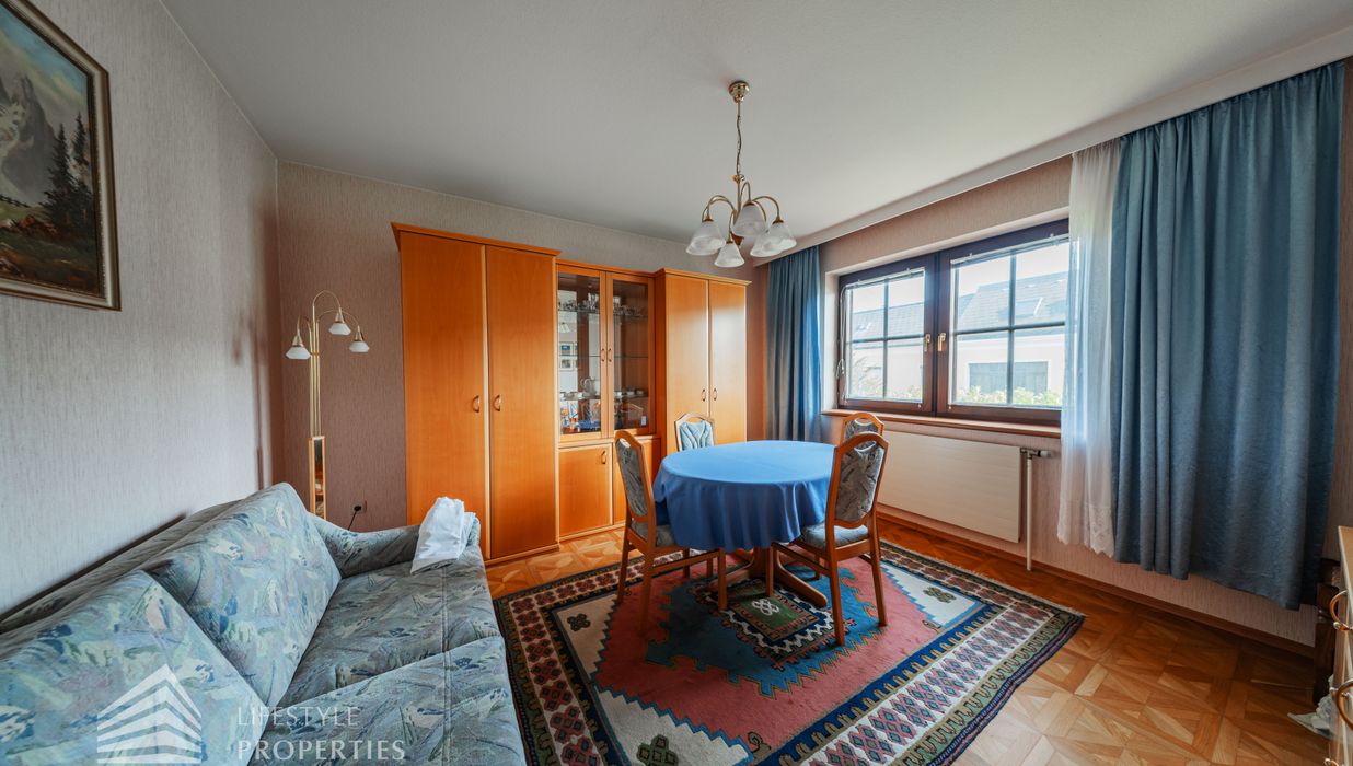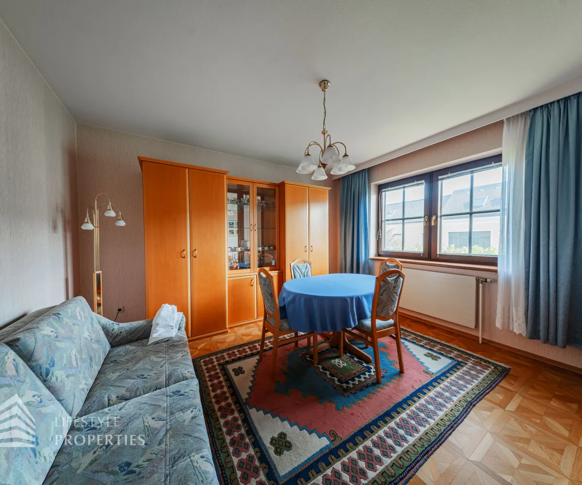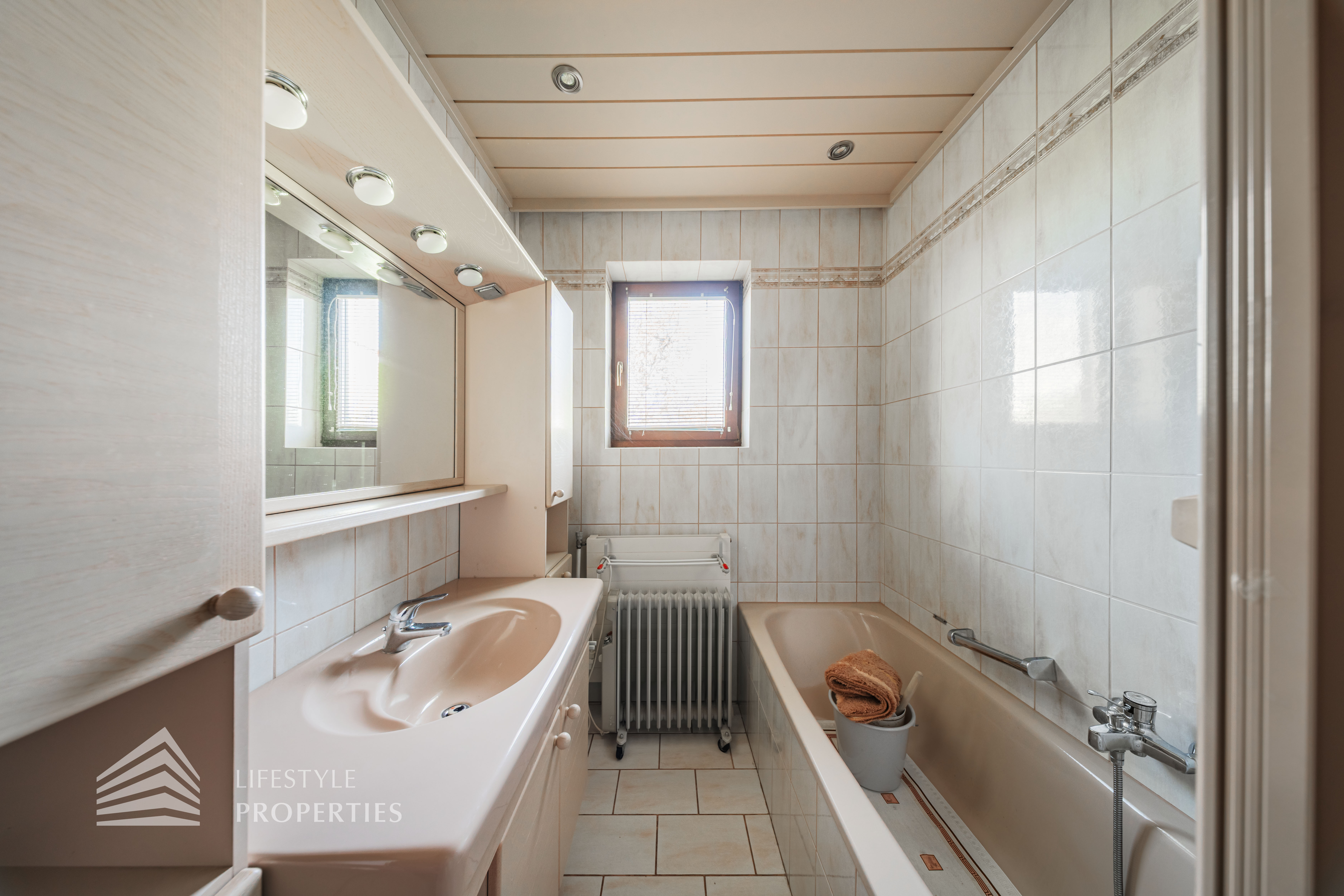 Dieses familienfreundliche Zuhause, welches im Jahre 1983 fertiggestellt wurde, bietet auf einem großzügigen Grundstück von ca. 844 m² ausreichend Platz für Wohnen, Freizeit und Erholung. Die Wohnfläche verteilt sich auf drei helle Zimmer, eine voll ausgestattete Einbauküche, ein Badezimmer, ein separates WC sowie einen praktischen Abstellraum. Das Dachgeschoss bietet zusätzliches Ausbaupotenzial – ideal für weitere Wohn- oder Arbeitsbereiche nach eigenen Vorstellungen. Das Kellergeschoss schafft zusätzlichen Stauraum, Hobby- oder Nutzflächen. Das Haus wird bis auf den Teppichen und ausgewählten Stühlen möbliert verkauft.