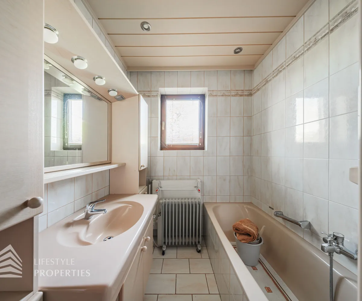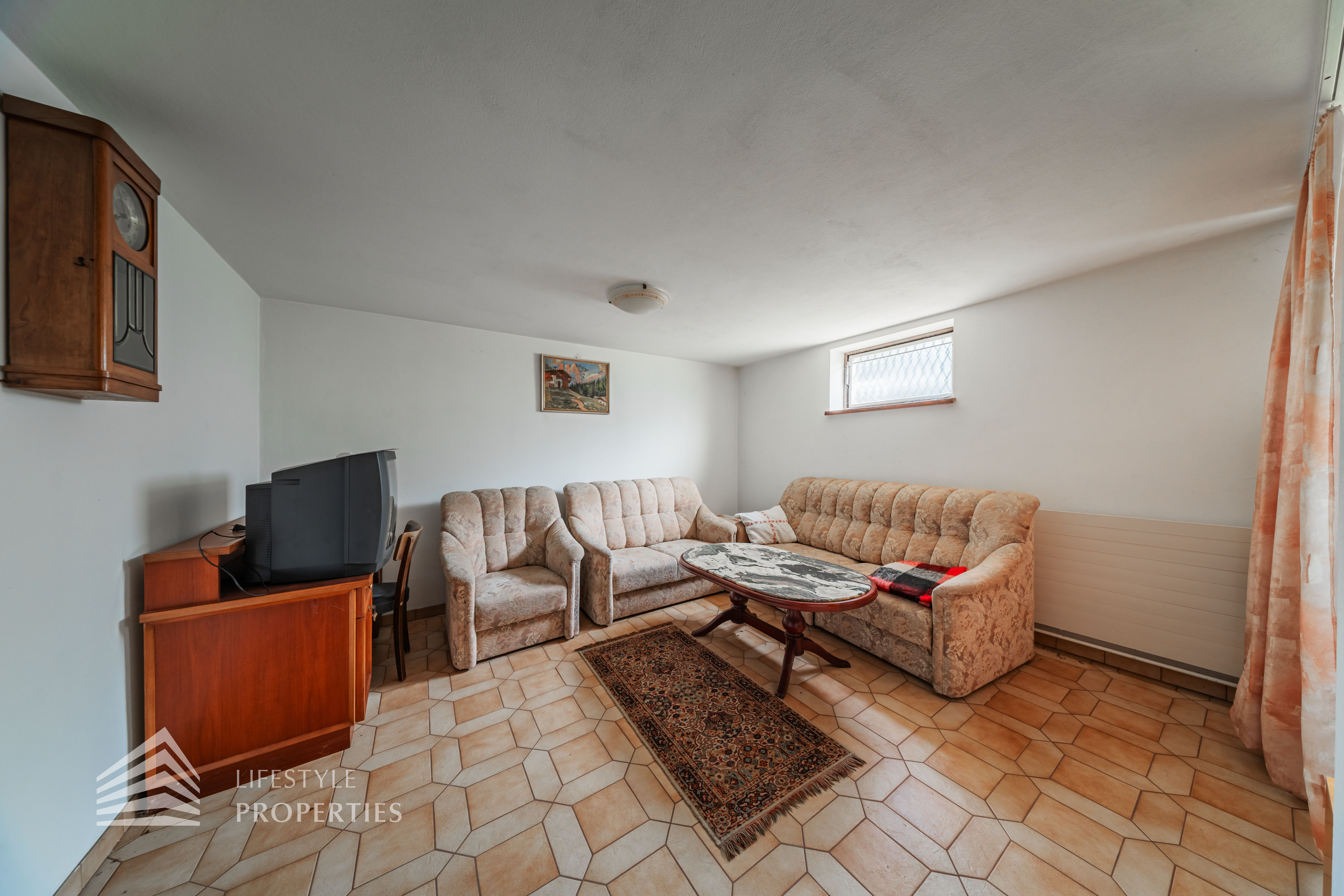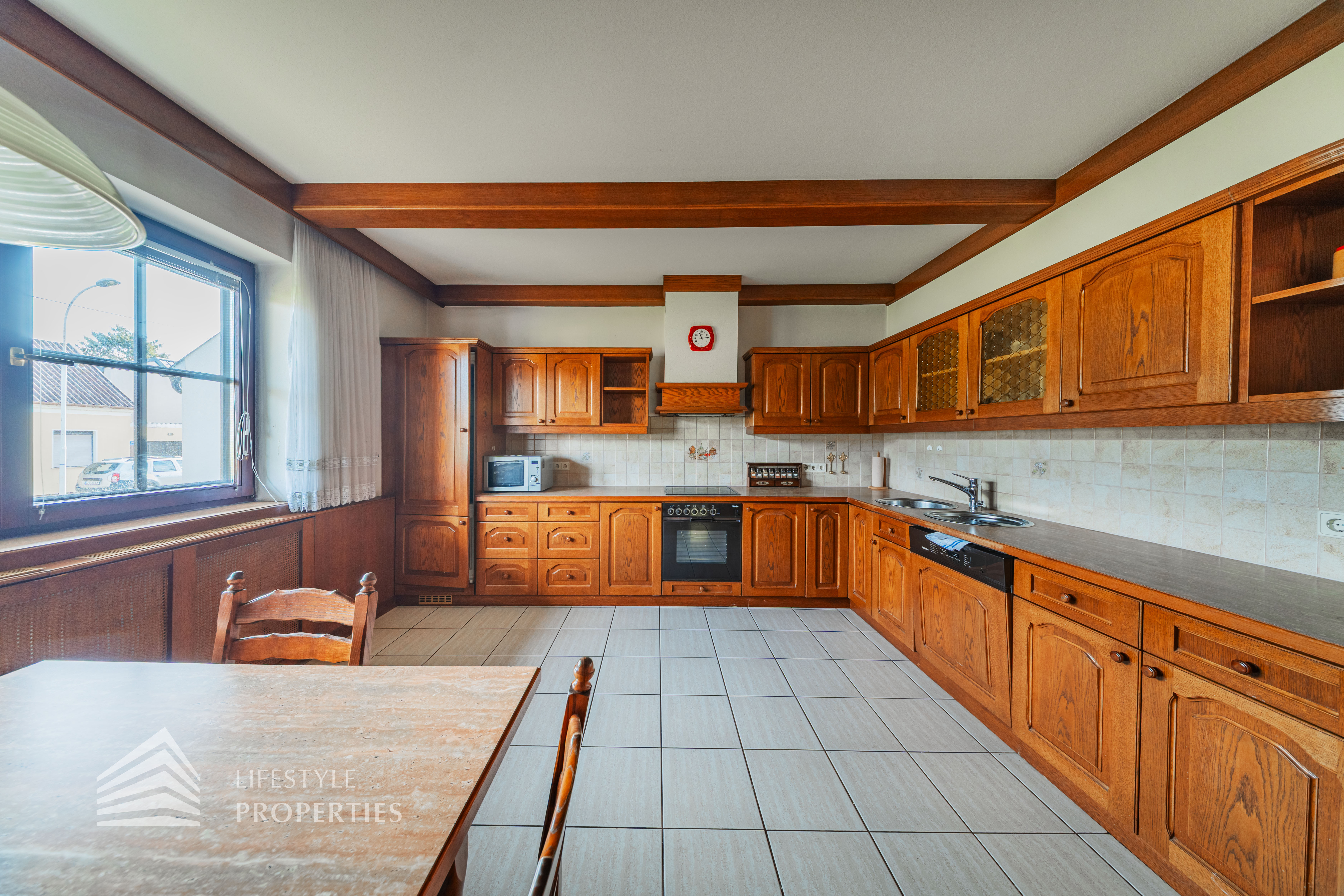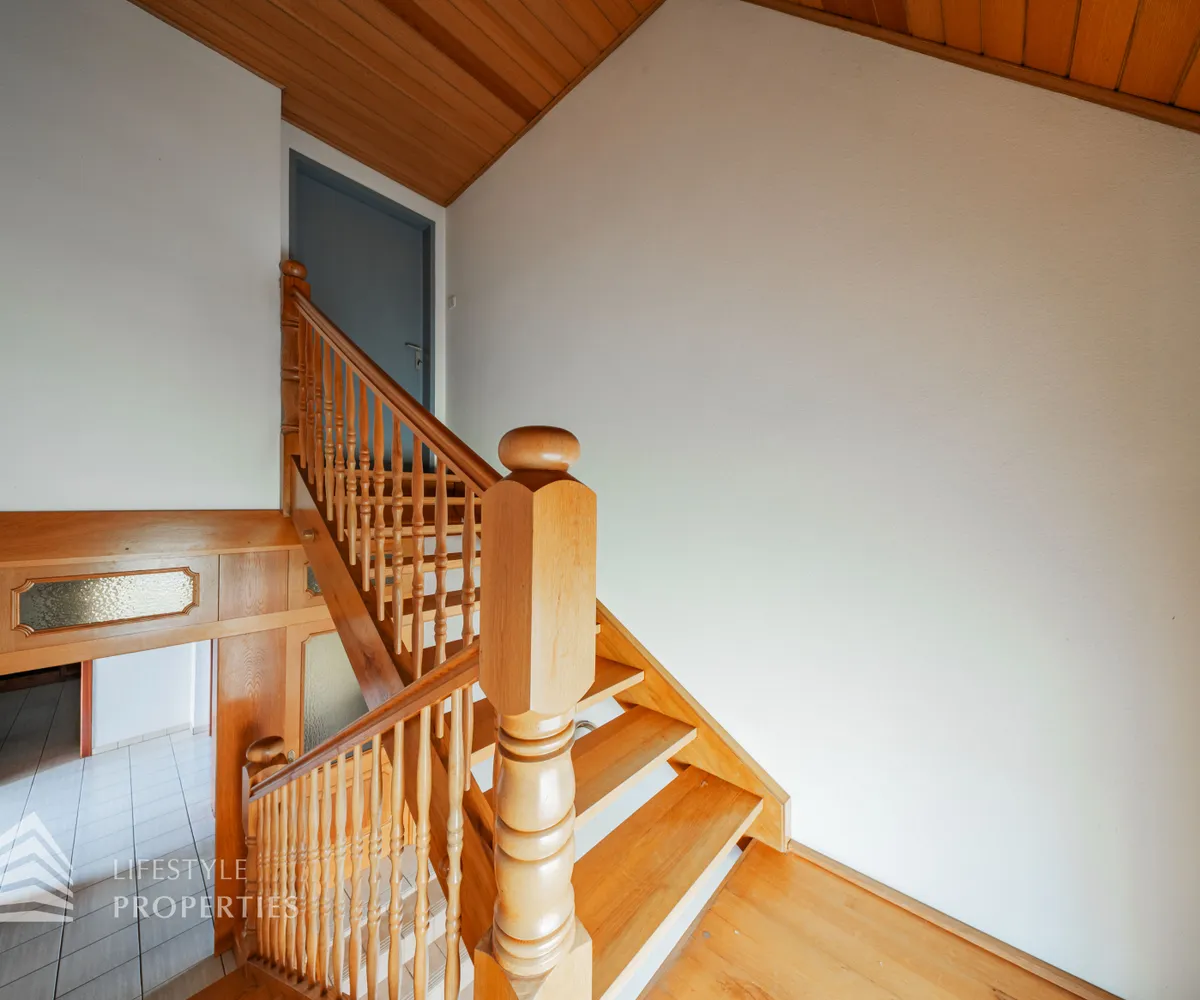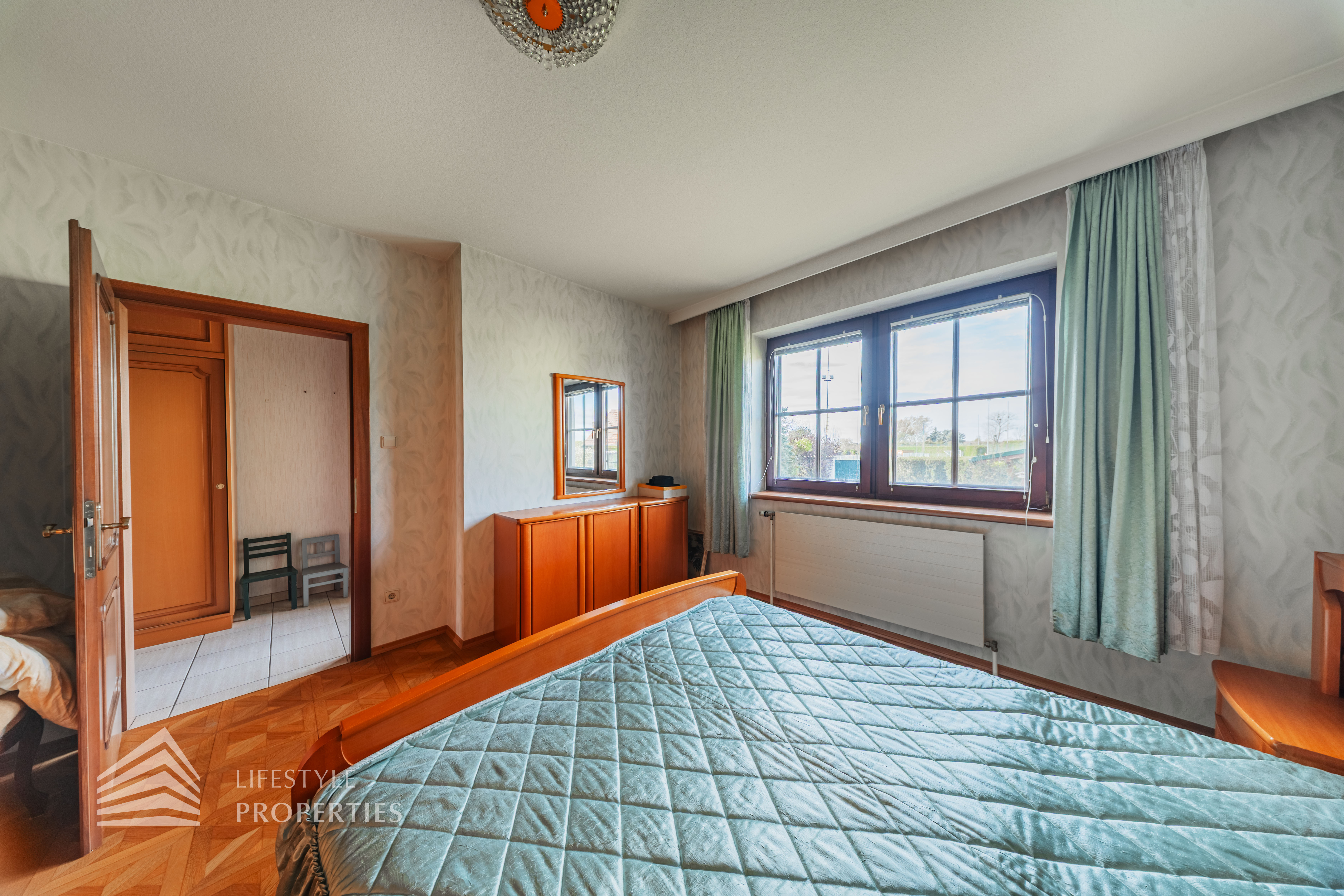 Dieses familienfreundliche Zuhause, welches im Jahre 1983 fertiggestellt wurde, bietet auf einem großzügigen Grundstück von ca. 844 m² ausreichend Platz für Wohnen, Freizeit und Erholung. Die Wohnfläche verteilt sich auf drei helle Zimmer, eine voll ausgestattete Einbauküche, ein Badezimmer, ein separates WC sowie einen praktischen Abstellraum. Das Dachgeschoss bietet zusätzliches Ausbaupotenzial – ideal für weitere Wohn- oder Arbeitsbereiche nach eigenen Vorstellungen. Das Kellergeschoss schafft zusätzlichen Stauraum, Hobby- oder Nutzflächen. Das Haus wird bis auf den Teppichen und ausgewählten Stühlen möbliert verkauft.
