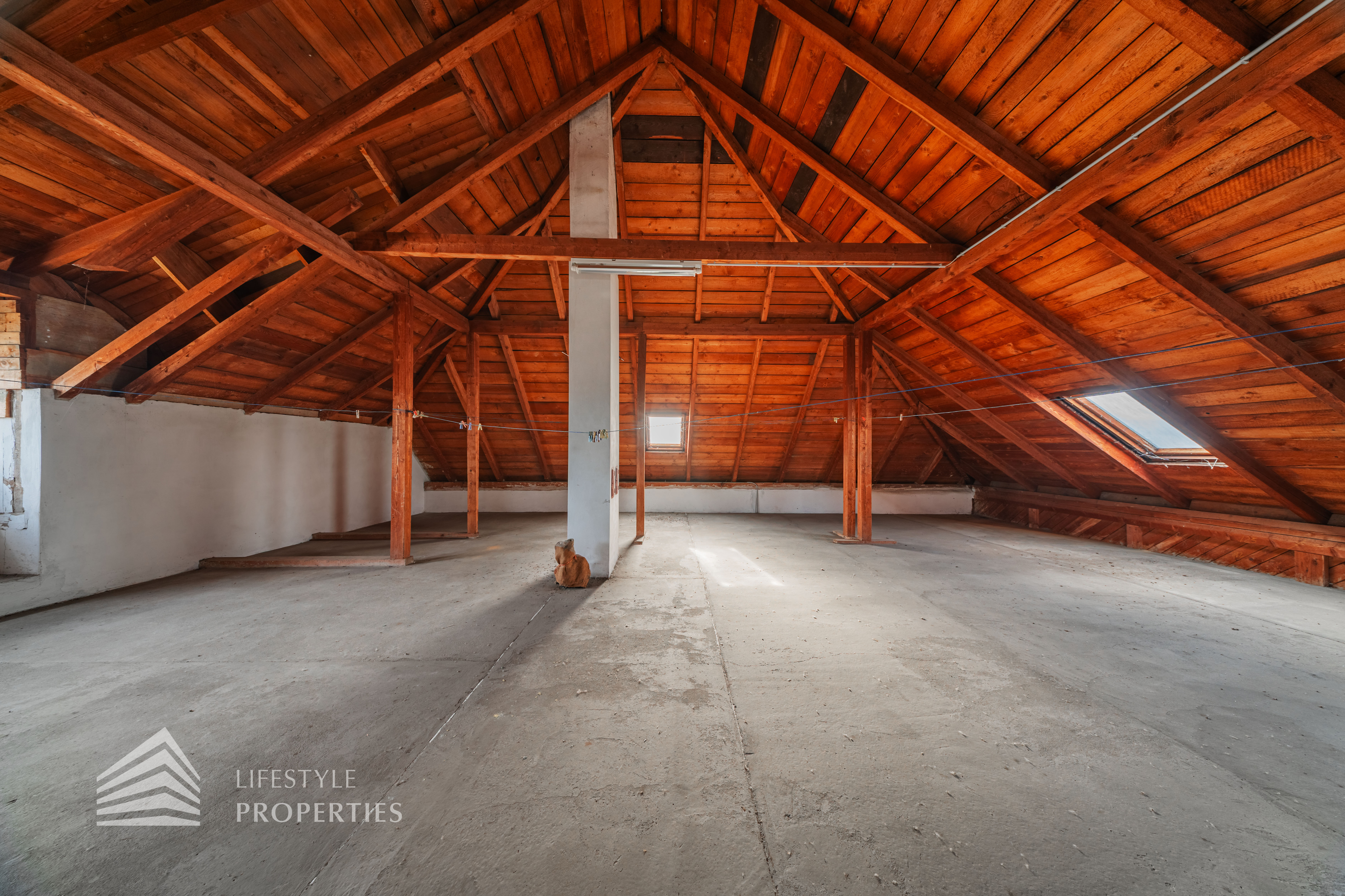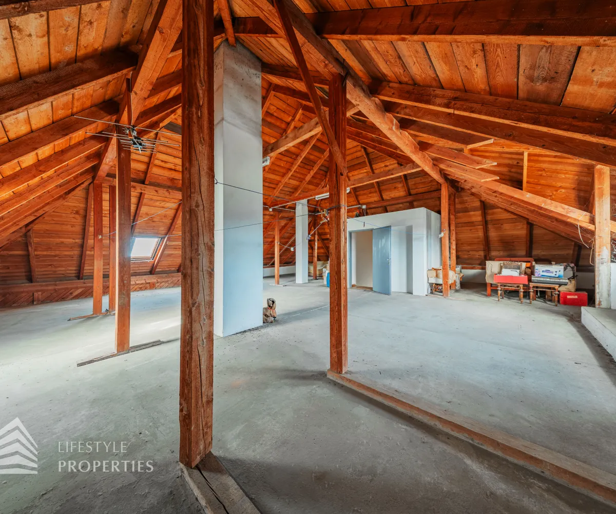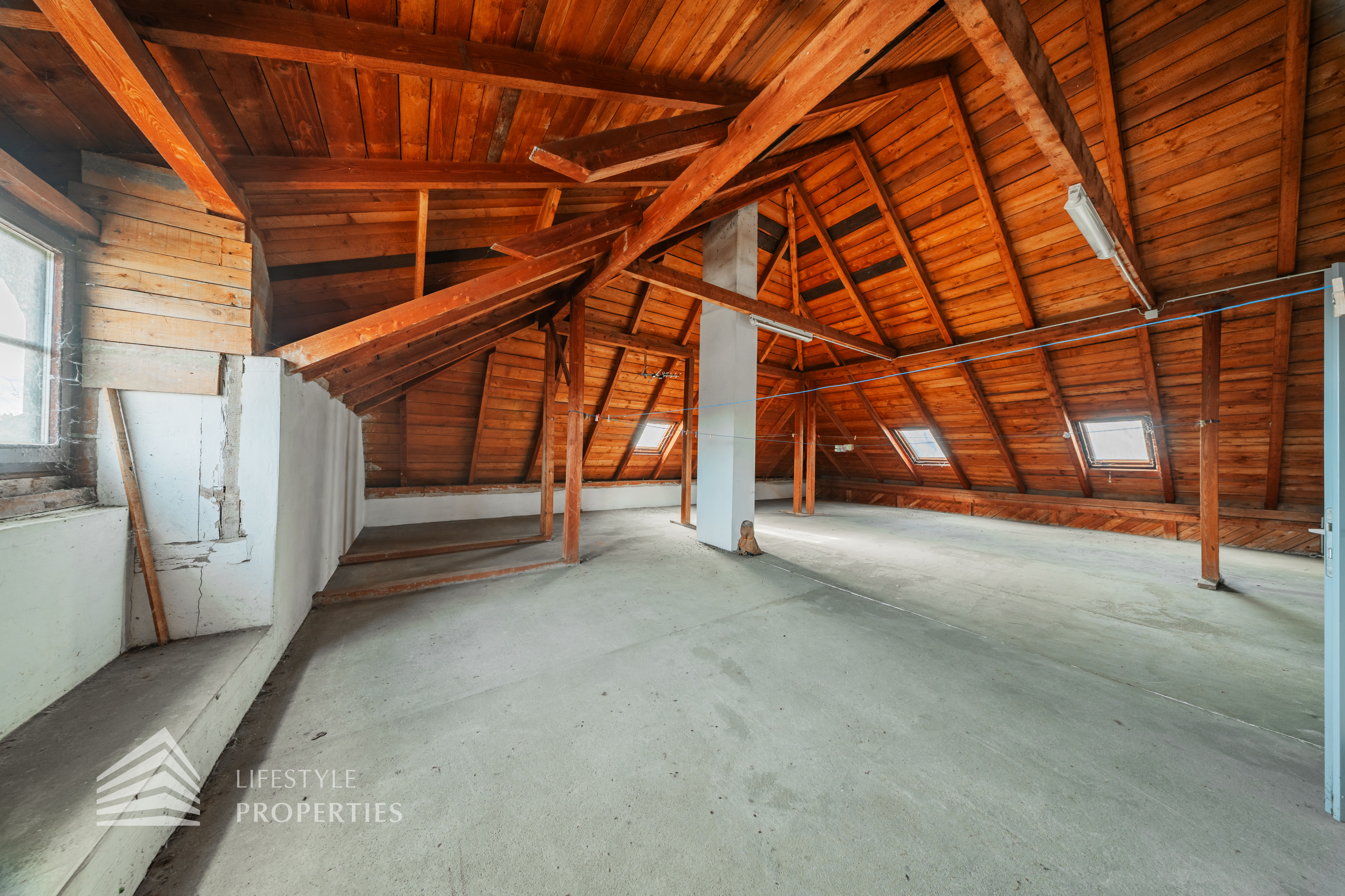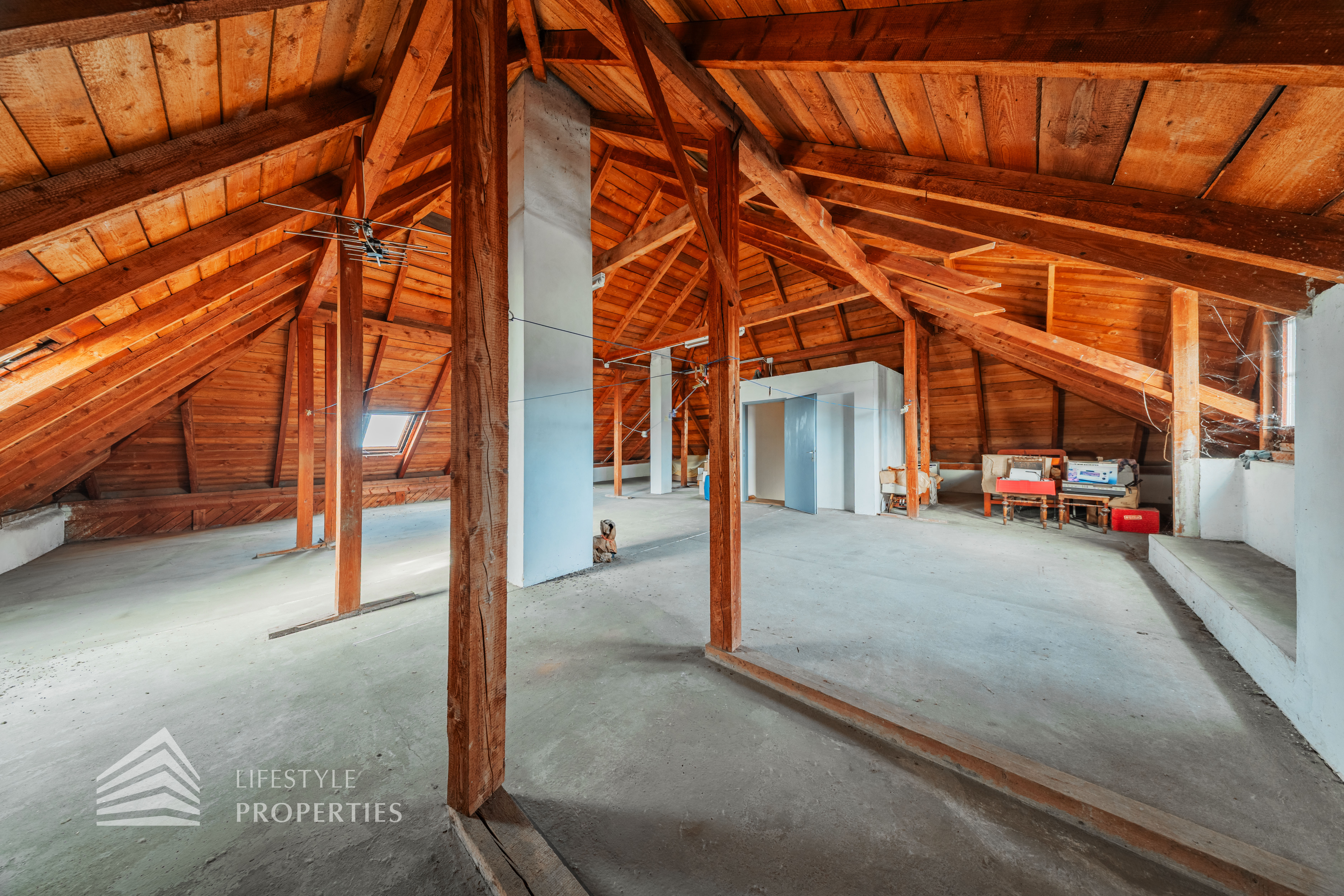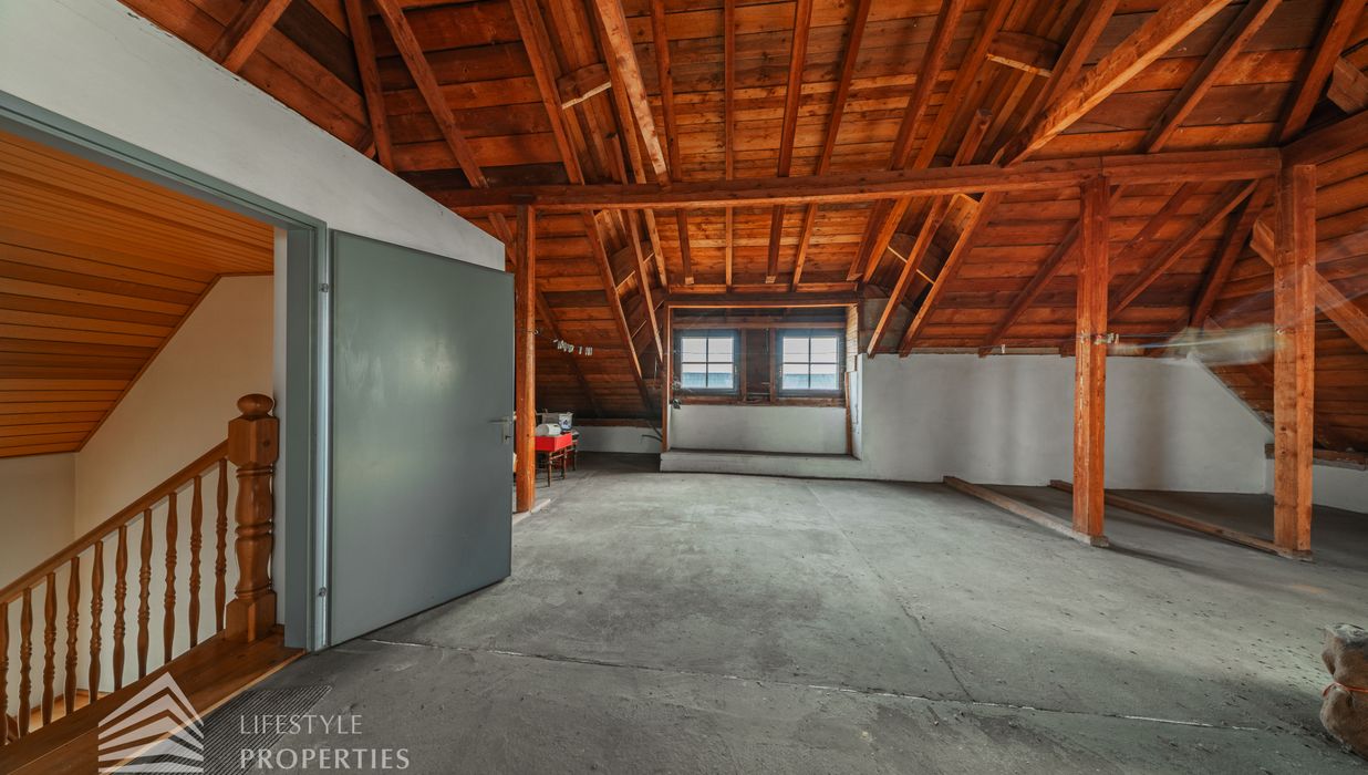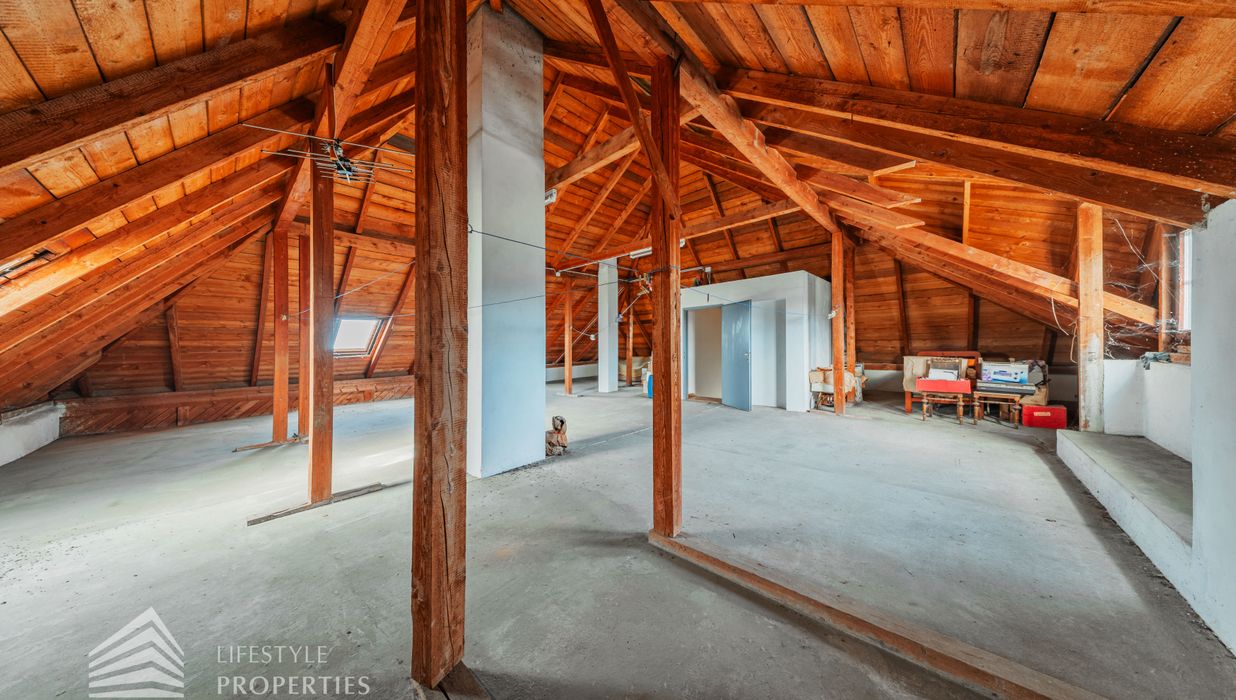 Dieses Einfamilienhaus bietet zahlreiche Vorteile: Sofortiger Einzug ist möglich, das großzügige Grundstück mit Garten schafft Raum für individuelle Nutzung, das Dachgeschoss bietet Ausbaupotenzial, die wind- und regengeschützte Terrasse lädt zum Verweilen ein, die Garage sowie der Stellplatz runden das Angebot ab. Die Liegenschaft verbindet die Vorteile ruhigen Landlebens mit der Nähe zur Hauptstadt und ist ideal für Familien oder Käufer, die ein individuell gestaltbares Zuhause suchen.
