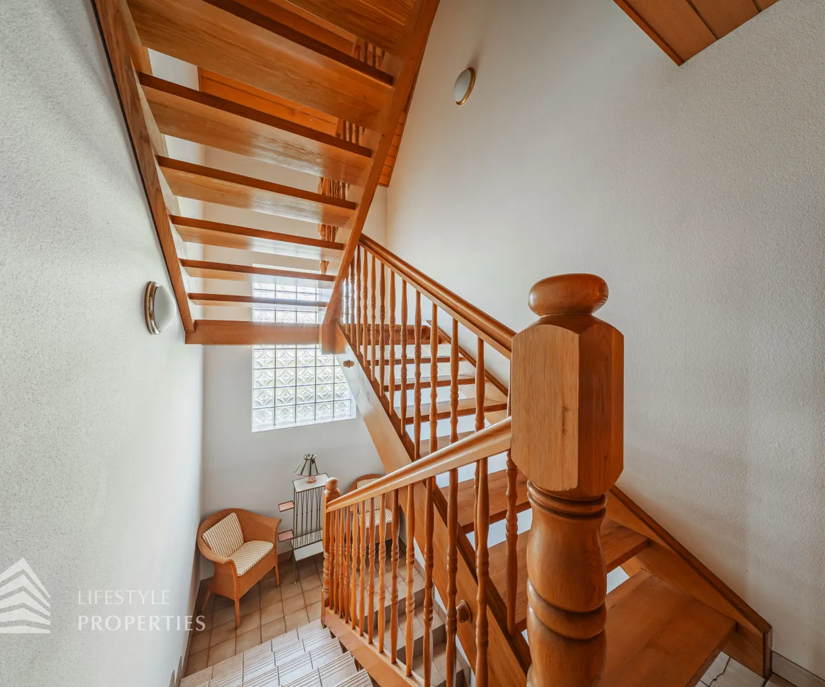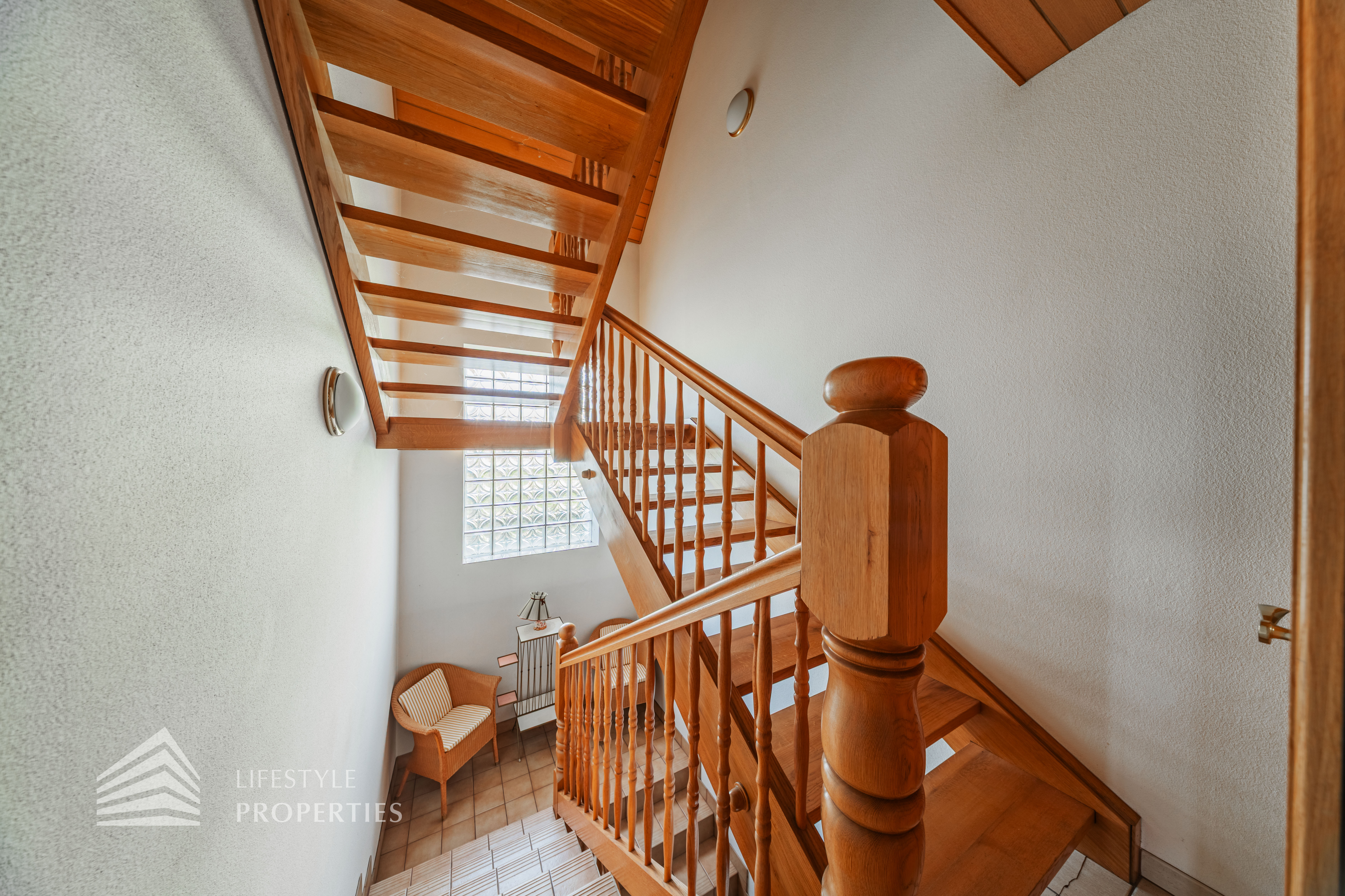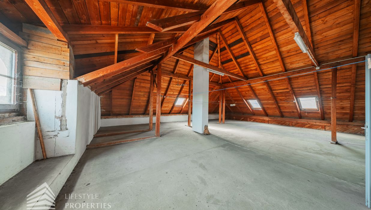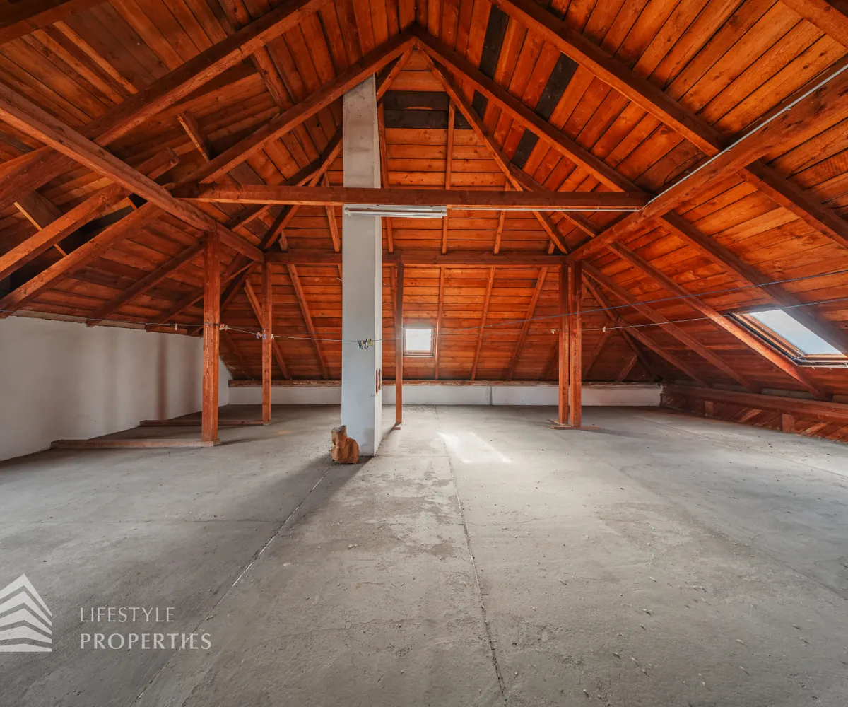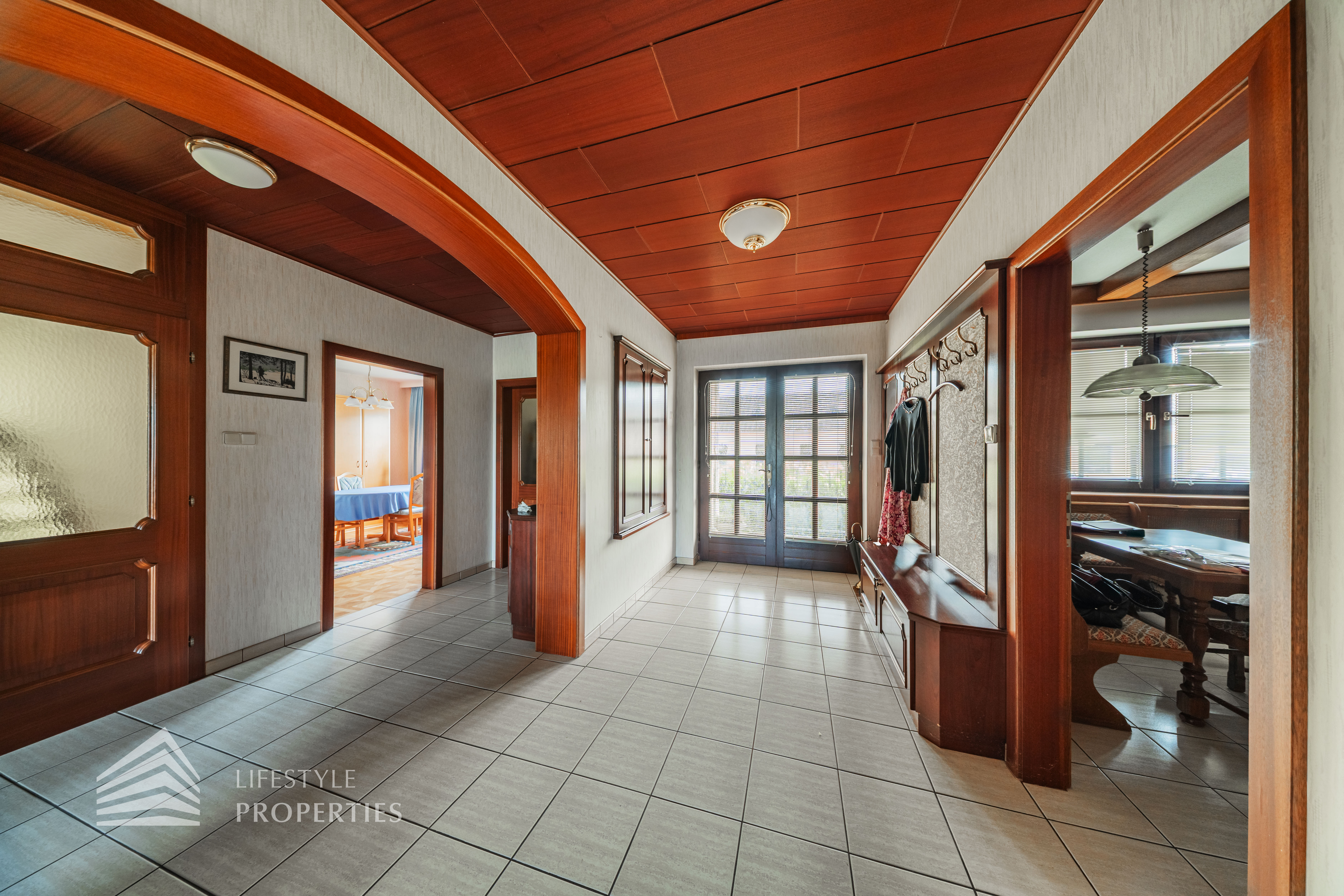 Dieses Einfamilienhaus bietet zahlreiche Vorteile: Sofortiger Einzug ist möglich, das großzügige Grundstück mit Garten schafft Raum für individuelle Nutzung, das Dachgeschoss bietet Ausbaupotenzial, die wind- und regengeschützte Terrasse lädt zum Verweilen ein, die Garage sowie der Stellplatz runden das Angebot ab. Die Liegenschaft verbindet die Vorteile ruhigen Landlebens mit der Nähe zur Hauptstadt und ist ideal für Familien oder Käufer, die ein individuell gestaltbares Zuhause suchen.