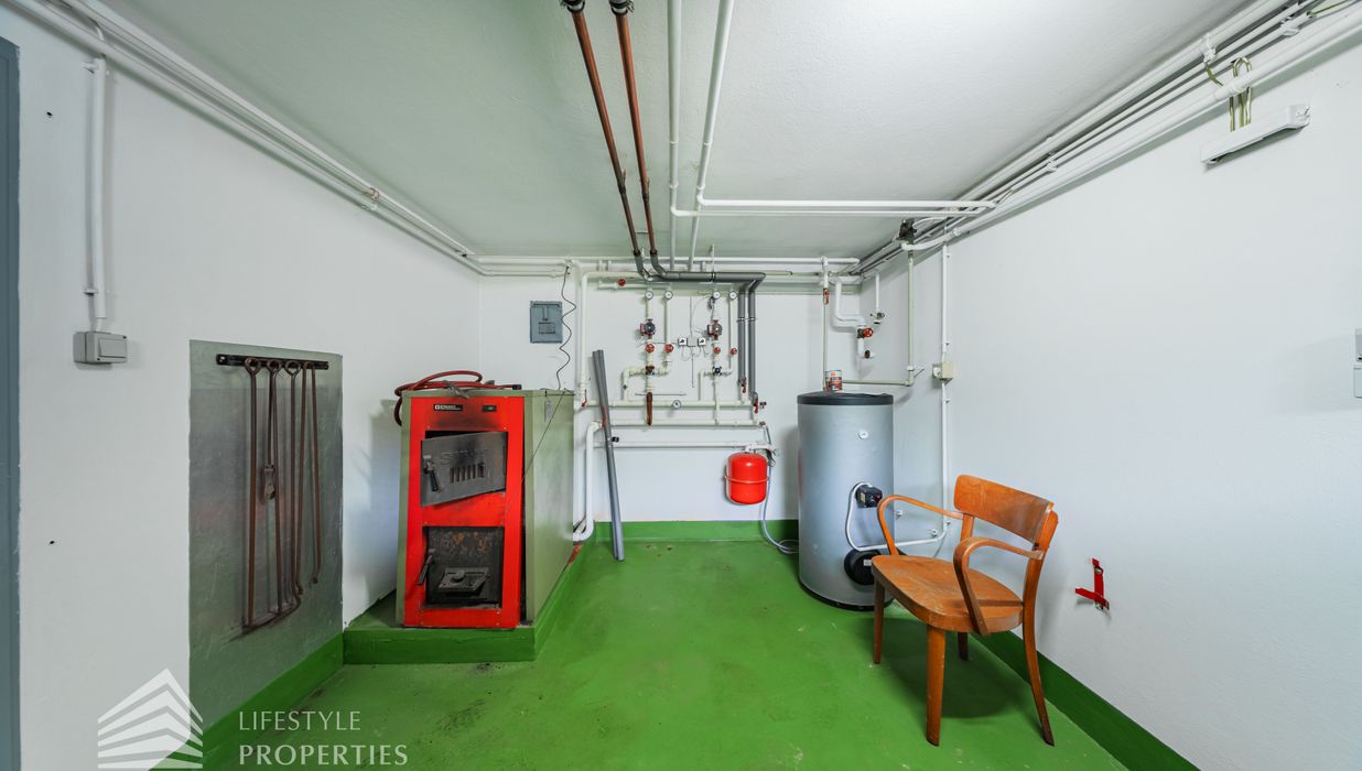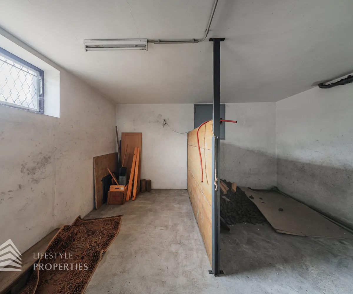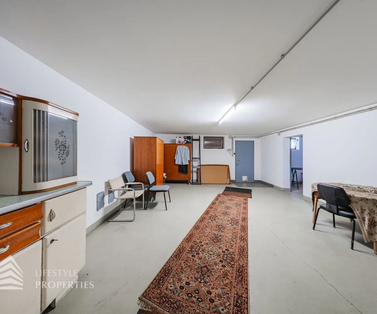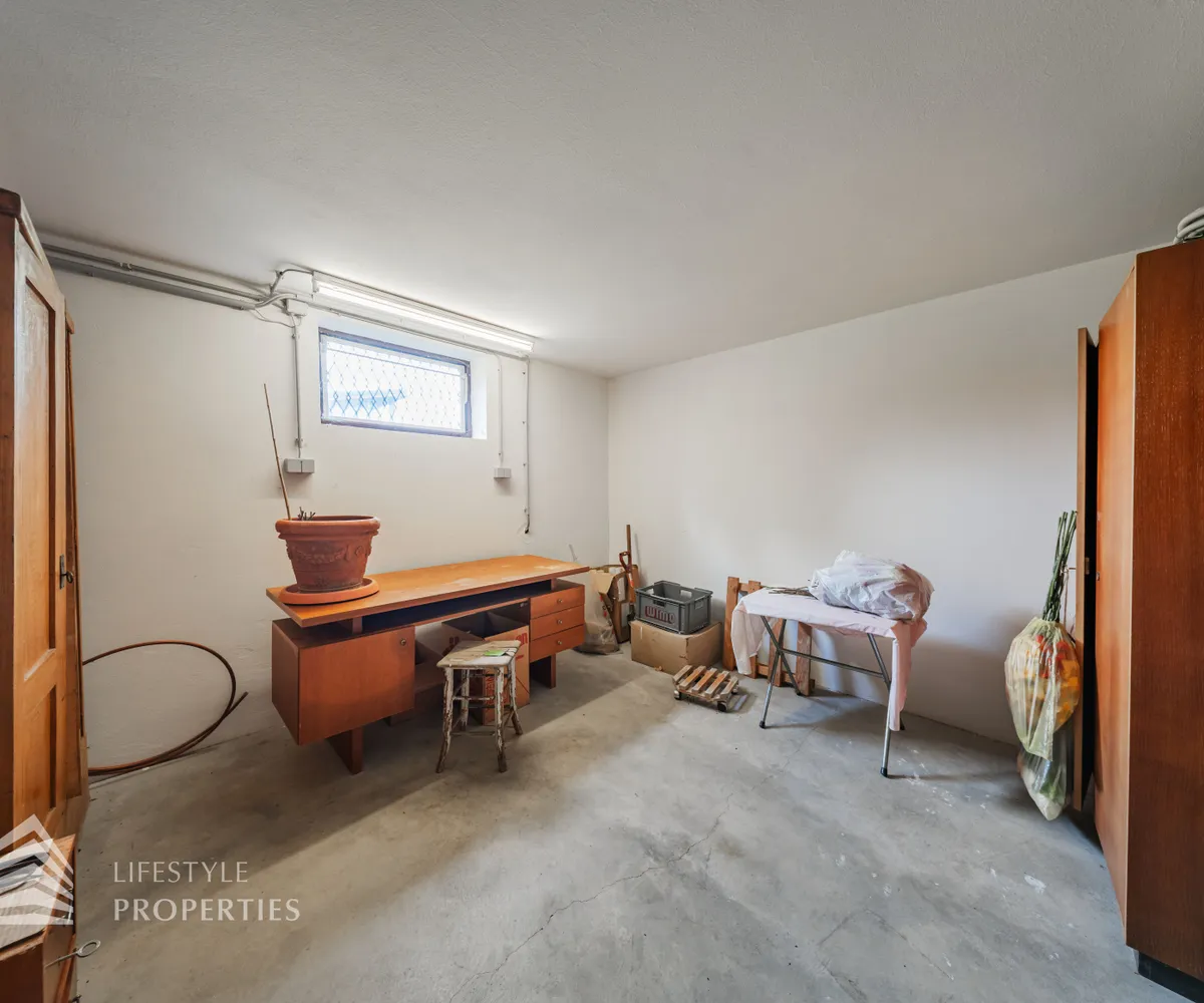 Das Kellergeschoss teilt sich auf in vier Kellerräume, zwei Lagerräume und einen Heizraum.