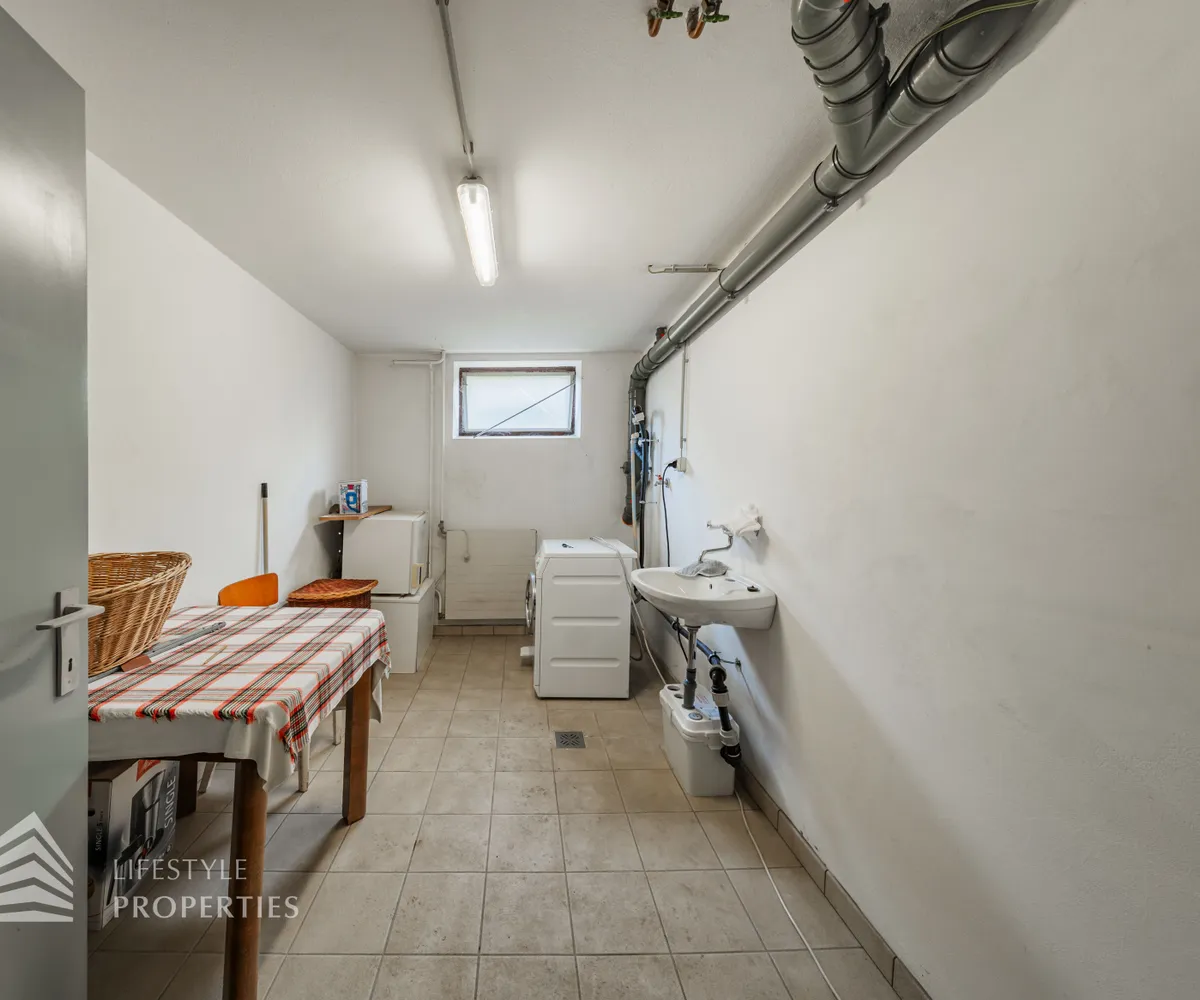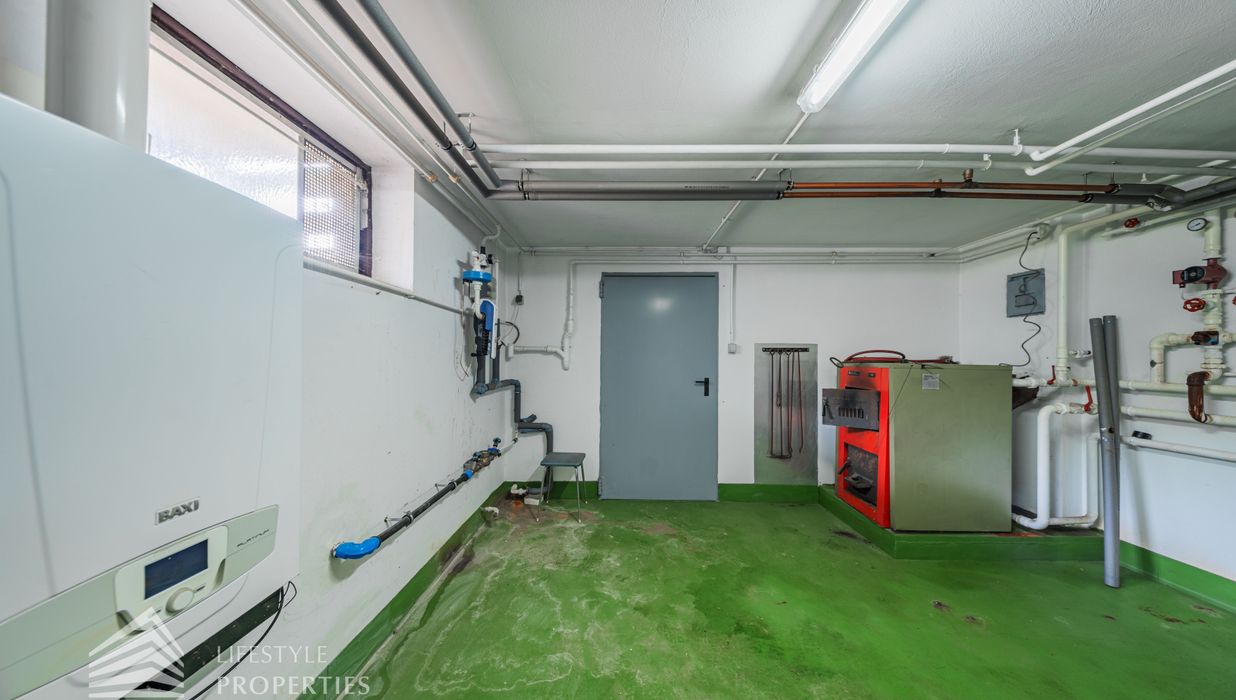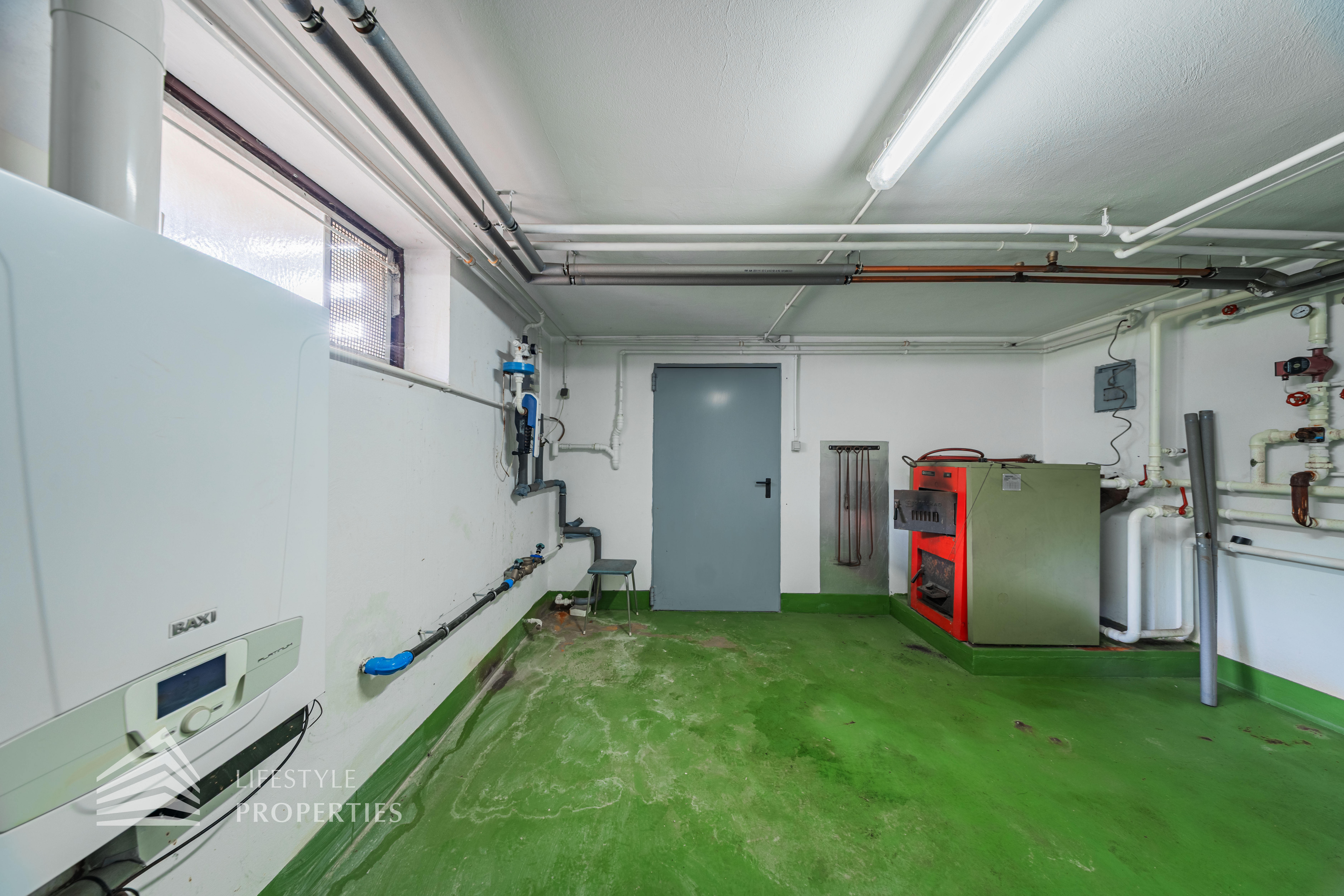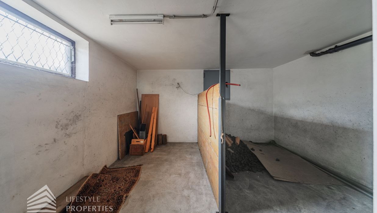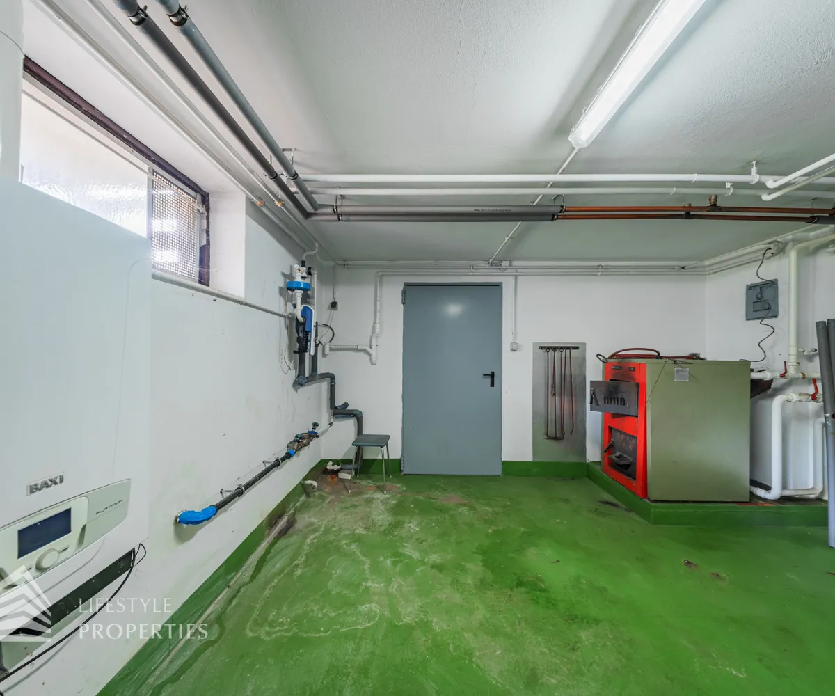 Das Kellergeschoss teilt sich auf in vier Kellerräume, zwei Lagerräume und einen Heizraum.