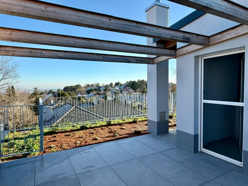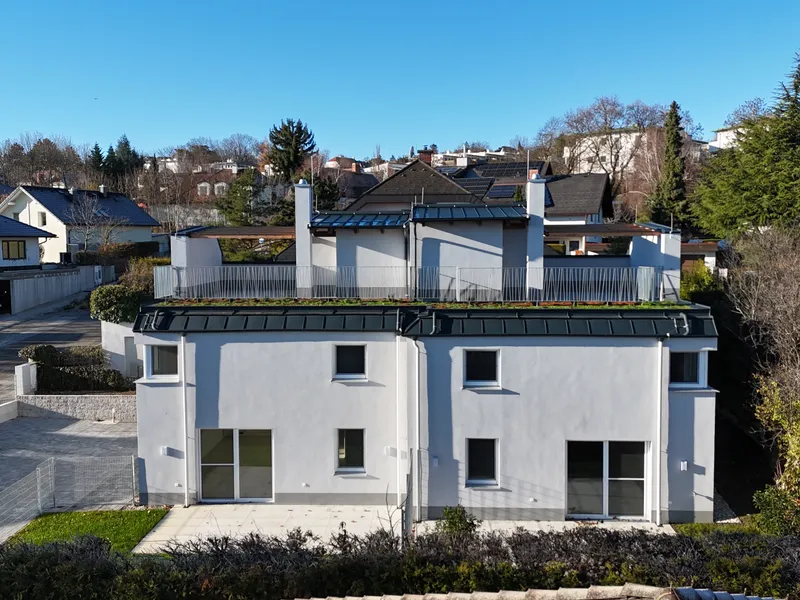 Diese lichtdurchflutete Doppelhaushälfte verbindet eine hochwertige Ausstattung mit einem durchdachten Raumkonzept auf drei Ebenen. Der großzügige Wohn-Essbereich mit offener Küche bildet das Zentrum des Hauses und öffnet sich direkt zur Terrasse und zum Eigengarten. Ein besonderes Merkmal ist das Dachgeschoss mit direktem Zugang zu einer weitläufigen Terrasse, die einen freien Blick über das Tal bis nach Wien ermöglicht.