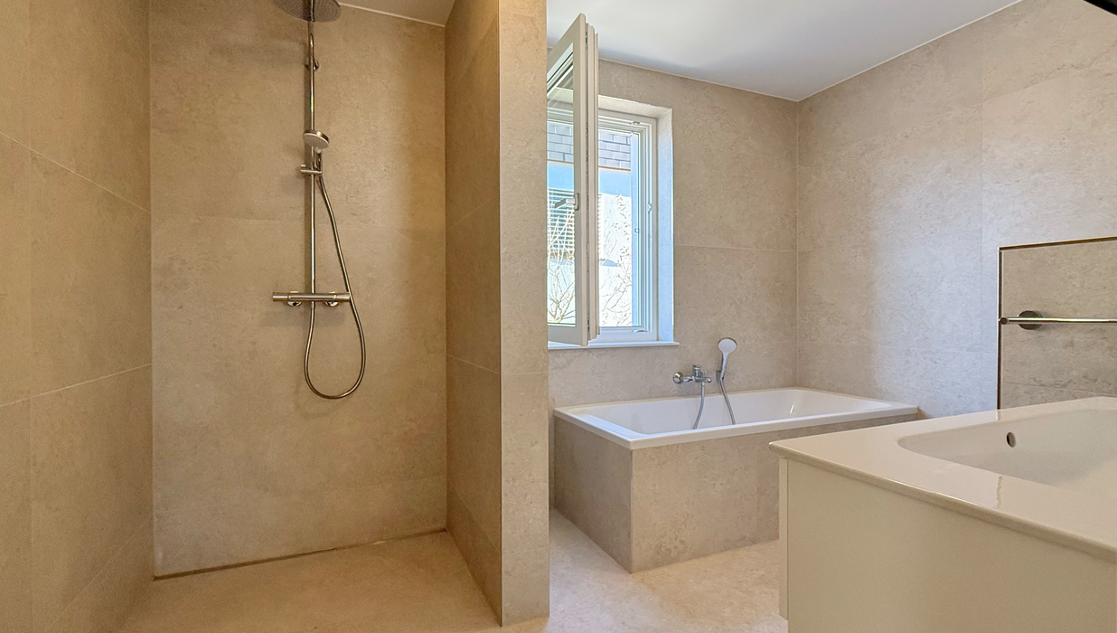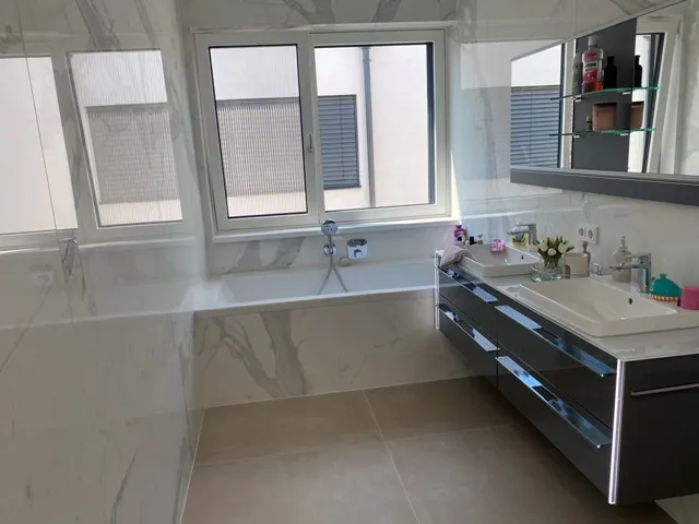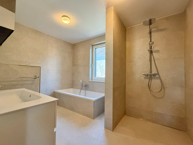 – Tageslichtbad mit Wanne, Dusche, Doppelwaschbecken und WC
