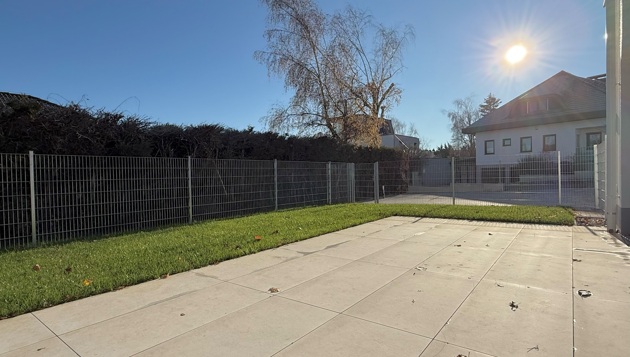 – Pflegeleichter Gartenbereich, begrüntes Flachdach
