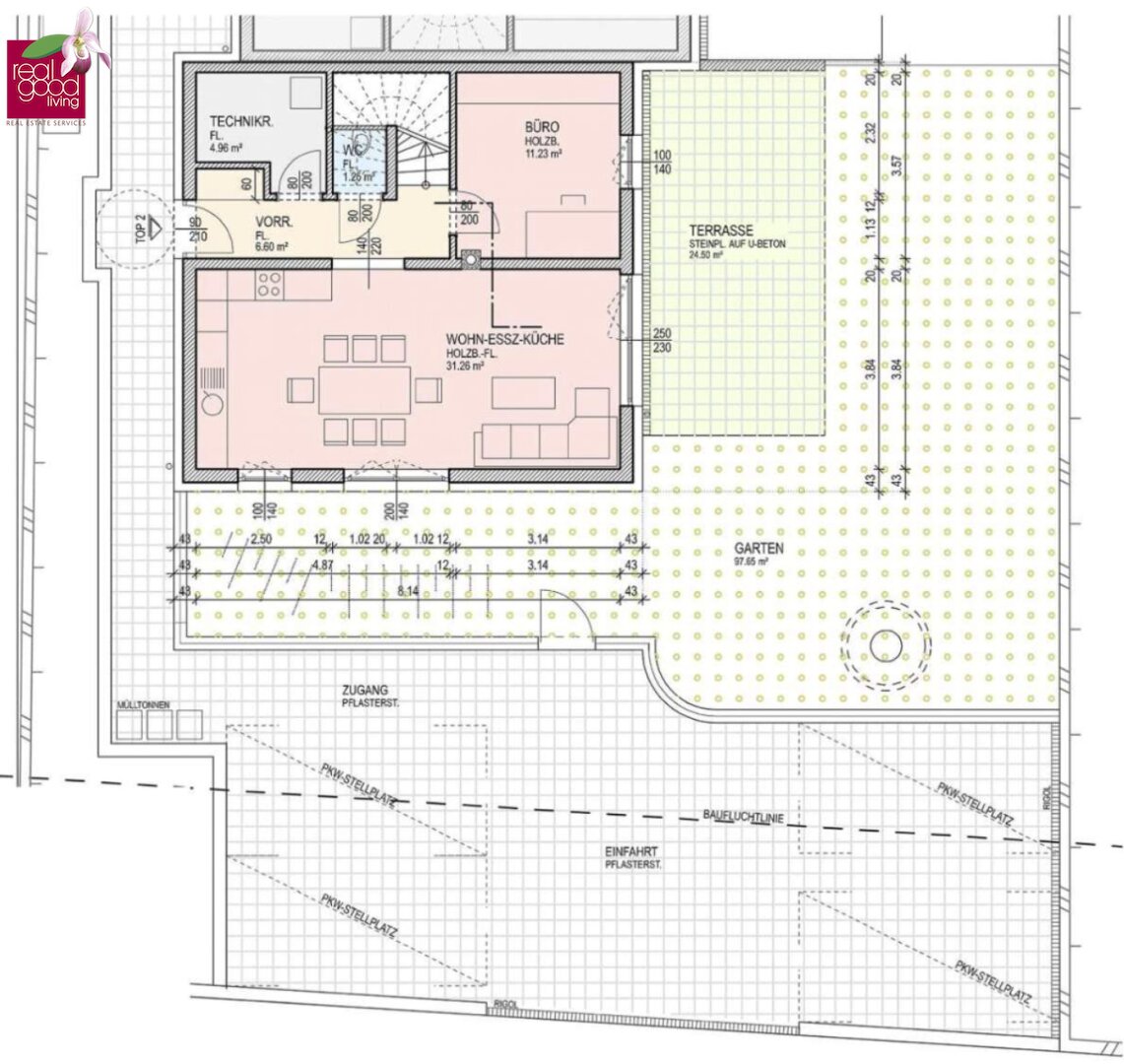 Das Haus liegt sonnig und ruhig am Ende der Sackgasse und bietet ein Wohngefühl auf höchstem Niveau. Der offene, lichtdurchflutete Wohnbereich bildet das Herzstück der Immobilie und begeistert mit einer hochwertigen Einbauküche samt großzügigem Küchenareal – ideal für Kochen, Wohnen und geselliges Beisammensein.