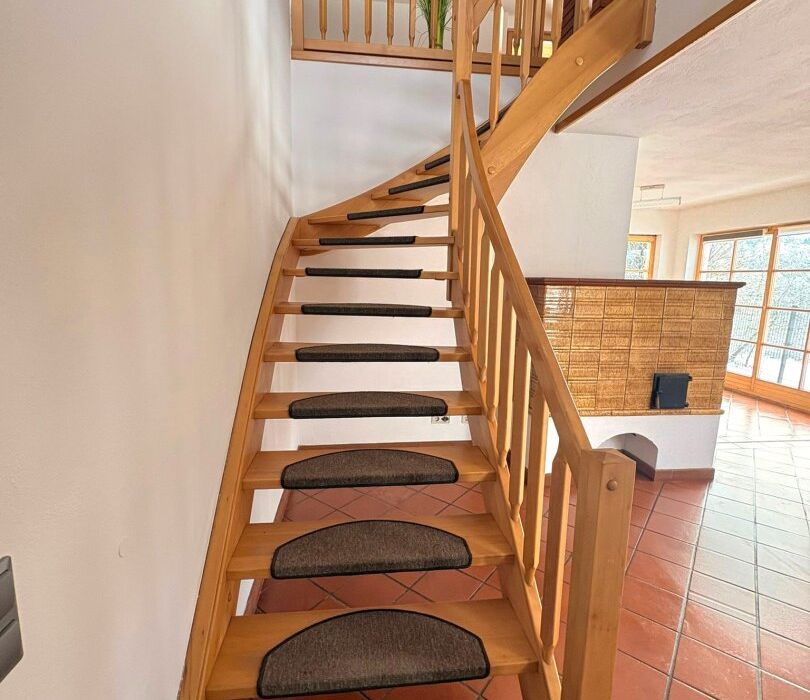 Über die schöne Holztreppe gelangt man in einen großen, offenen Raum. Ein Badezimmer mit Dusche und Badewanne, ein Schlafzimmer und eine Sauna bieten Ihnen viele Möglichkeiten im Obergeschoss . ca. 74,41 m²