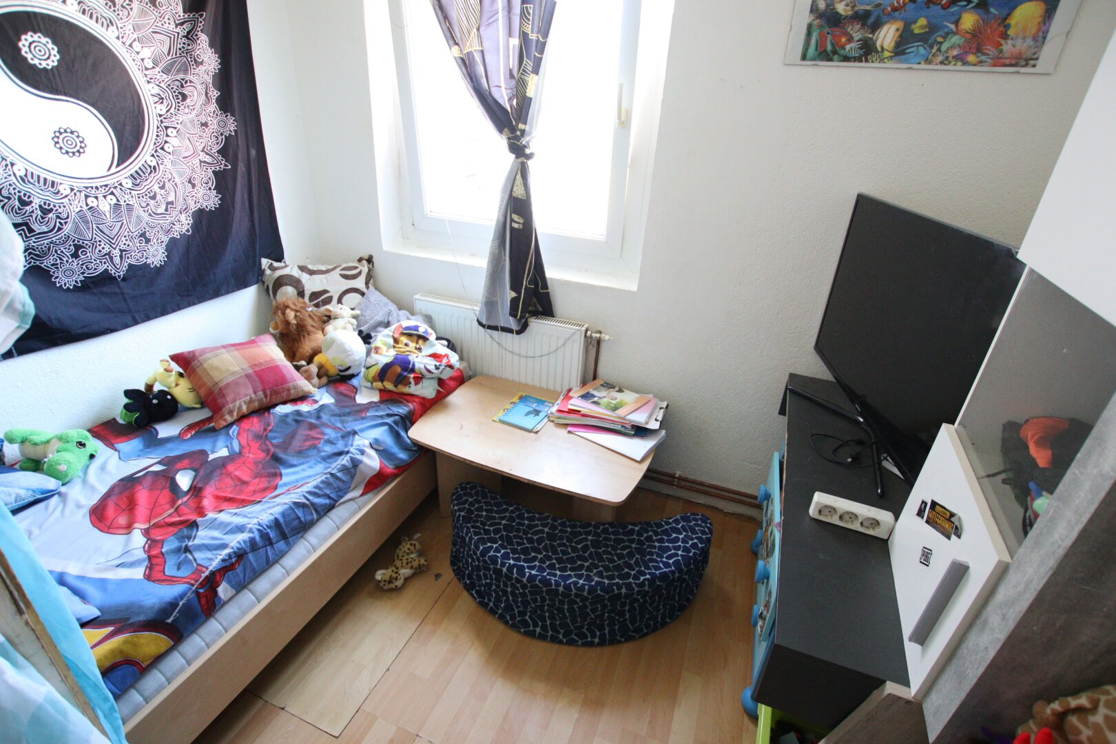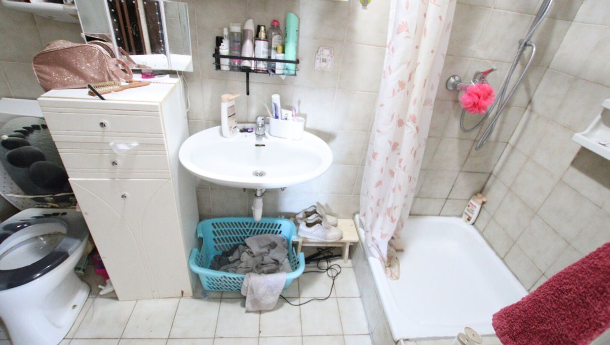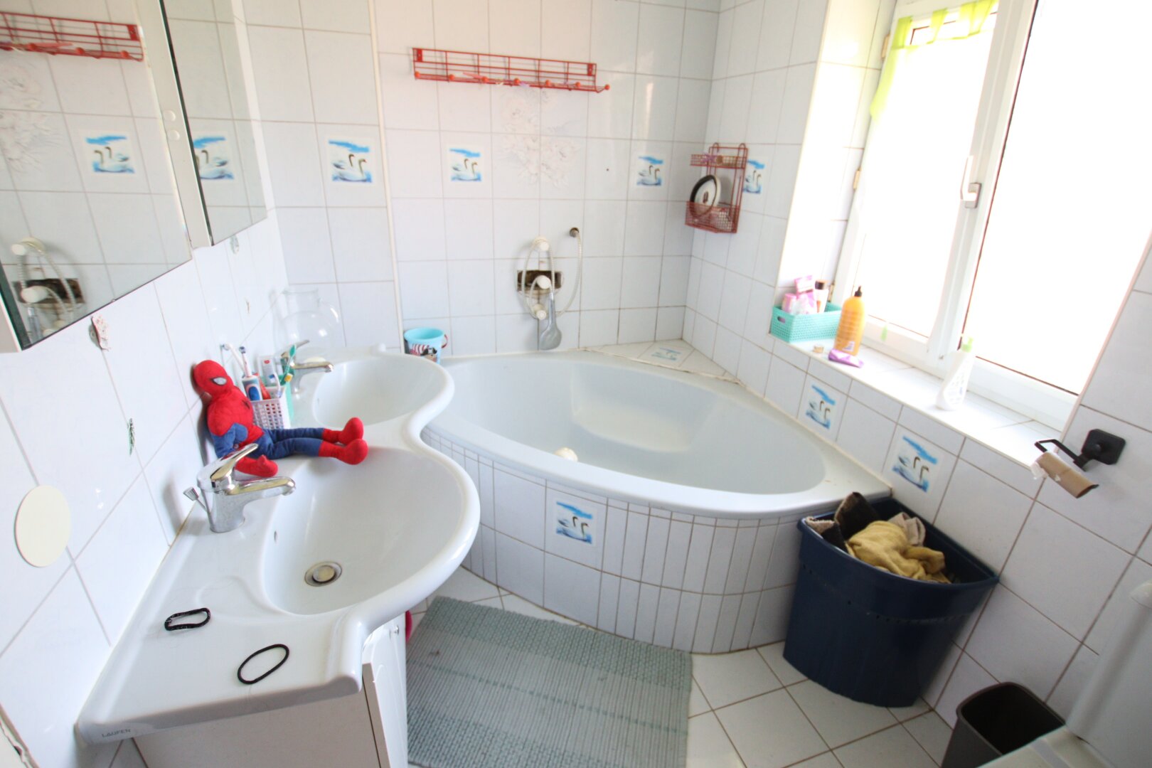 Böden: Fliesen-, ältere Marmor- und Laminatböden.