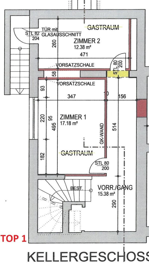 ERDGESCHOSS: Wohnung TOP 2 (ca. 52,00m² Nfl.) = bestehend aus Vorraum, 1 Wohnzimmer, 1 Küche, 1 Schlafzimmer und DU/WC.