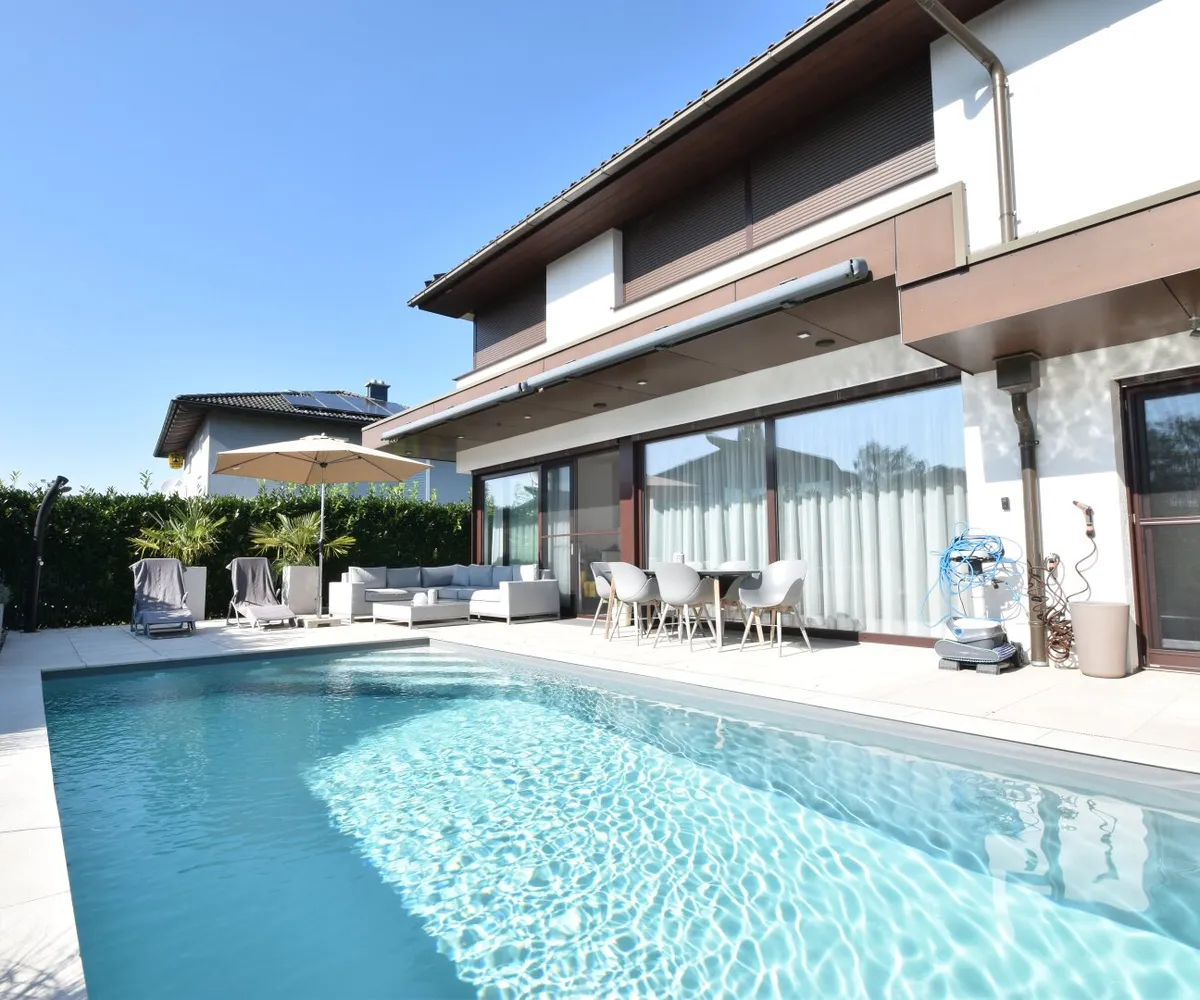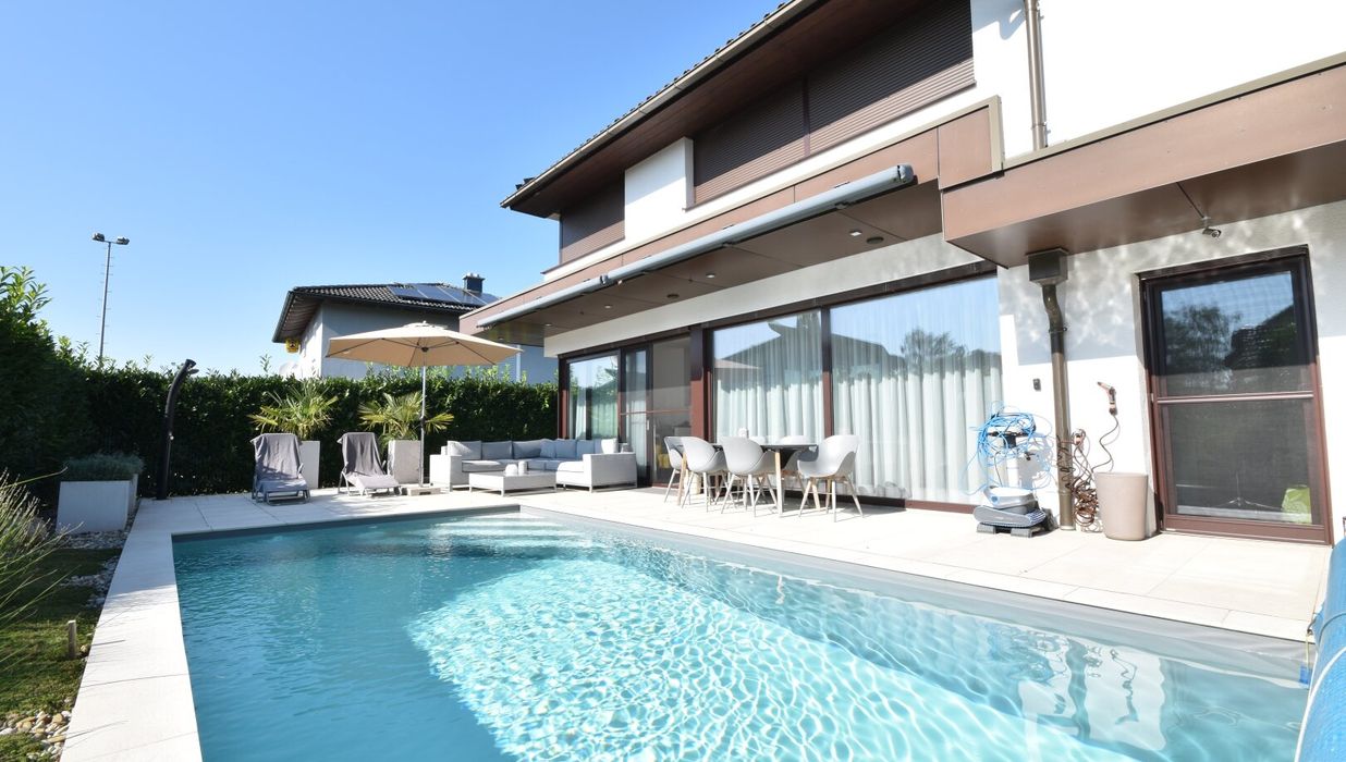 Das Haus ist mit hochwertigen Fliesen und Parkett ausgestattet und verfügt über eine Luftwärmepumpe. Ebenso ist das Haus mit einer Photovoltaik- und einer Solaranlage ausgestattet.