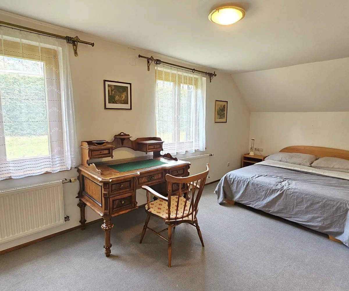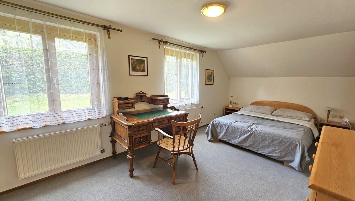 Das Haus verfügt über vier helle Zimmer, die Ihnen vielfältige Nutzungsmöglichkeiten bieten – ob als Schlafzimmer, Arbeitszimmer oder Hobbyraum. Mit zwei Bädern und drei WCs ist ausreichend Platz für die ganze Familie oder Gäste gewährleistet. Für zwei Fahrzeuge stehen eine Garage sowie ca. sechs Stellplätze zur Verfügung – ein seltener Komfort in dieser Lage.