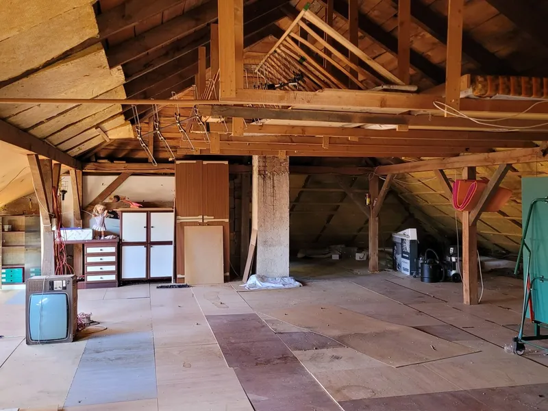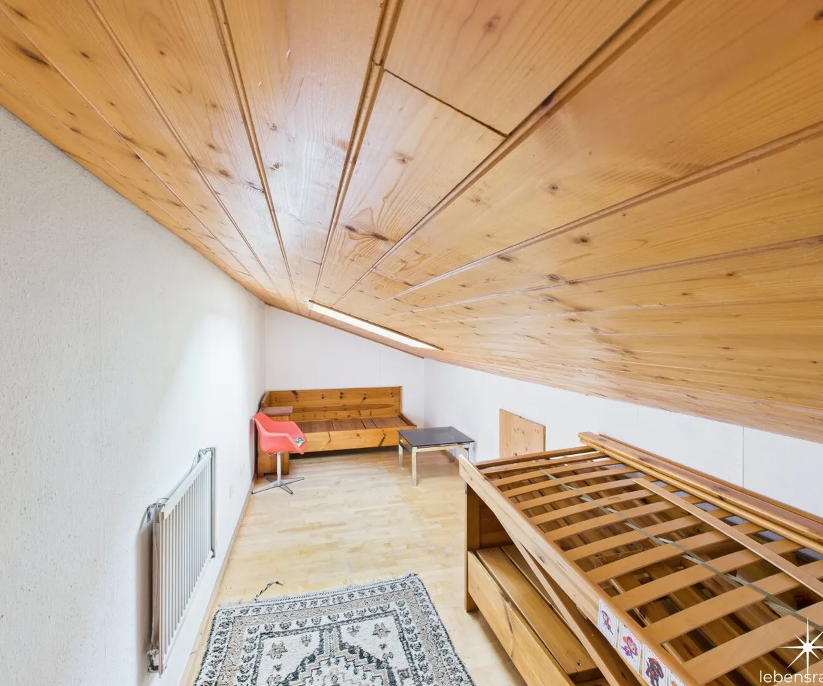 Der geräumige Keller inkl. der separaten Garage, bietet genügend Platz für Stauraum sowie die gesamte Haustechnik. Das Haus wird aktuell noch mit den beiden vorhandenen Holzöfen sowie einer Elektroheizung beheizt. Die Gegebenheiten im Keller (inkl. vorhandenen Boiler) bietet jedoch ideale Voraussetzungen für eine nachhaltige Umrüstung. Auch der großzügige Dachboden (eigener Bereich im obersten Geschoss mit ca. 40m²) bietet zusätzlichen Platz bzw. die Möglichkeit, die Fläche in Zukunft auch anderweitig zu nutzen.