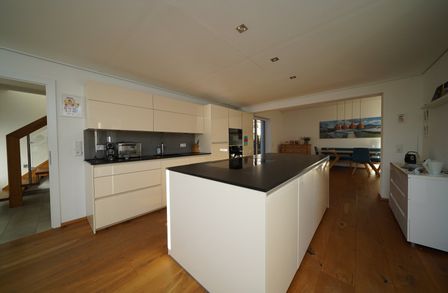 Dieses gepflegte Einfamilienhaus besteht aus einem Bestandsobjekt, dass 2019 generalsaniert und durch einen Zubau erweitert wurde. Die Immobilie bietet vier Zimmer und zwei Bäder, aufgeteilt auf zwei Etagen. Der Wohnraum besticht durch eine moderne Küche mit Kücheninsel, die zusammen mit dem Essbereich und dem Wohnzimmer eine großzügige Einheit bildet. Zwei Terrassen sowie der Garten bieten perfekte Voraussetzungen für Outdoor-Living, Spielbereiche oder einen Pool.
