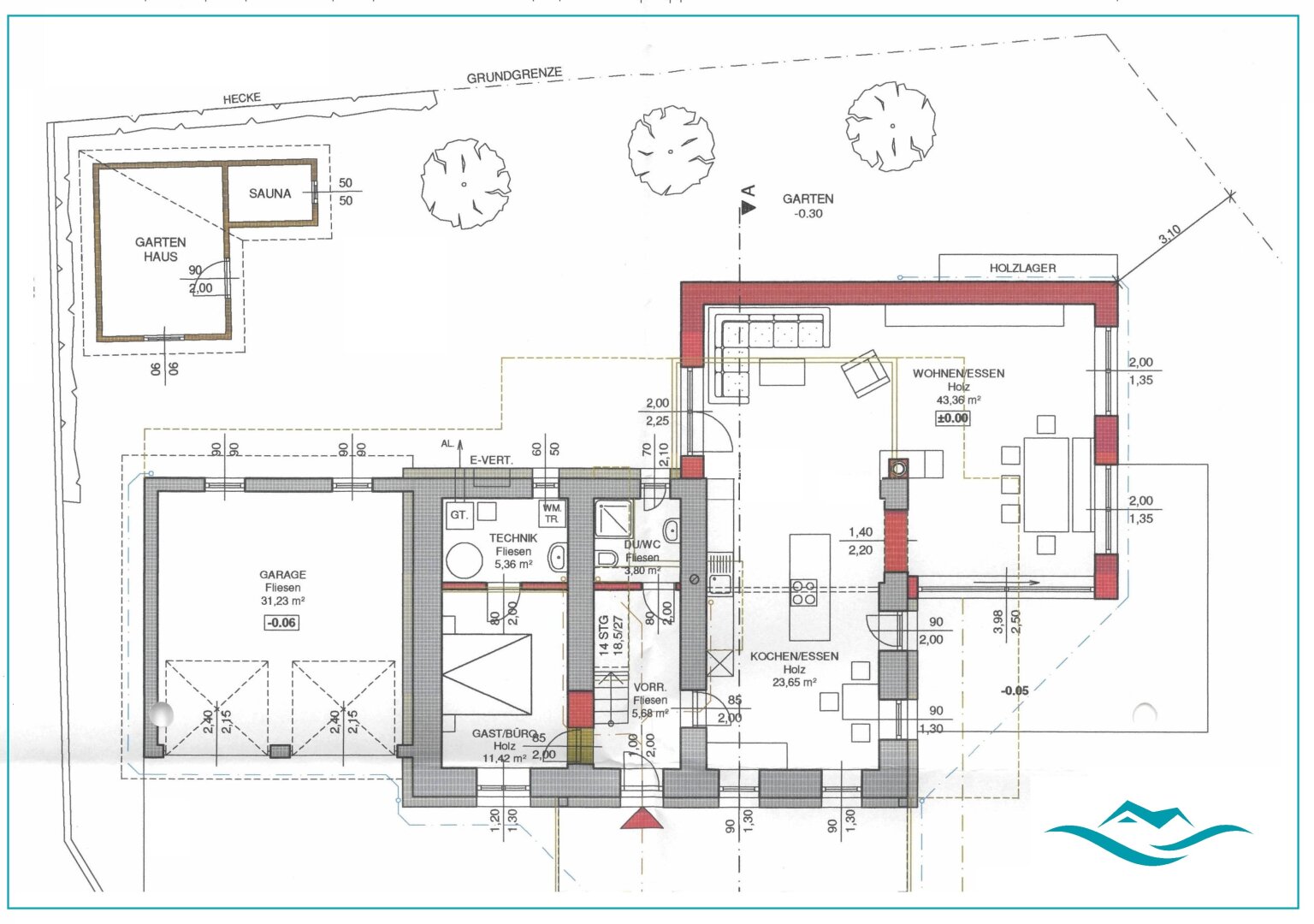 Stauraum finden Sie in der Doppel-Garage und im baubewilligten Gartenhäuschen.